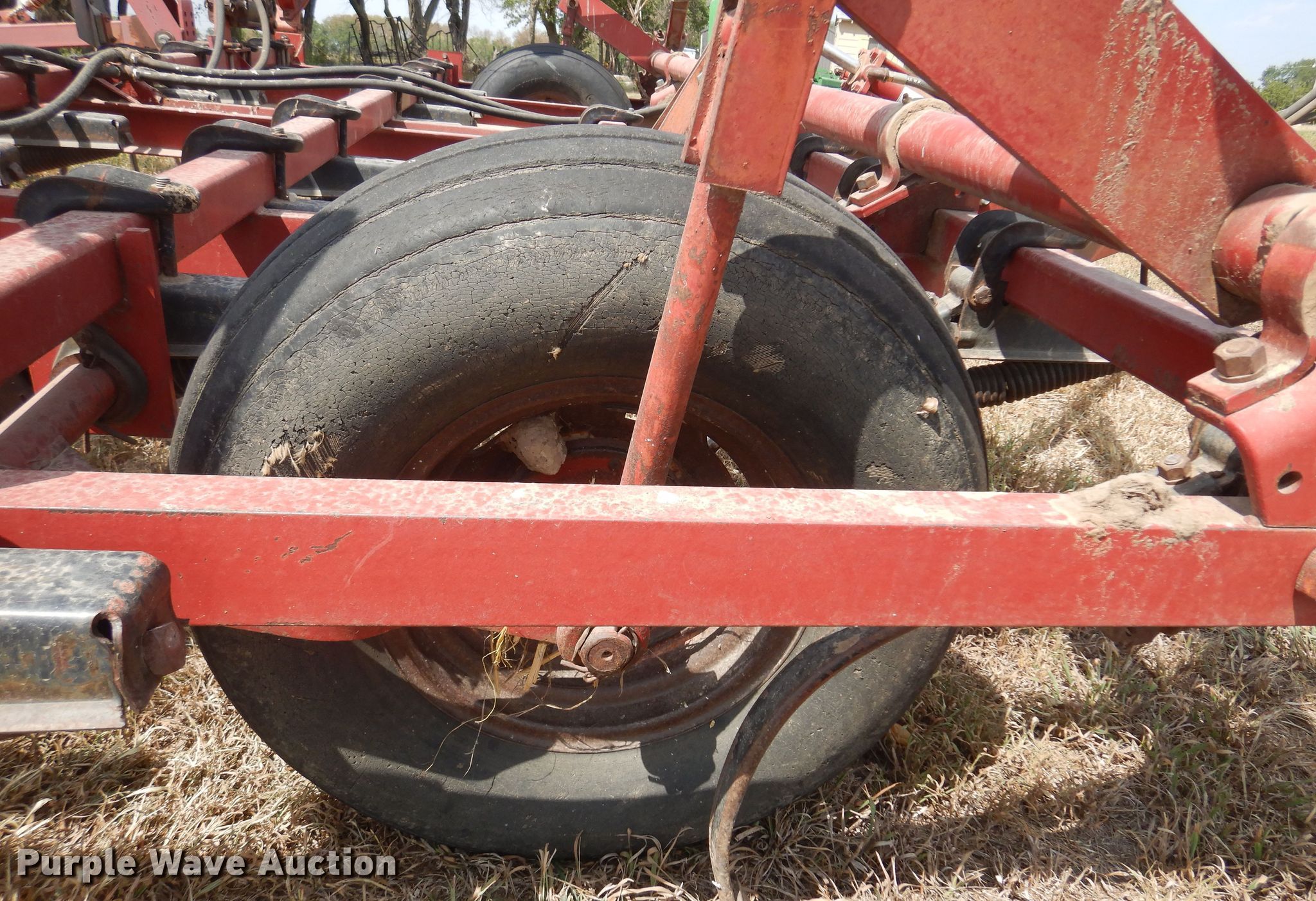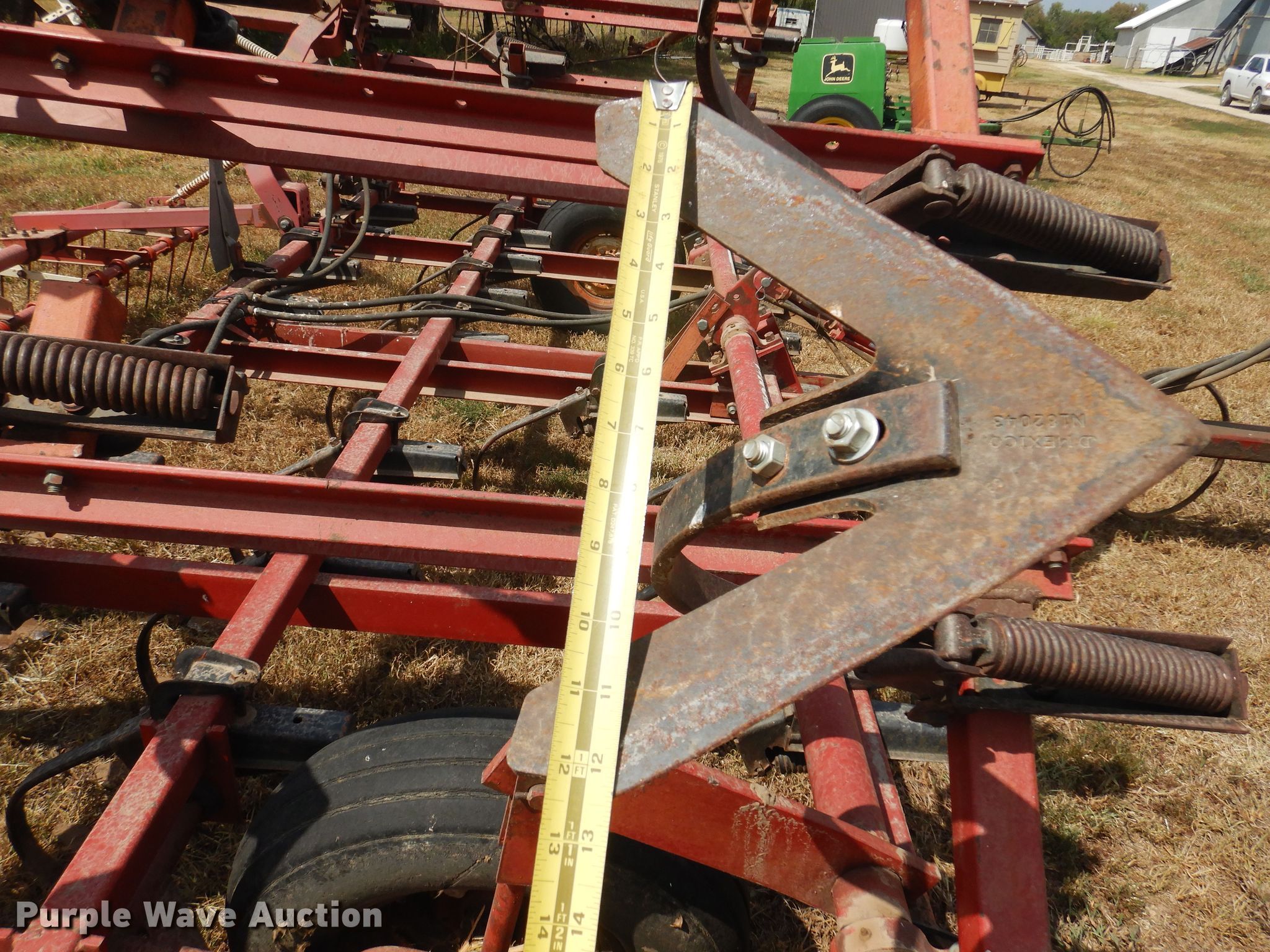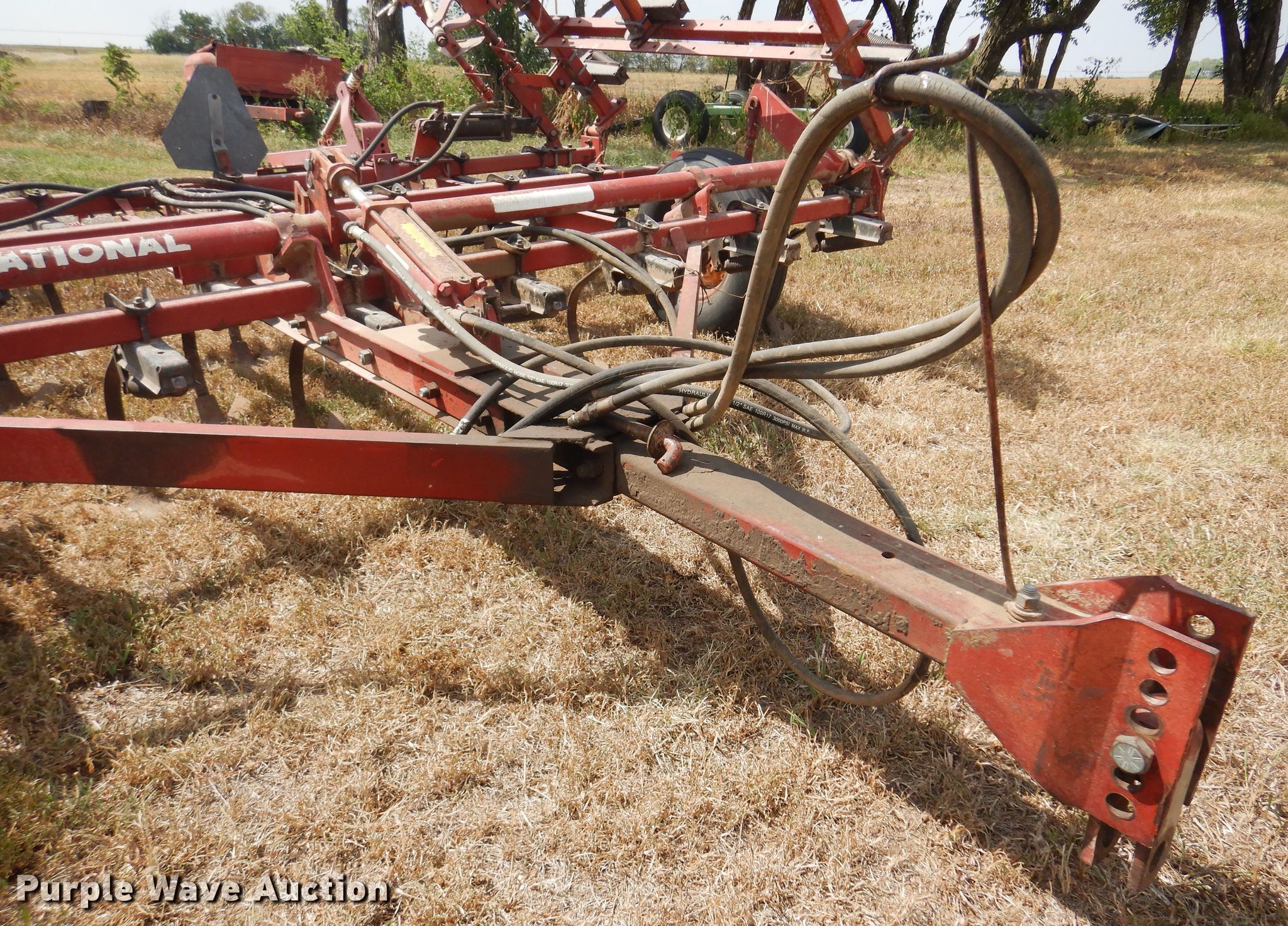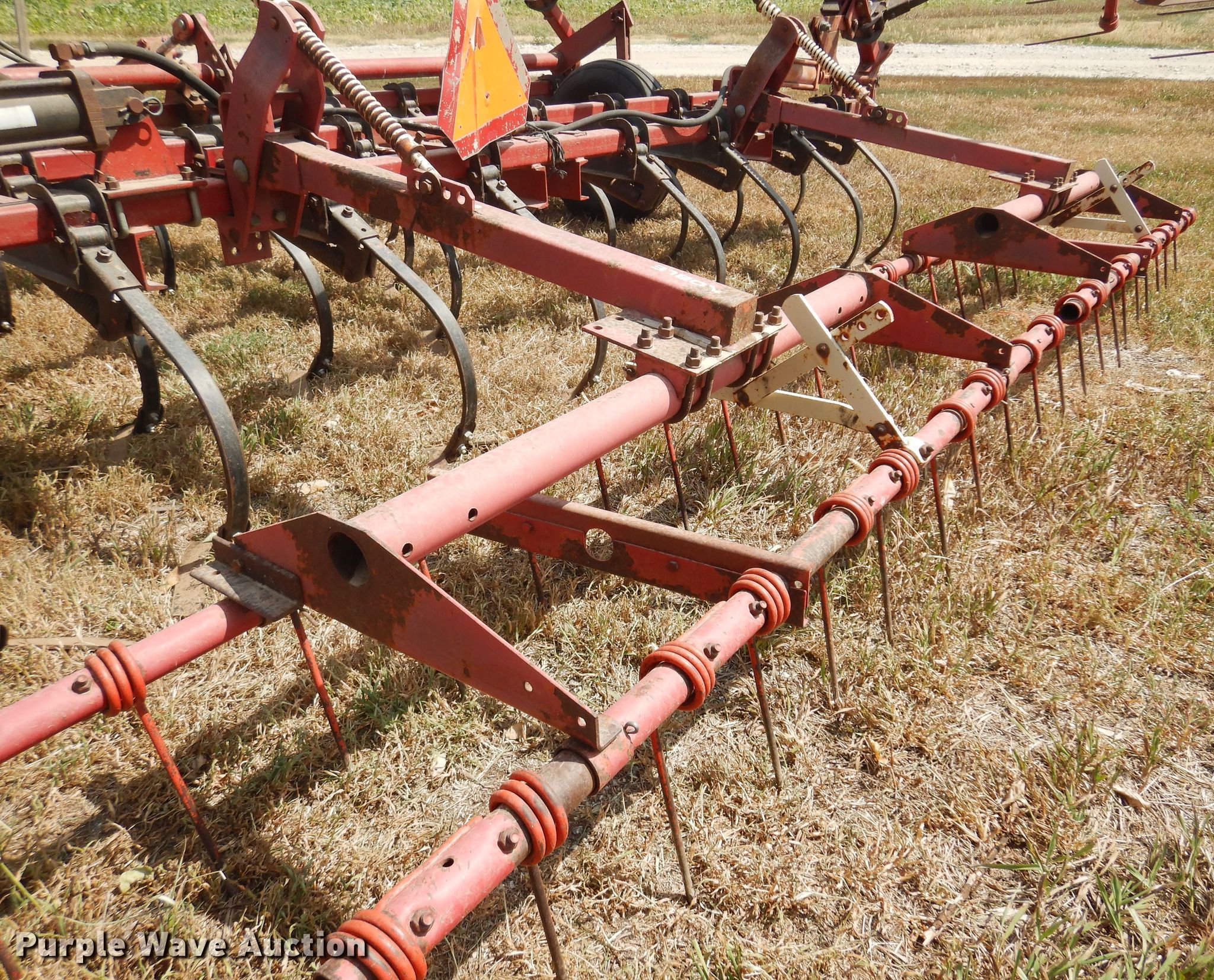 International Harvester field cultivator. Overall width: 20'. Features Shanks: 37, Sweep width: 12", Operation Hydraulic lift, Hydraulic fold, Leveler: Hydraulic, Attachments Tine harrow Harrow bars: 2.. Tires Tire size: 9.5L-14. Notes Unknown operating condition. 10001 NW 77 Hwy. Burns, KS 66840