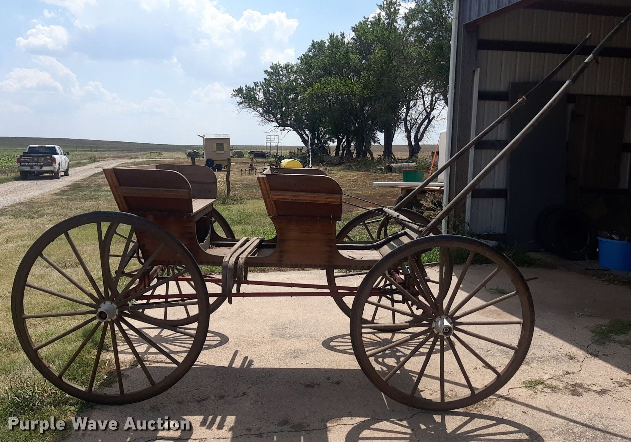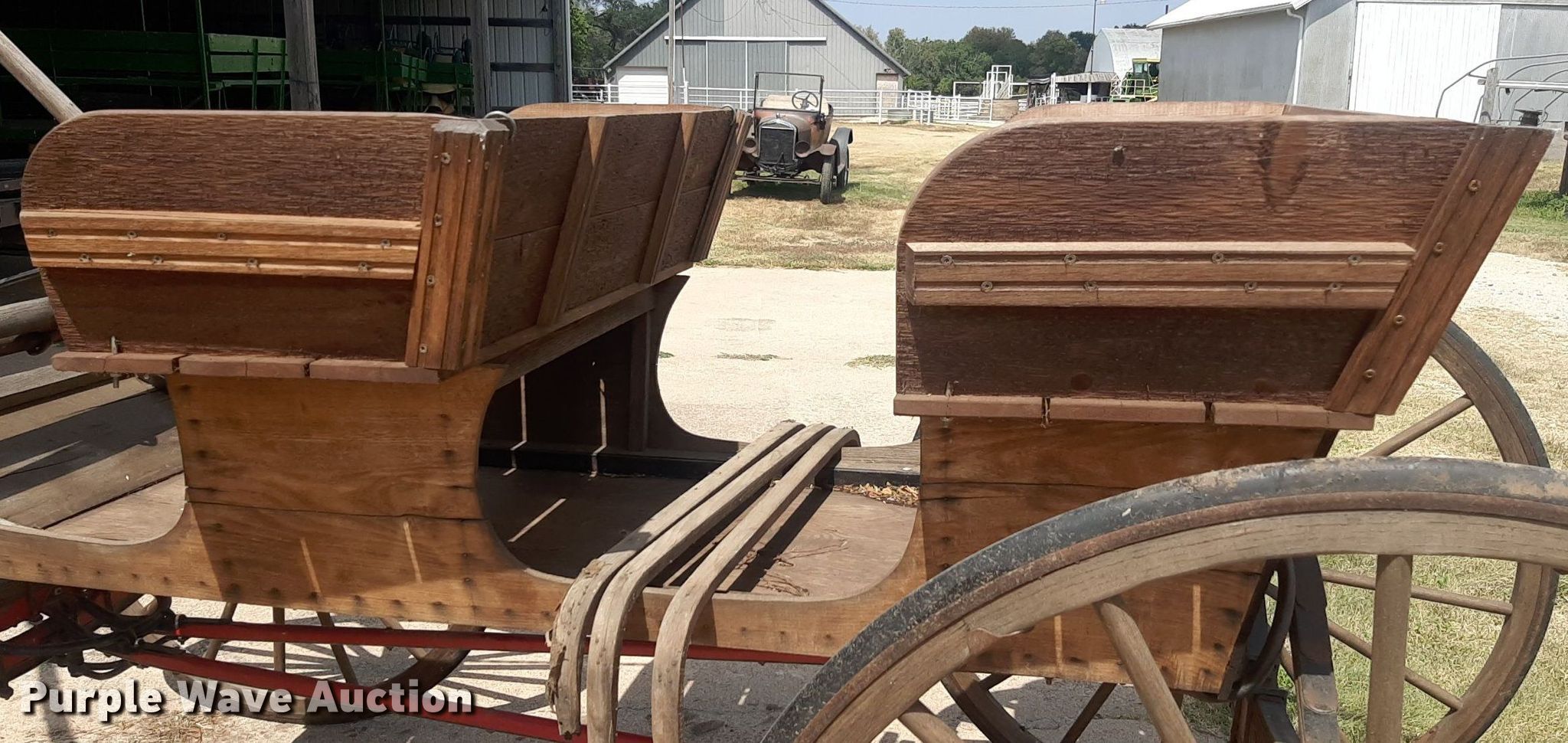 Wooden wagon has sold in Burns, Kansas for $1155. Item OF9396 sold on October 4th, 2023.