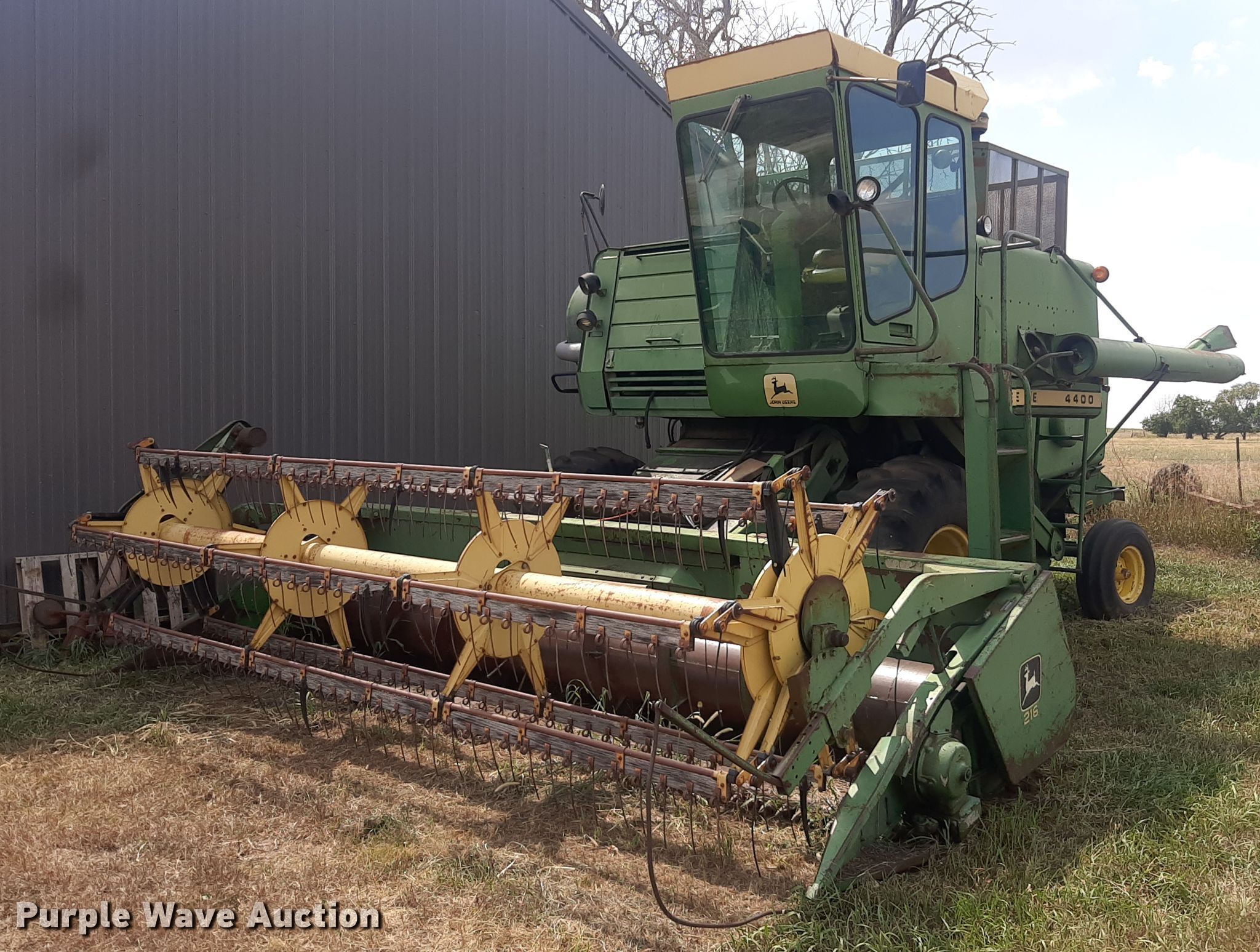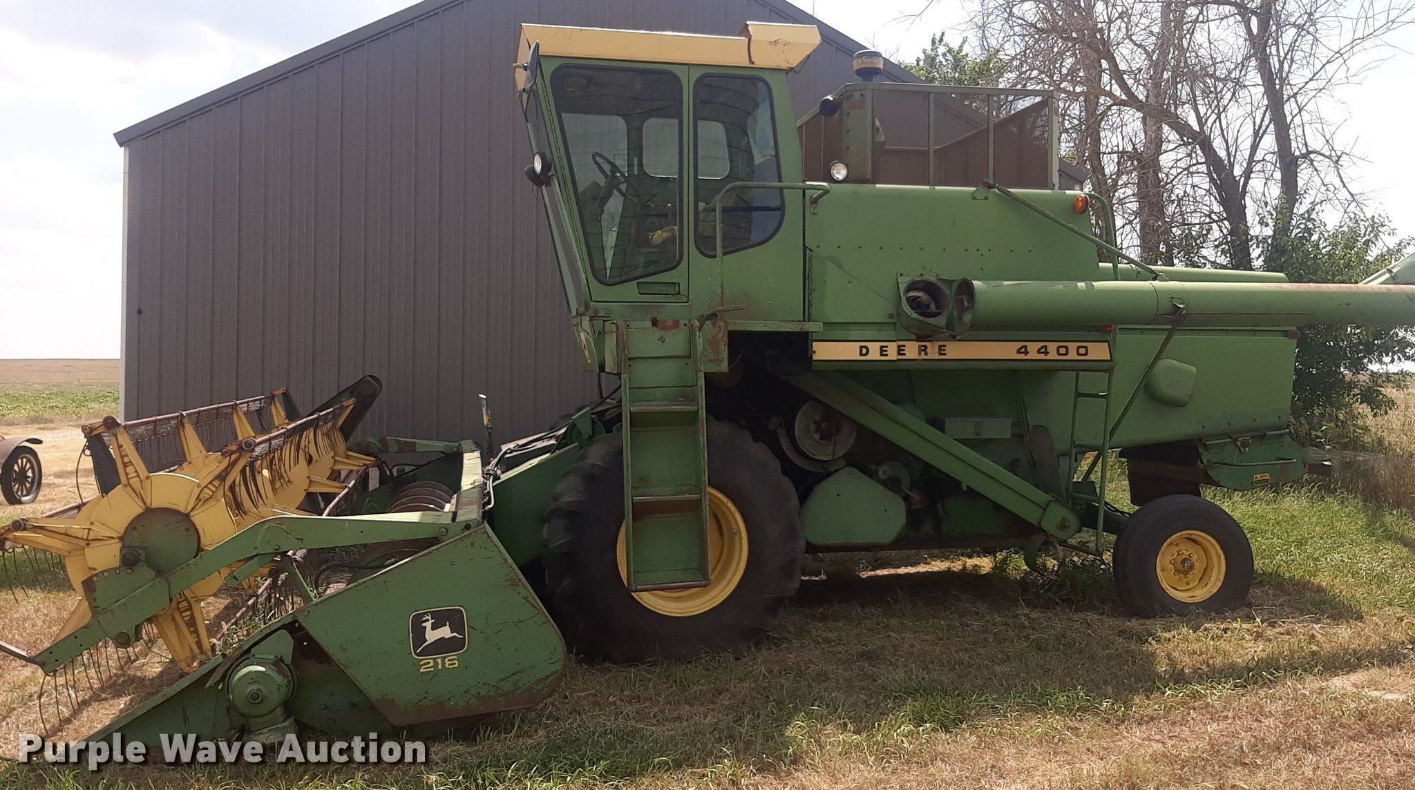 Purple Wave is selling a used Combine in Kansas. This item is a John Deere 4400 combine with the following: Engine hours: 5,213 on meter, Serial: 152866H