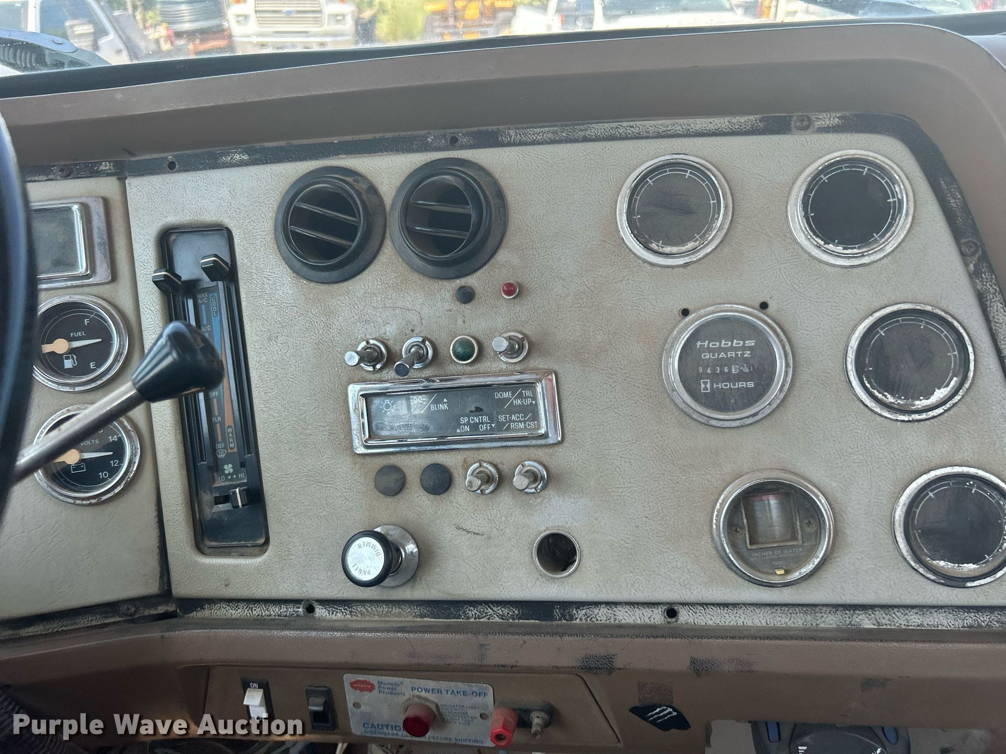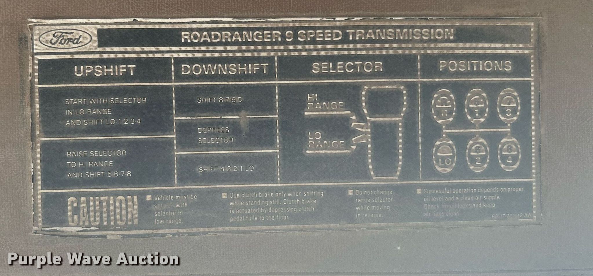 1994 Ford LTLS9000 semi truck. Miles: 376,578 on odometer, Hours: 9,437 on meter, VIN: 1FTYA99S1RVA22498. Engine Caterpillar, Displacement: 10.0L, Cylinders: 6, Fuel type: Diesel. Transmission Manual, Speed: 9. Chassis Axles: Tandem, Differential lock: Inter-axle, Suspension: Spring over walking beam, Brakes: Air, PTO, Wet kit, GVWR: 20,000 lbs FAWR: 12,000 lbs, RAWR: 20,000 lbs, Wheelbase: 167". Interior AC, Heat. Features Deck plate: Aluminum, Fifth wheel type: Sliding, Fuel tank: Dual. Tires Size: 11R22.5. Notes Windshield chipped or cracked, Headlight missing. Oklahoma title. Title distribution may be delayed up to 14 days from verification of funds. Senax Inc.. 65 County Road 2173. Hominy, OK 74035