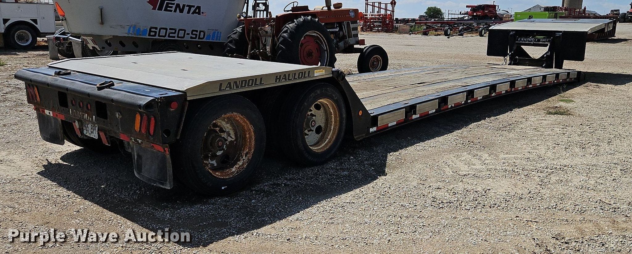2010 Landoll Hauloll 825C lowboy equipment trailer. VIN: 1LH825VH4A1C18061. Dimensions Overall: 51' L x 8' 6" W, Deck: 30' L x 8' 6" W, Top deck length: 10', Rear deck length: 7', Deck height: 17". Features Deck type: Steel, Wood, Outriggers: Pull-out Board size: 24", Neck type: Detachable. Chassis Suspension: Air, Brakes: Air, Axles: Tandem, GVWR: 71,950 lbs, GAWR: 20,000 lbs. Tires Steel wheels, Size: 255/70R22.5. Missouri title. Title distribution may be delayed up to 14 days from verification of funds. Heartland Tractor Company. 30211 SE Outer Rd. Harrisonville, MO 64701