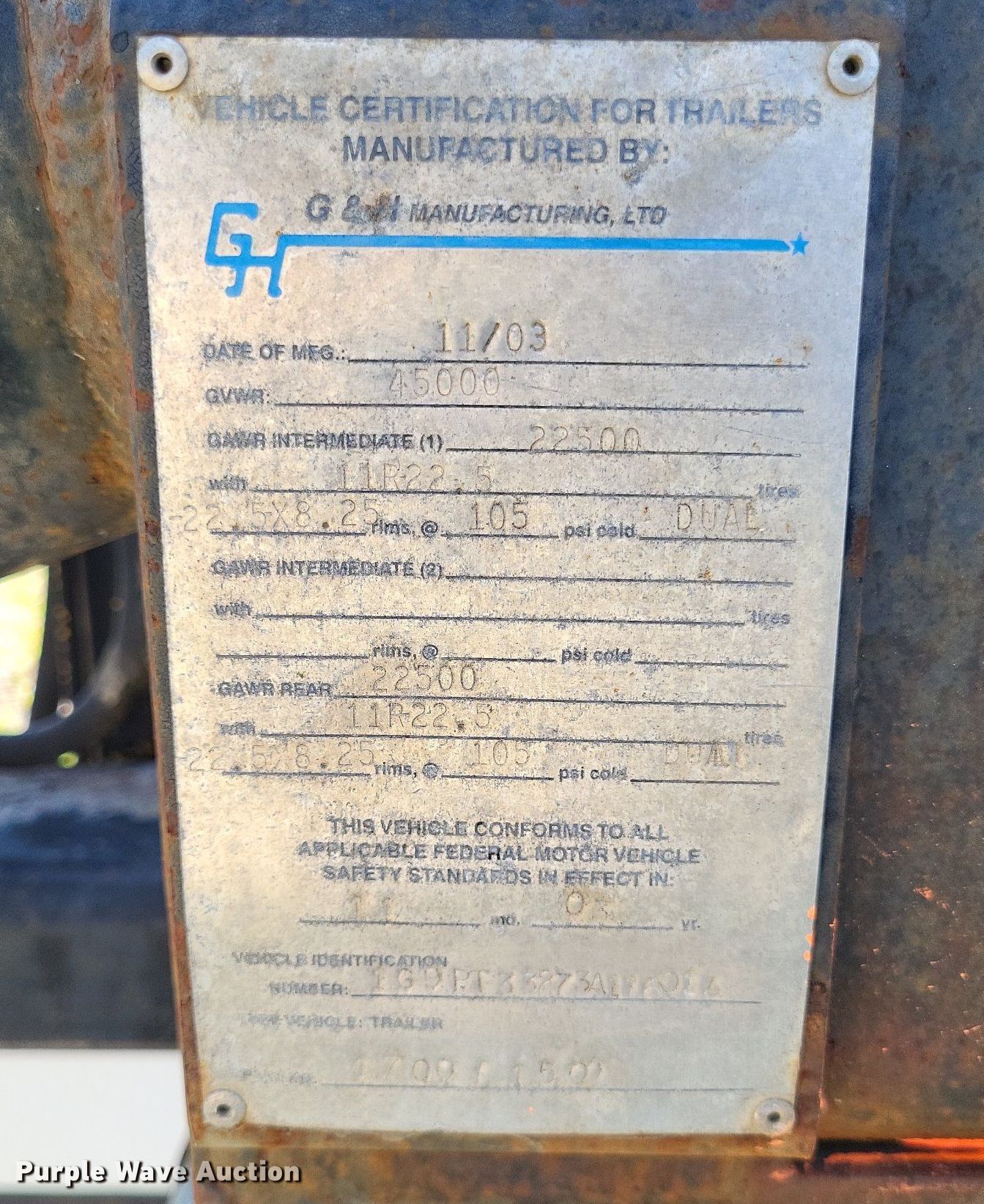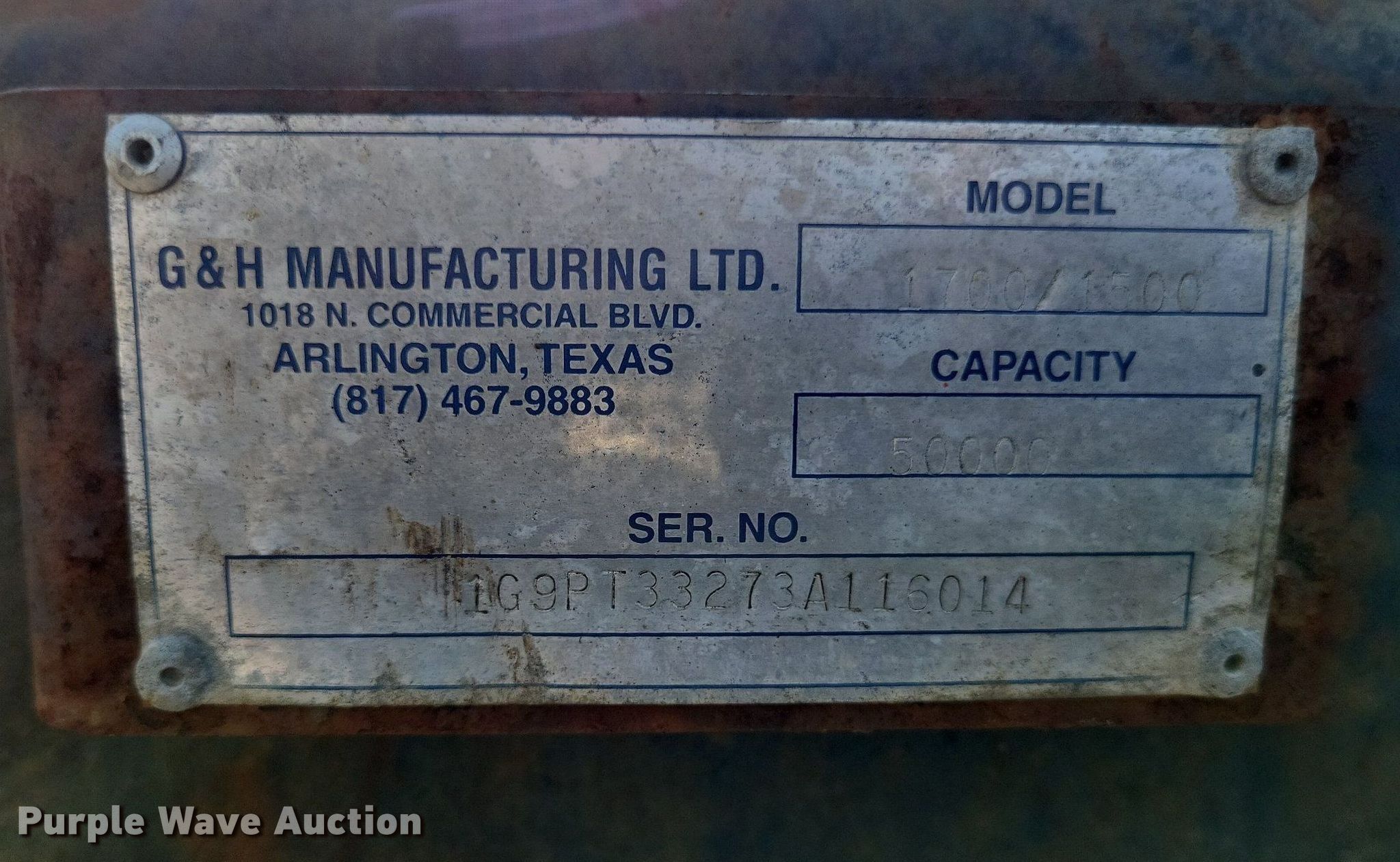 Purple Wave is selling a used Container Trailer in Missouri. This item is a 2003 G & H 1700/1500 roll-off container trailer with the following: VIN: 1G9PT33273A116014, Unit #: 600033