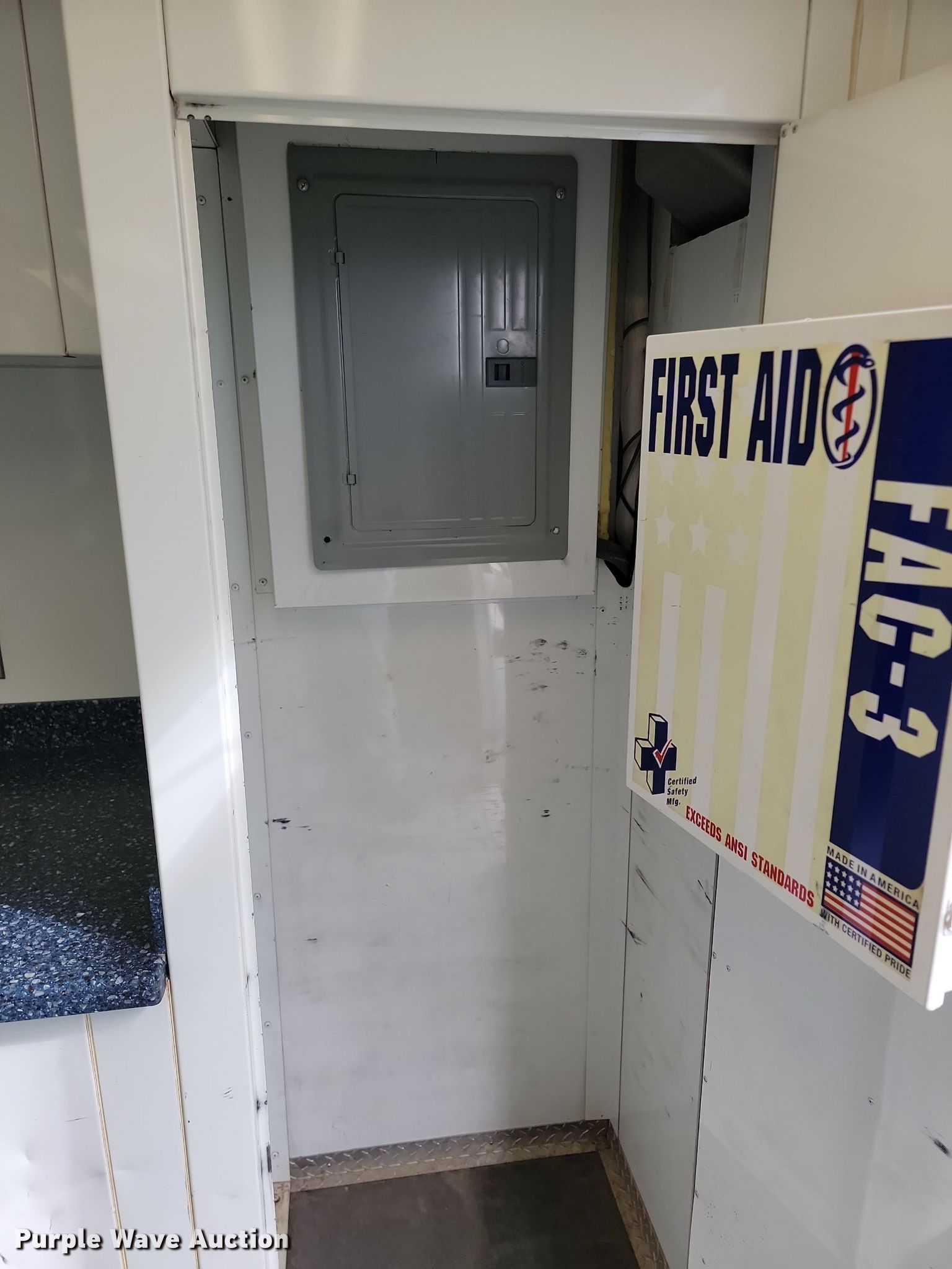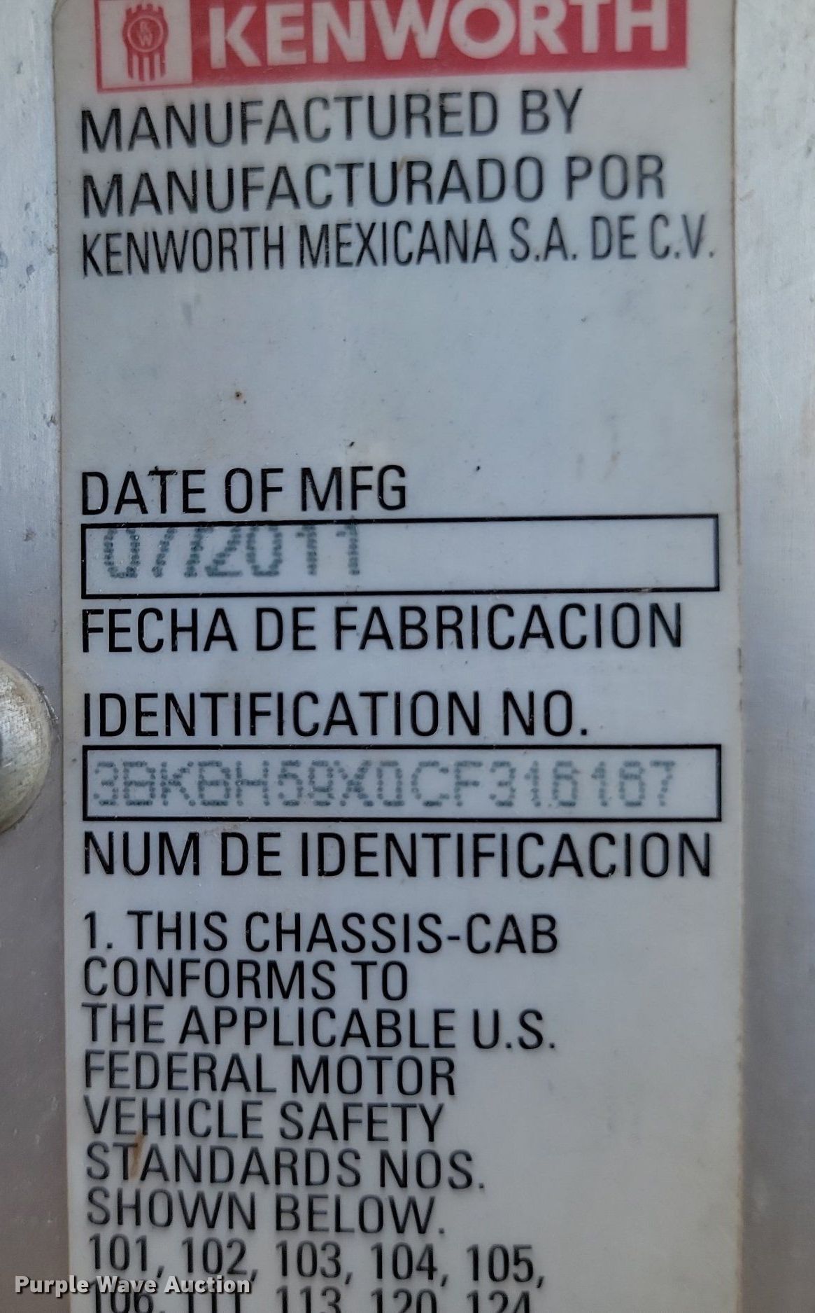 2012 Kenworth T440 mobile command center truck. Miles: 72,911 on odometer, VIN: 3BKBH59X0CF316167. Engine Cummins, Displacement: 8.9L, Cylinders: 6, Fuel type: Diesel, Engine brake. Transmission Eaton Fuller, Manual, Speed: 10. Chassis Axles: Tandem, Differential lock: Inter-axle, Suspension: Air, Brakes: Air. Interior AC, Heat, Cruise control, Sleeper Sleeper length: 28", Beds: Single. Features Command center bed 25'L x 8'W, Engine Power Source 10020MENC generator Phase: single, KW: 20, Kubota engine Cylinders: 4, Fuel: Diesel, (4) Colemans Mach AC units. Tires Size: 11R22.5. Kansas title. Title distribution may be delayed up to 30 days from verification of funds. Hurricane Well Services. 8655 Dorn Rd. Thayer, KS 66776