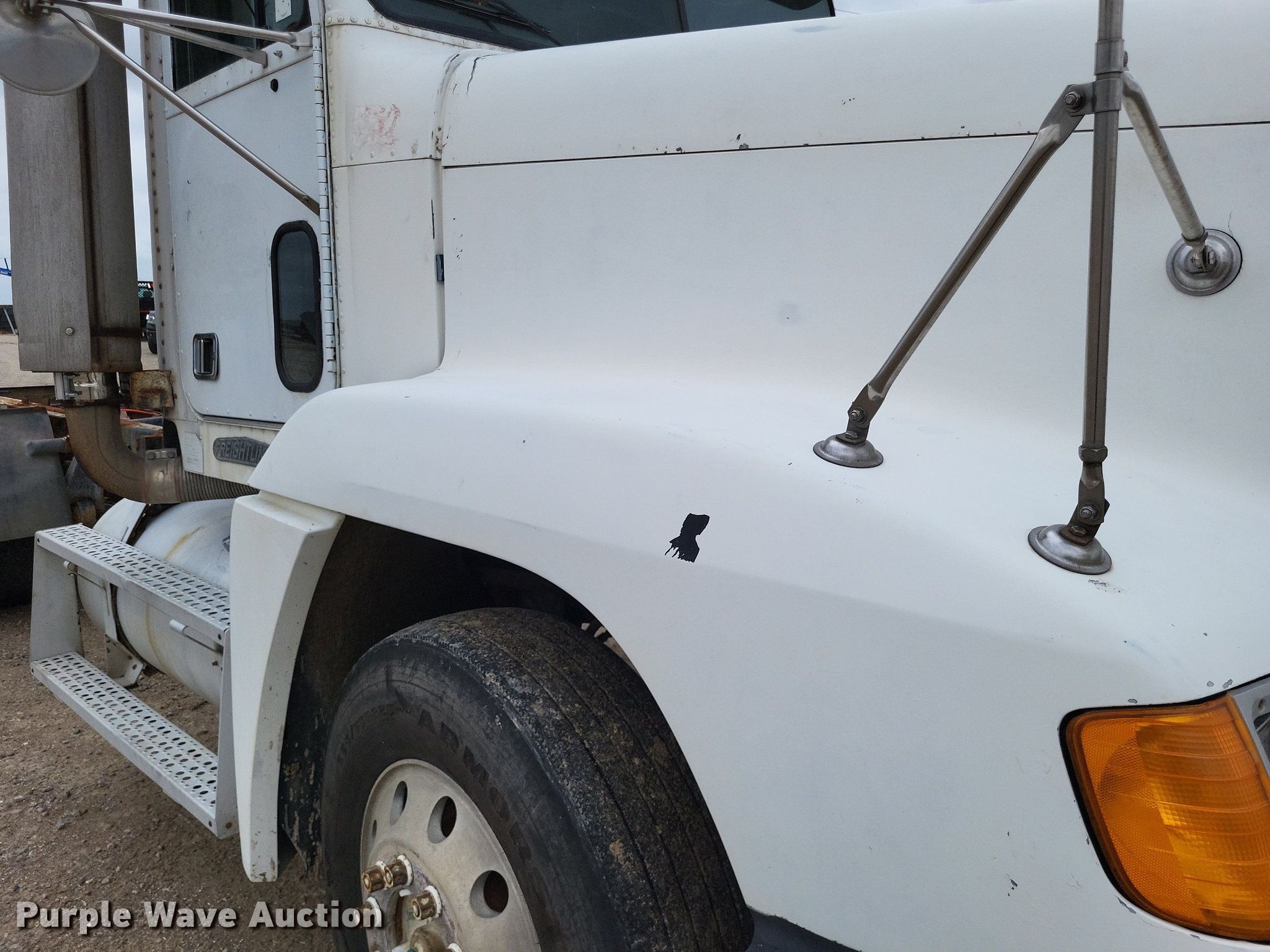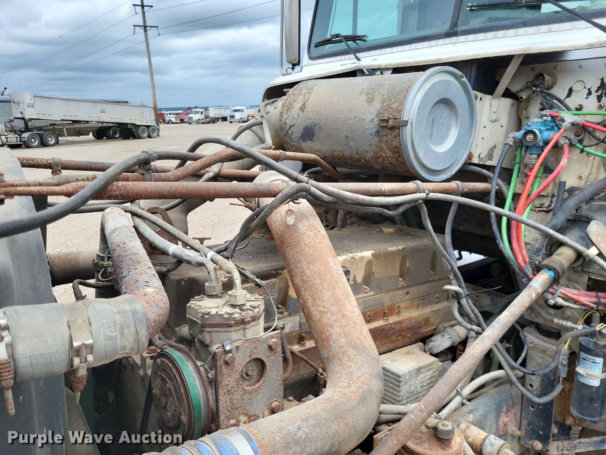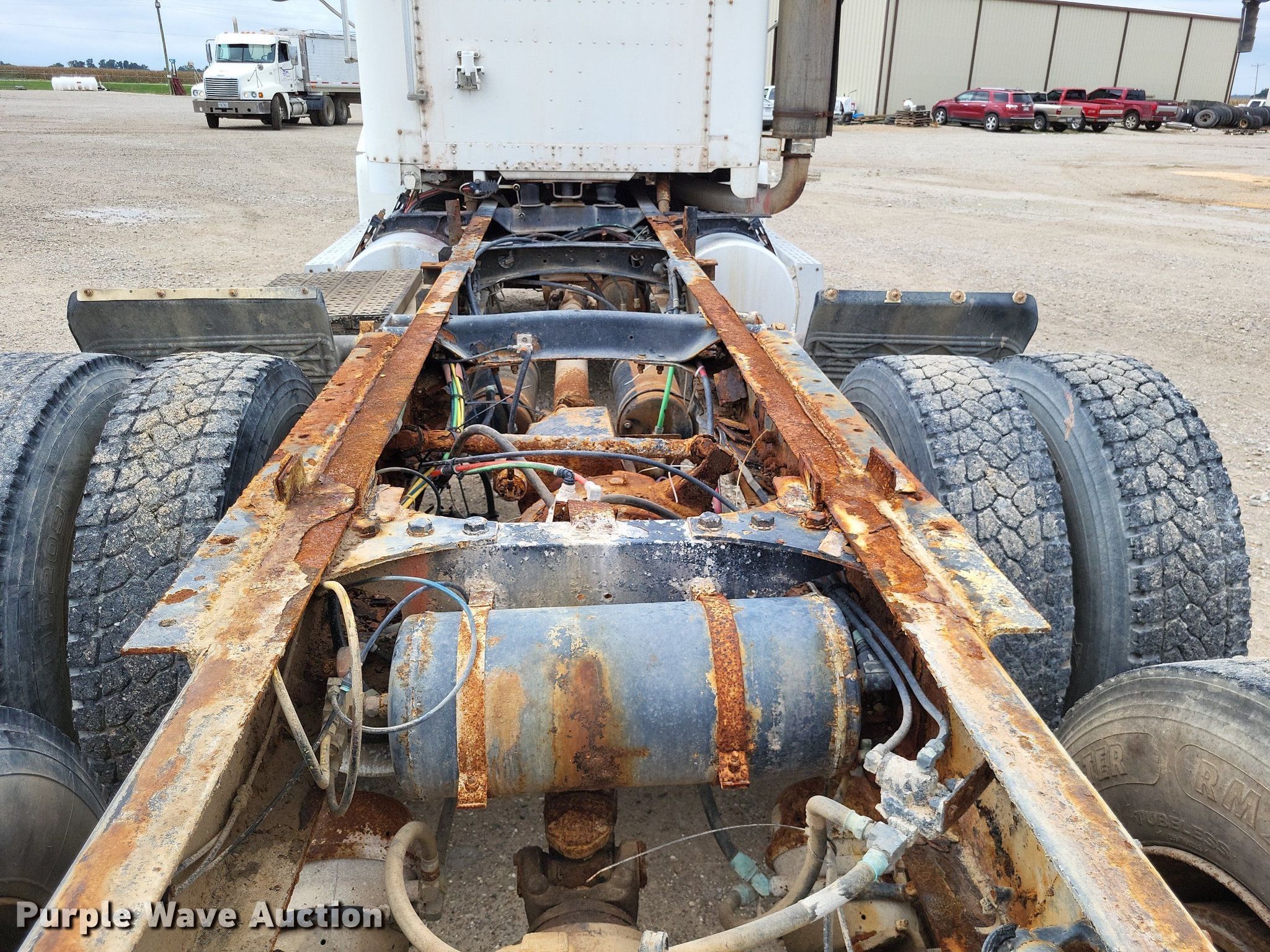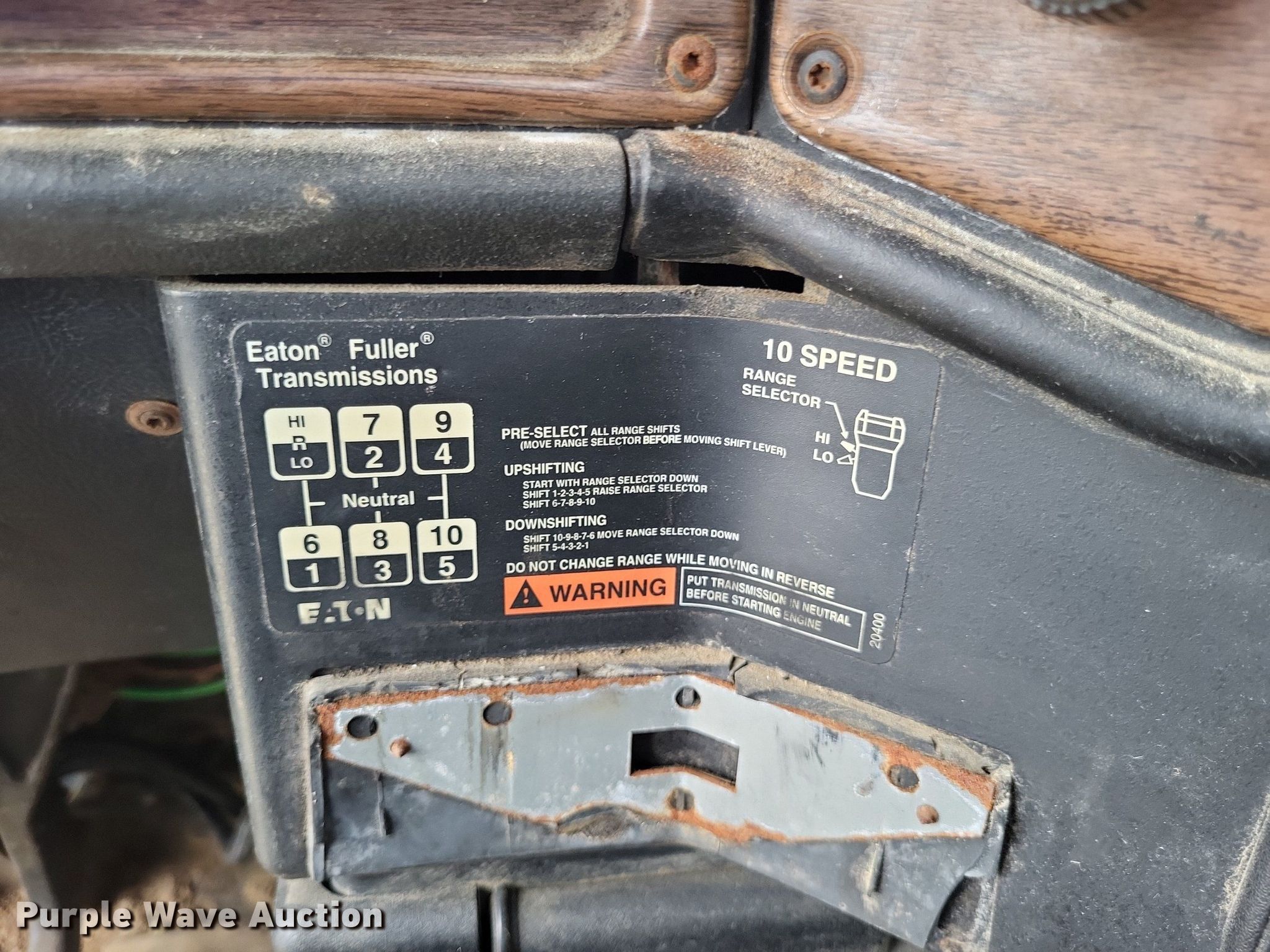 1996 Freightliner FLD120 semi truck. Miles: 181,246 on odometer, VIN: 1FUYDMDB3TH556893, Unit #: 562. Engine Cummins M11, Serial: 34799781, Displacement: 10.8L, Cylinders: 6, Fuel type: Diesel, HP: 350/400. Transmission Eaton Fuller RT-14710B, Manual, Speed: 10. Chassis Axles: Tandem, Differential lock: Inter-axle, Suspension: Air, Brakes: Air, PTO, Truck chassis: 221", GVWR: 52,000 lbs FAWR: 12,000 lbs, IAWR: 20,000 lbs, RAWR: 20,000 lbs, Wheelbase: 211". Interior AC, Heat. Features Fuel tank: Dual. Tires Size: 295/75R22.5. Notes Windshield chipped or cracked. Arkansas title. Title distribution may be delayed up to 14 days from verification of funds. MFA Ag Inc.. 11073 U.S. 62. Piggott, AR 72454