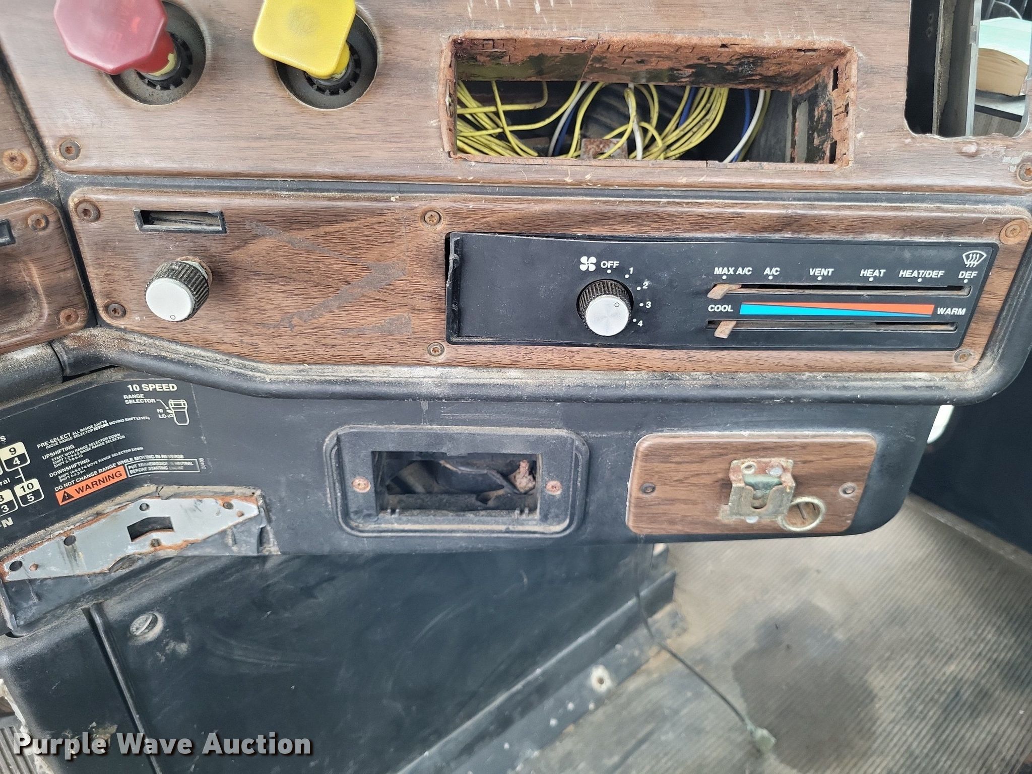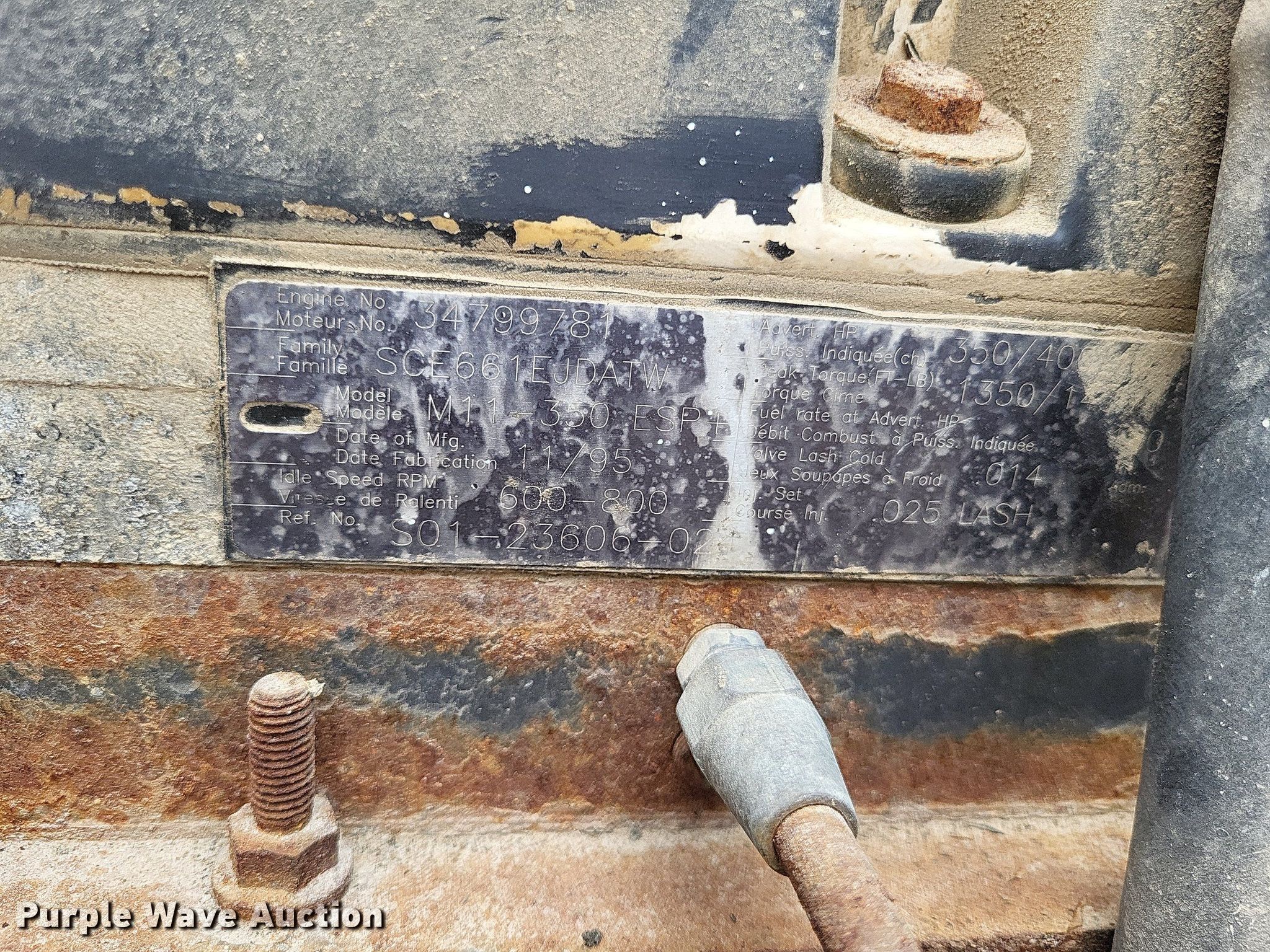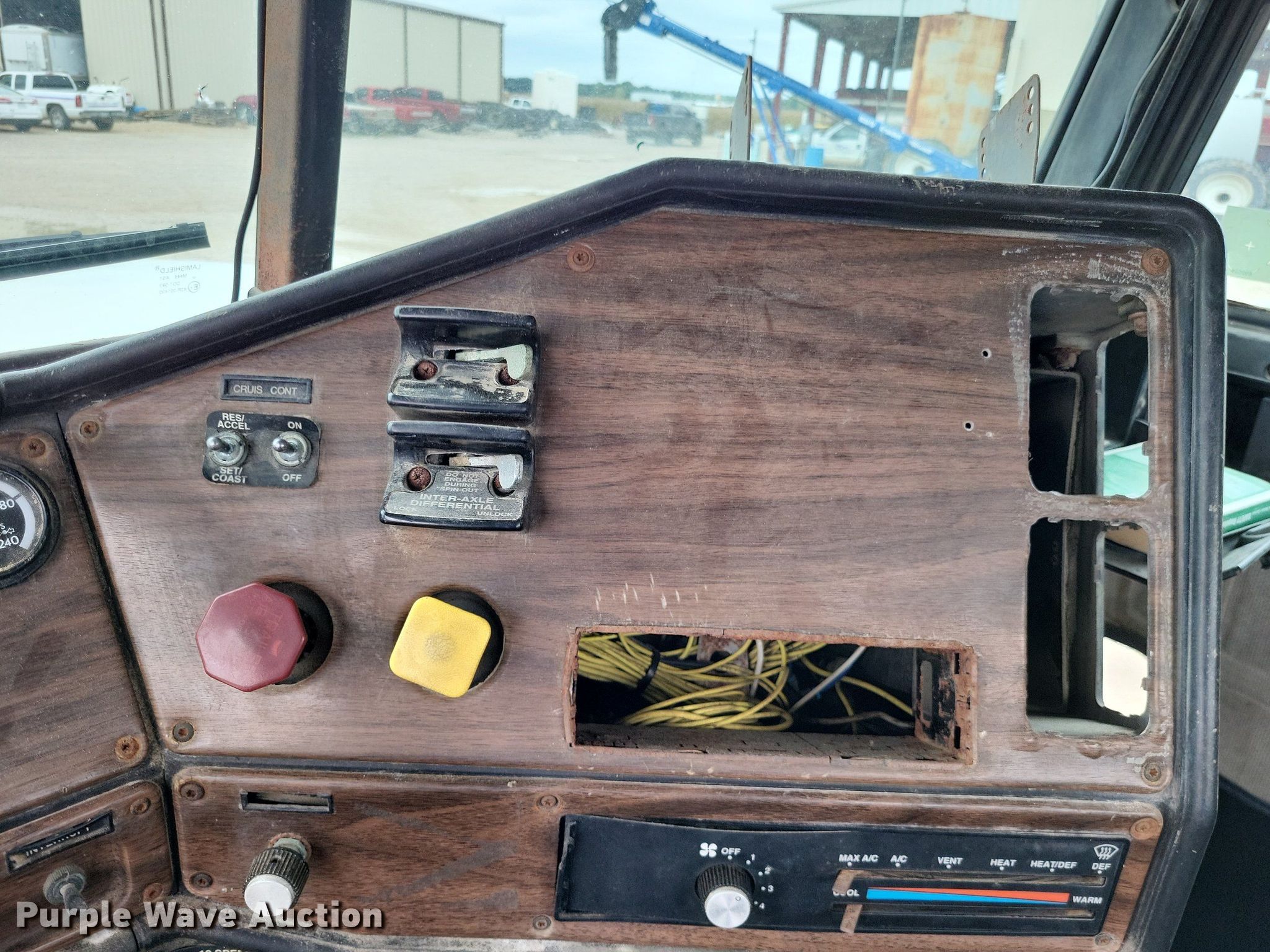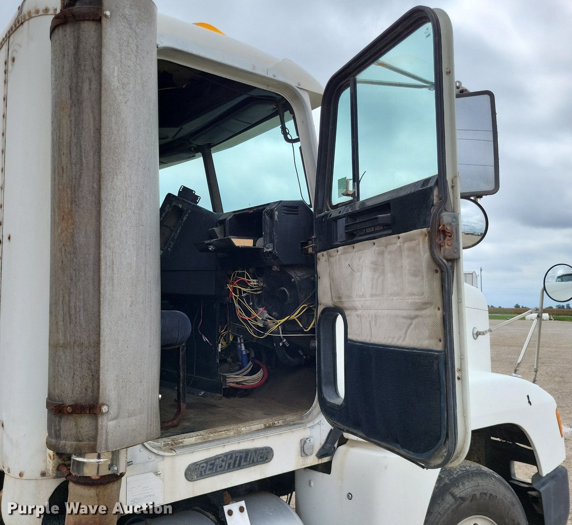 1996 Freightliner FLD120 semi truck. Miles: 181,246 on odometer, VIN: 1FUYDMDB3TH556893, Unit #: 562. Engine Cummins M11, Serial: 34799781, Displacement: 10.8L, Cylinders: 6, Fuel type: Diesel, HP: 350/400. Transmission Eaton Fuller RT-14710B, Manual, Speed: 10. Chassis Axles: Tandem, Differential lock: Inter-axle, Suspension: Air, Brakes: Air, PTO, Truck chassis: 221", GVWR: 52,000 lbs FAWR: 12,000 lbs, IAWR: 20,000 lbs, RAWR: 20,000 lbs, Wheelbase: 211". Interior AC, Heat. Features Fuel tank: Dual. Tires Size: 295/75R22.5. Notes Windshield chipped or cracked. Arkansas title. Title distribution may be delayed up to 14 days from verification of funds. MFA Ag Inc.. 11073 U.S. 62. Piggott, AR 72454