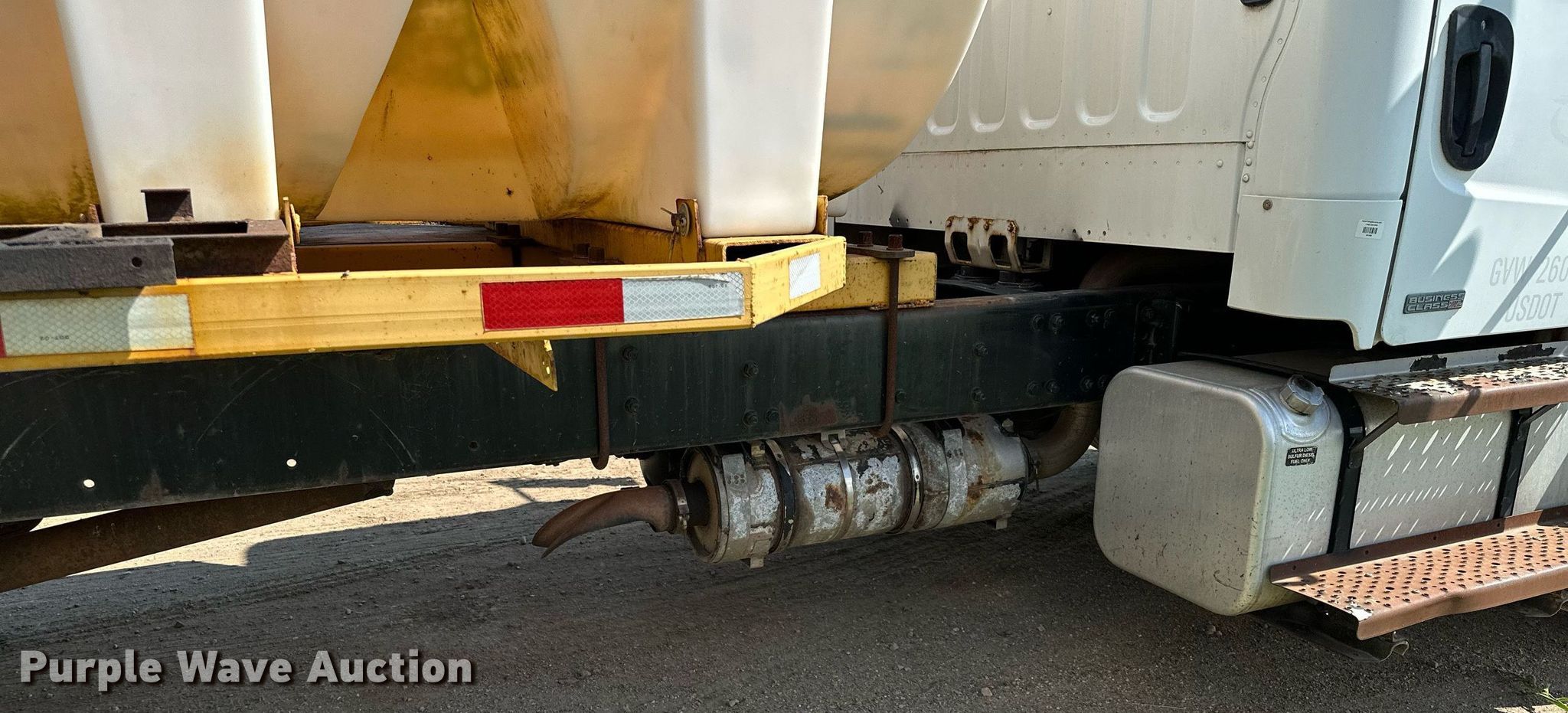 2008 Freightliner M2 Business Class tank truck. Miles: 241,974 on odometer, Hours: 9,744 on meter, VIN: 1FVACWDT28HZ52356. Engine Cummins, Displacement: 6.7L, Cylinders: 6, Fuel type: Diesel. Transmission Automatic. Chassis Axles: Single, Suspension: Air Dump valves, Brakes: Air, GVWR: 26,000 lbs. Interior AC, Heat, Heated mirrors, Cruise control. Features Bed / tank Capacity: 2,200 gallons, 16' L x 8' 2" W, Spray bar: Rear, Top fill, Rear drain: 3", Rear outlet: 3". Tires Size: 295/75R22.5. Notes Dash warning indicator: Check engine. Minnesota title. Title distribution may be delayed up to 14 days from verification of funds. 1888 Calvary Rd SE. Osakis, MN 56360