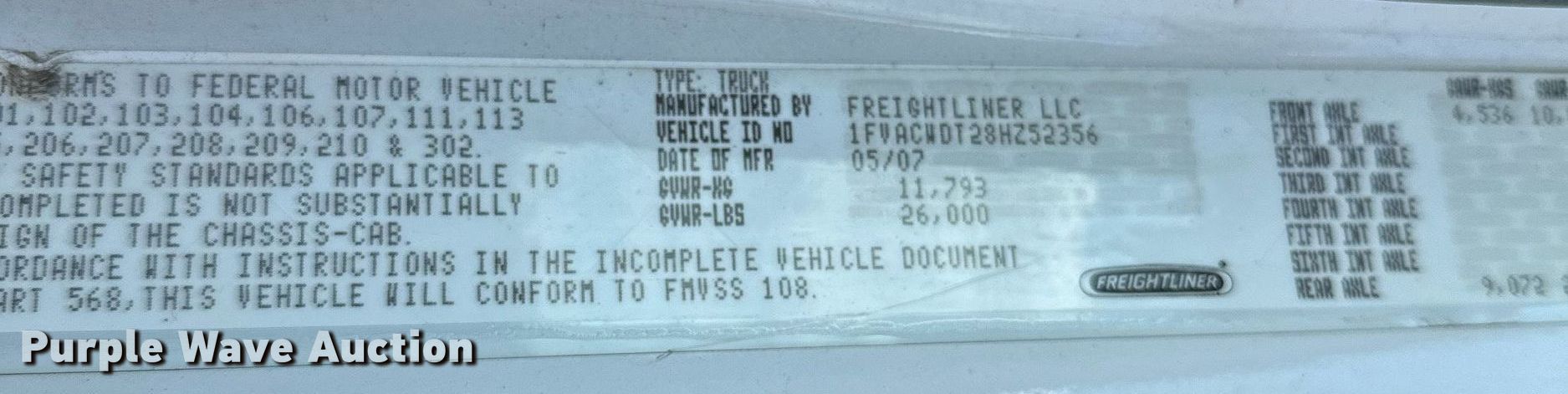 - VIN: 1FVACWDT28HZ52356