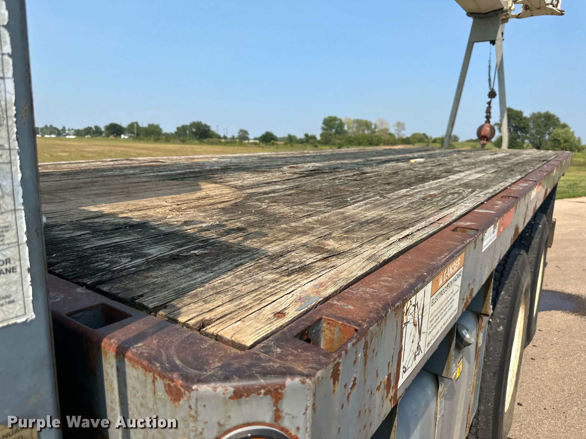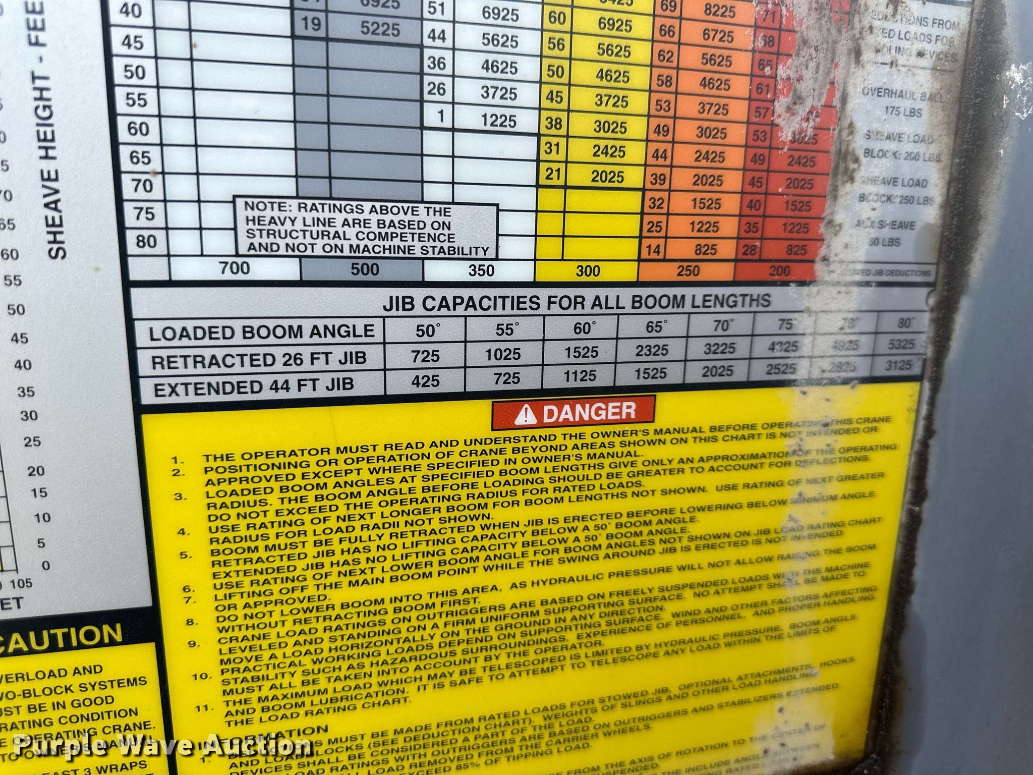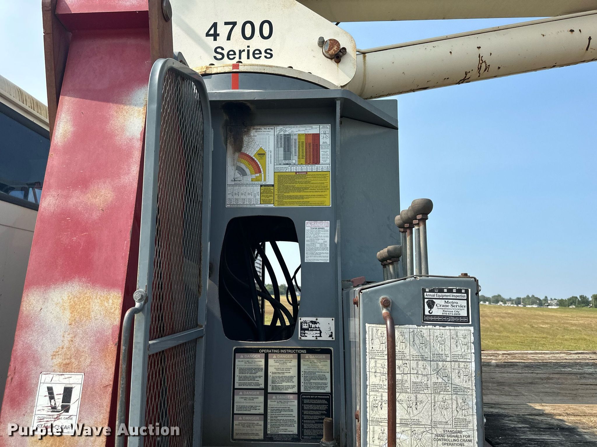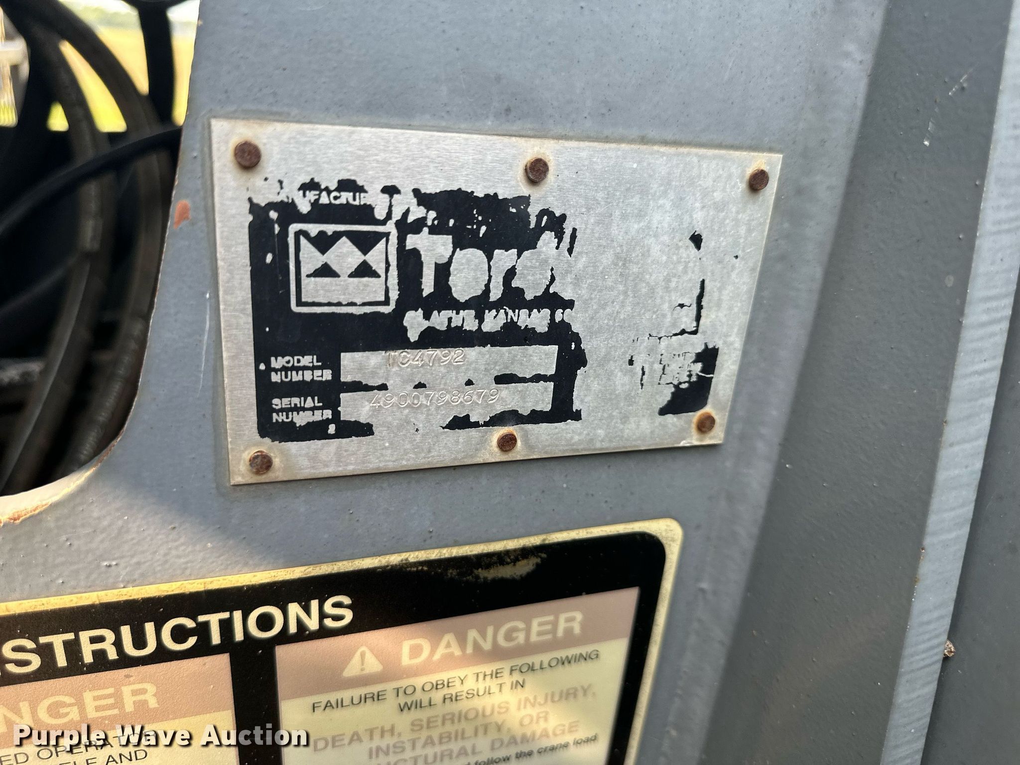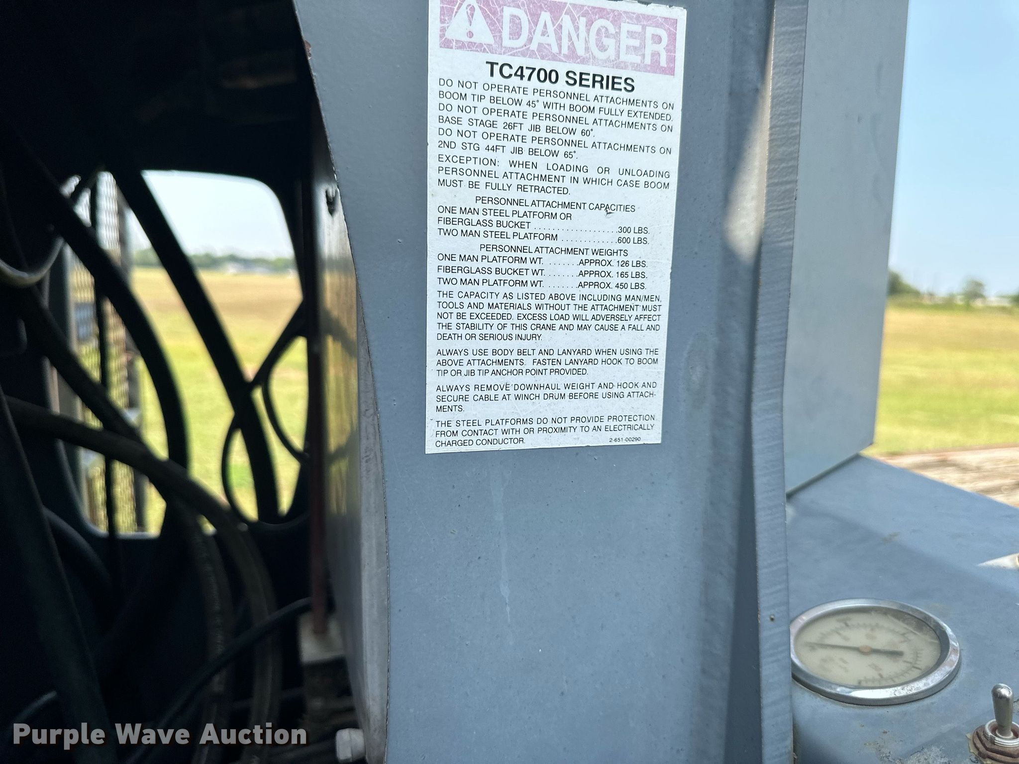 1999 International 2654 crane truck. Miles: 60,965 on odometer, Hours: 1,690 on meter, VIN: 1HTGHADT7XH602524. Engine International, Displacement: 8.7L L6, Cylinders: 6, Fuel type: Diesel. Transmission Spicer, Manual, Speed: 10. Chassis Axles: Tandem, Suspension: Spring over walking beam, Brakes: Air, PTO. Interior AC, Heat. Features Flatbed 21' L x 102" W, Crane Terex stinger TC4792 Serial: 4900798679, Boom Telescopic, Maximum boom length: 92' Maximum lift capacity: 47,000 lbs, Jib: 134', Boom controls Ground, Crane ball & hook. Tires Front: 385/65R22.5, Rear: 11R22.5. Kansas title. Five Star Masonry. Meriden, KS 66512