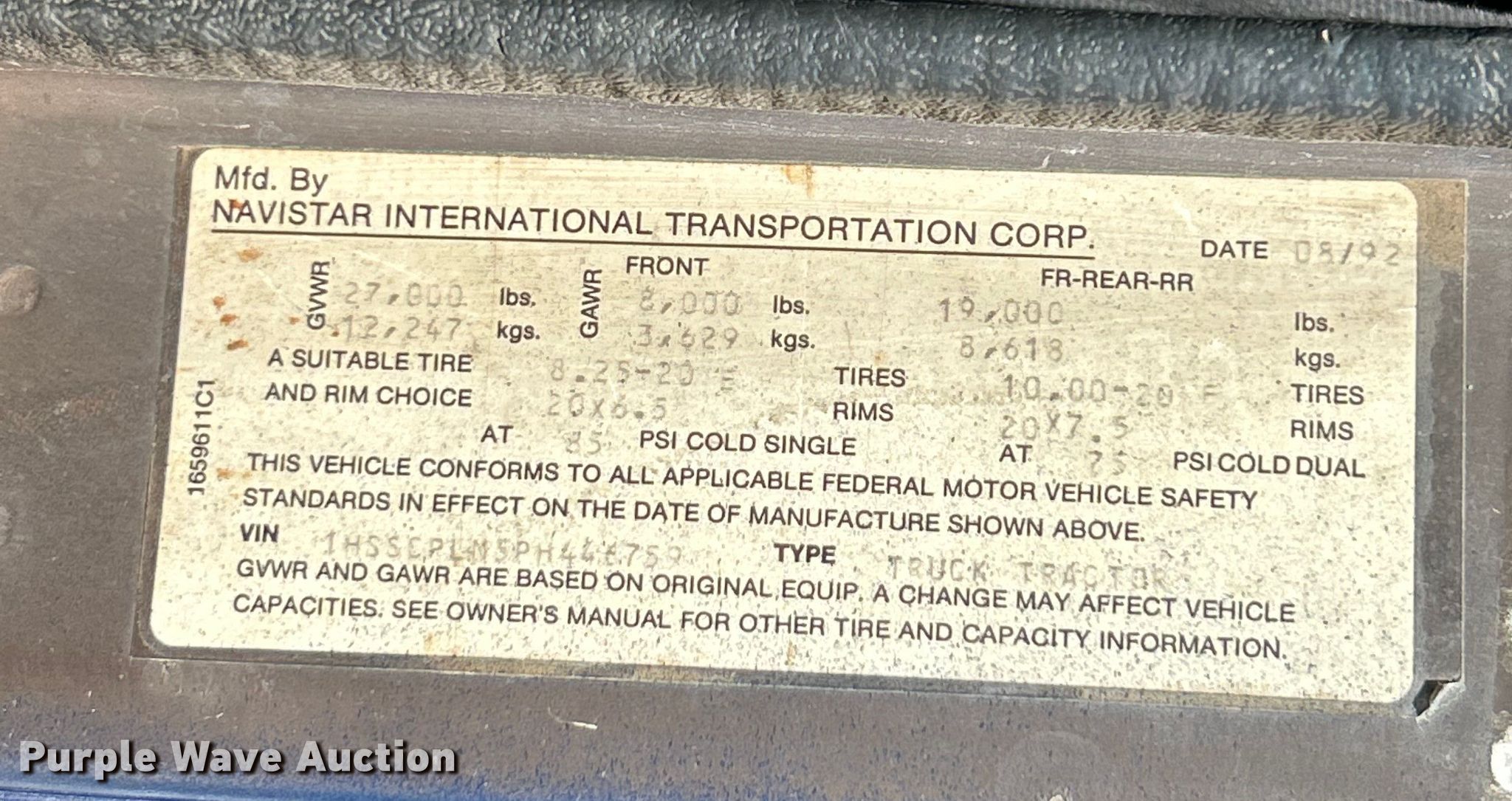 1993 International 4700 flatbed truck. Miles: 251,951 on odometer, VIN: 1HSSCPLN5PH446759. Engine International DT360, Displacement: 5.9L, Cylinders: 6, Fuel type: Diesel. Transmission Tremec, Manual, Speed: 7. Chassis Axles: Single, Suspension: Spring, Brakes: Air, GVWR: 27,000 lbs, Wheelbase: 140". Interior Heat, Brake controller. Features Flatbed 8' 6" L x 96" W, Hitch: Gooseneck. Tires Front: 265/75R22.5, Rear: 11R22.5. Notes Dead battery, Frame twisted. Missouri title. Title distribution may be delayed up to 14 days from verification of funds. Concrete Strategies, LLC. St. Louis, MO 63040