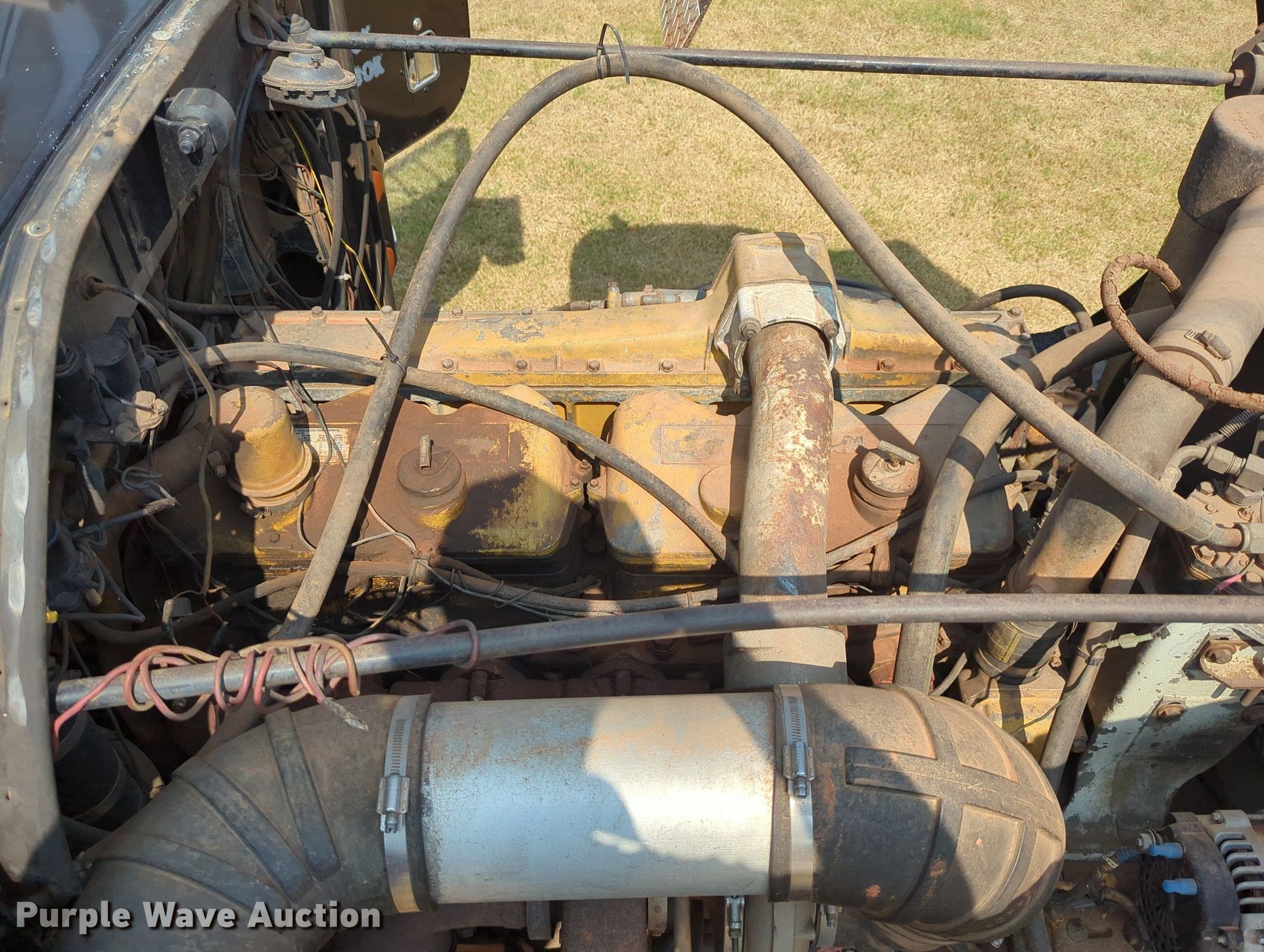 1981 Peterbilt 359 semi truck. Miles: 948,250 on odometer, VIN: 1XP9DB9X1BD200404. Engine Caterpillar 3406, Displacement: 14.6L, Cylinders: 6, Fuel type: Diesel, HP: 350, kW: 261, Engine brake. Transmission Eaton Fuller, Manual. Chassis Axles: Tandem, Differential lock: Inter-axle, Suspension: Air, Brakes: Air, PTO, GVWR: 50,000 lbs. Interior AC, Heat, Heated mirrors, Sleeper Sleeper length: 60", Beds: Single. Features Fifth wheel type: Air operated, Sliding, Fuel tank: Dual. Tires Size: 11R24.5. Notes Trailer not included. Oklahoma classic title. Title distribution may be delayed up to 14 days from verification of funds. 2290 County Road 1240. Blanchard, OK 73010
