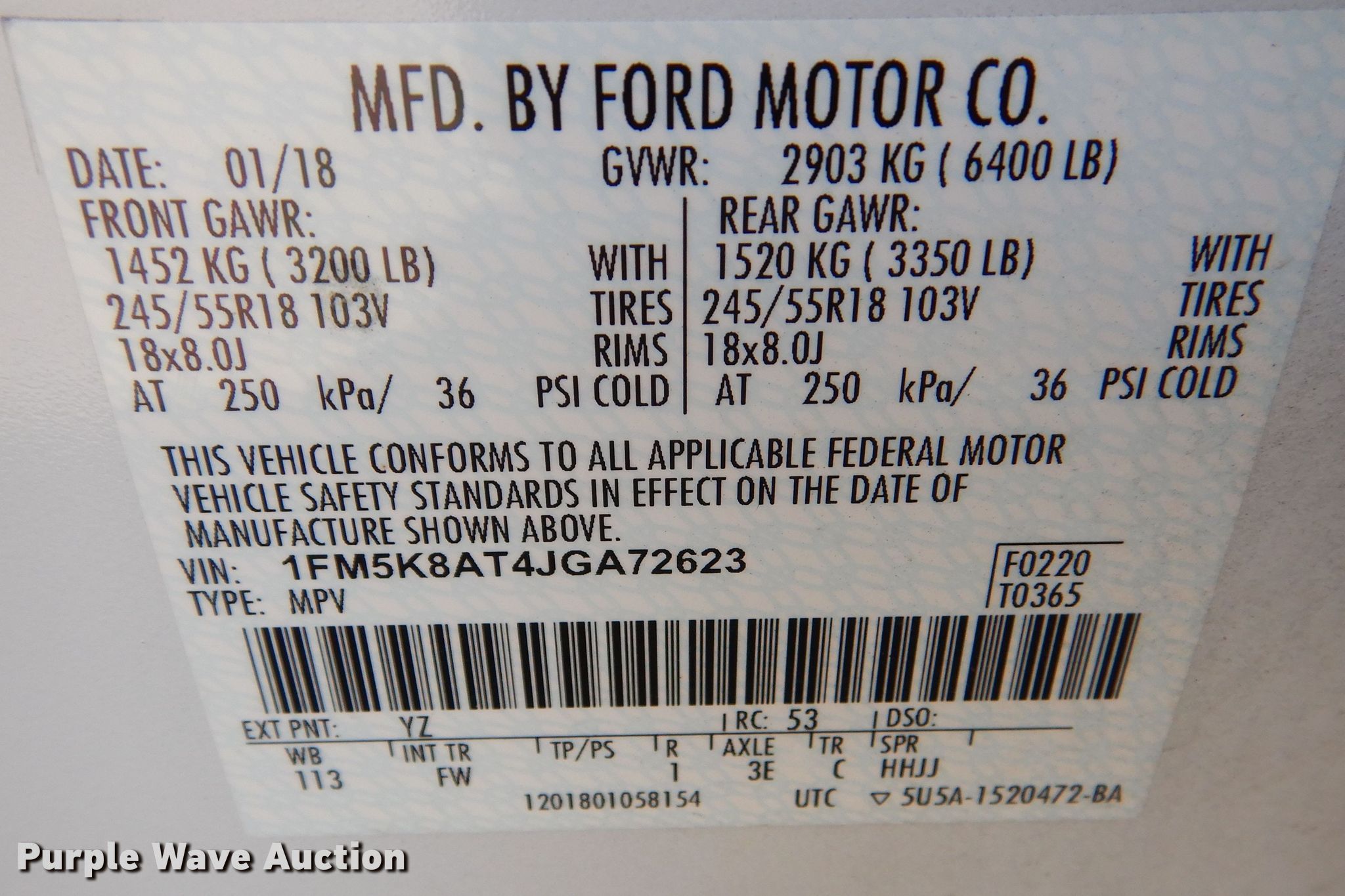 • VIN: 1FM5K8AT4JGA72623