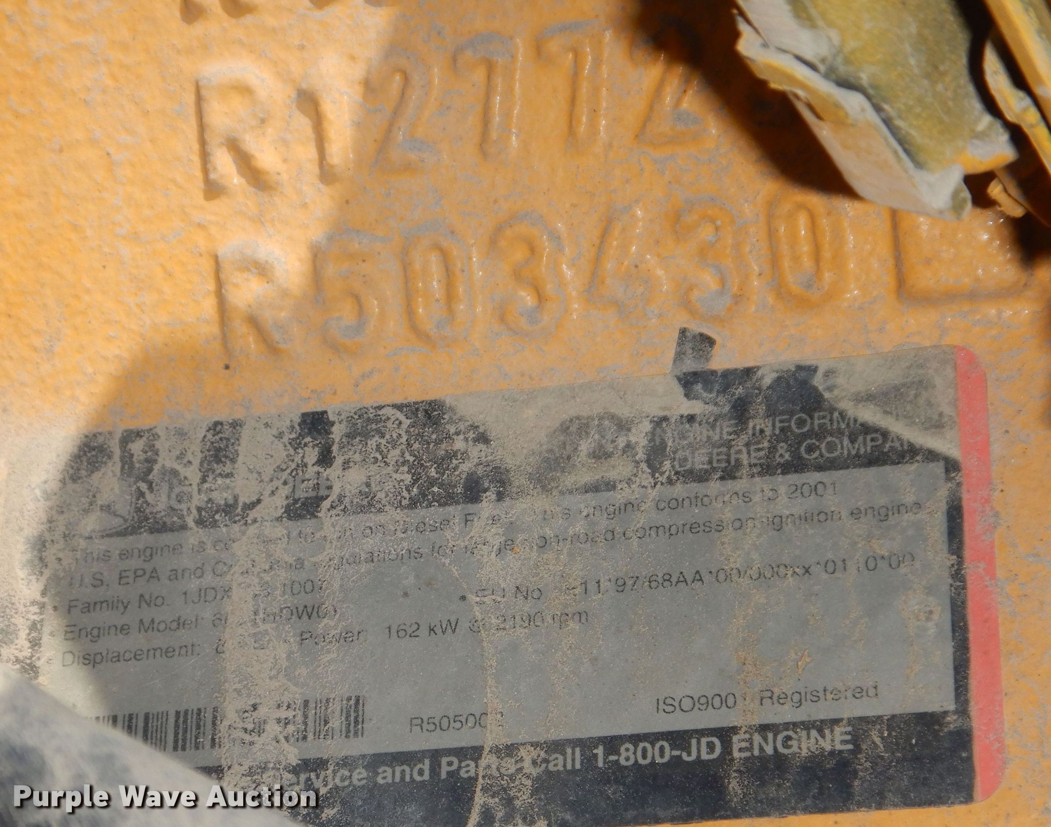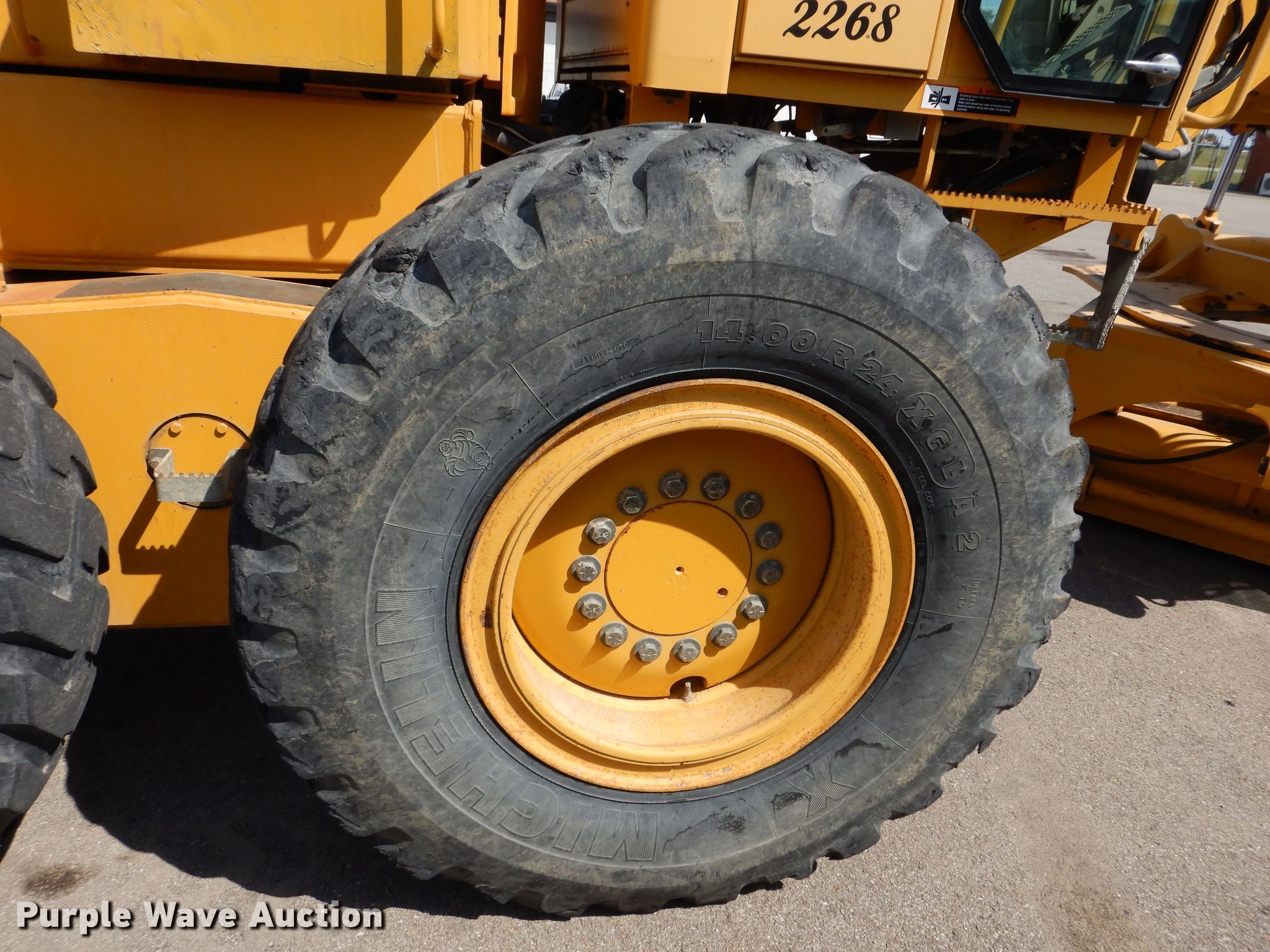 2001 John Deere 772CH motor grader. Hours: 1,404 on meter, Serial: DW772CH579360, Unit #: 2268. Engine John Deere, Serial: RG6081H131006, Cylinders: 6, Fuel type: Diesel. Transmission Powershift, 8F - 8R. Chassis All wheel drive. Operators station Enclosed cab, AC, Heat, Hydraulic control valves: 9. Features Moldboard: Tip control, Side shift, Moldboard total length: 14', Front-mounted lift group, Scarifier Make: John Deere, Scarifier type: Front-mounted Teeth: 9.. Tires Size: 14.00R24, Brand: Michelin. Kansas Turnpike Authority. 3939 SW Topeka Blvd. Topeka, KS 66609