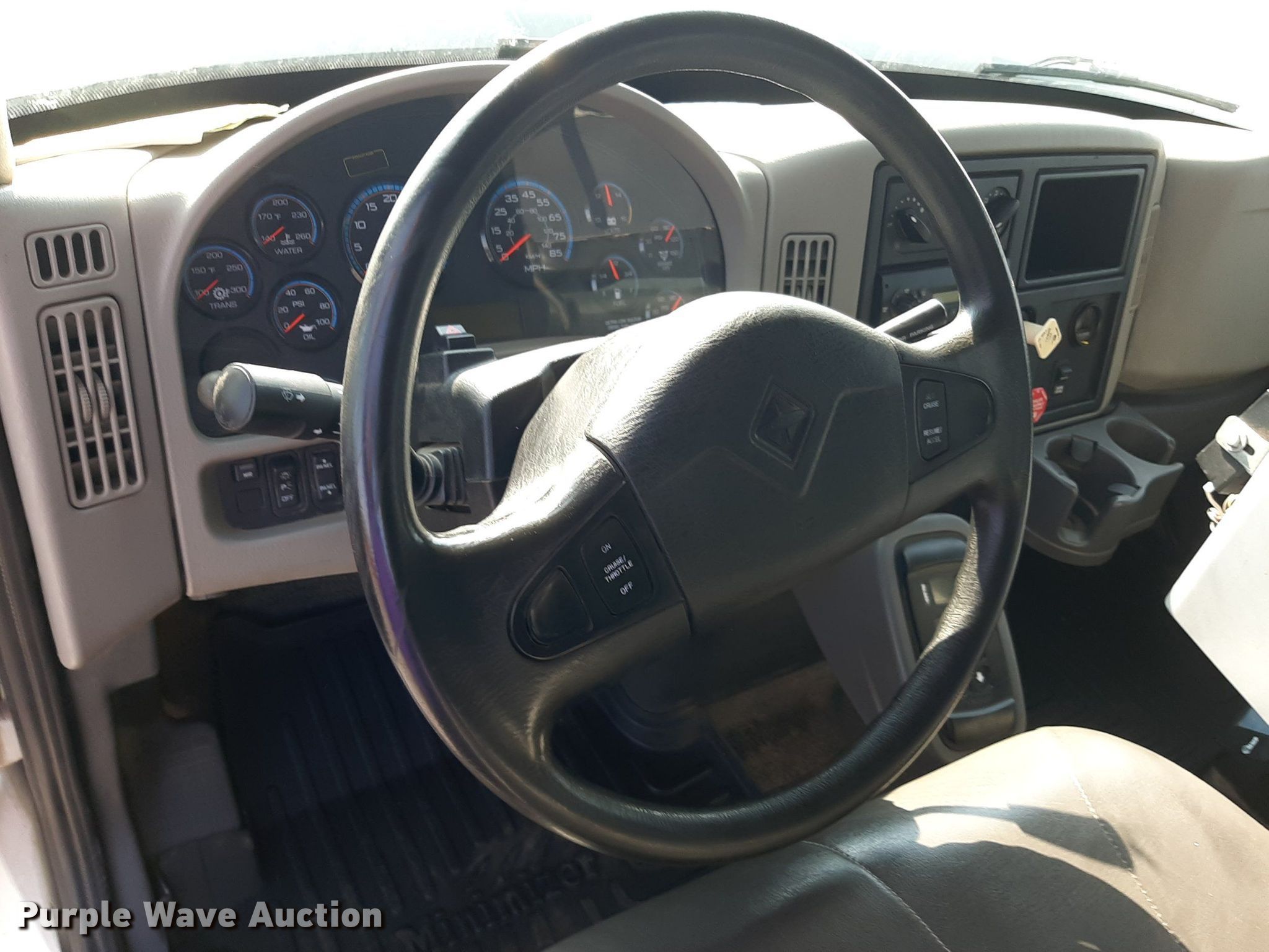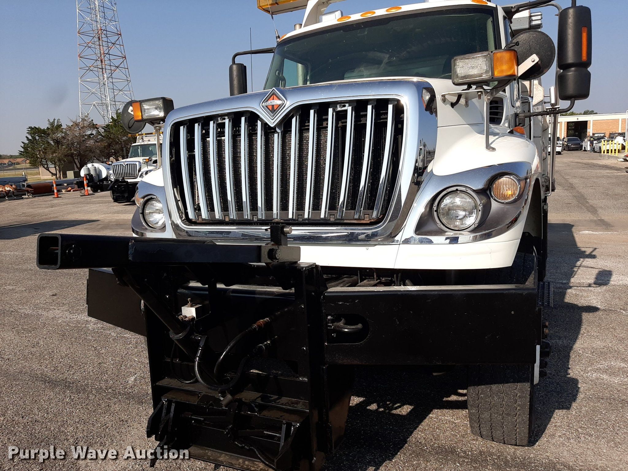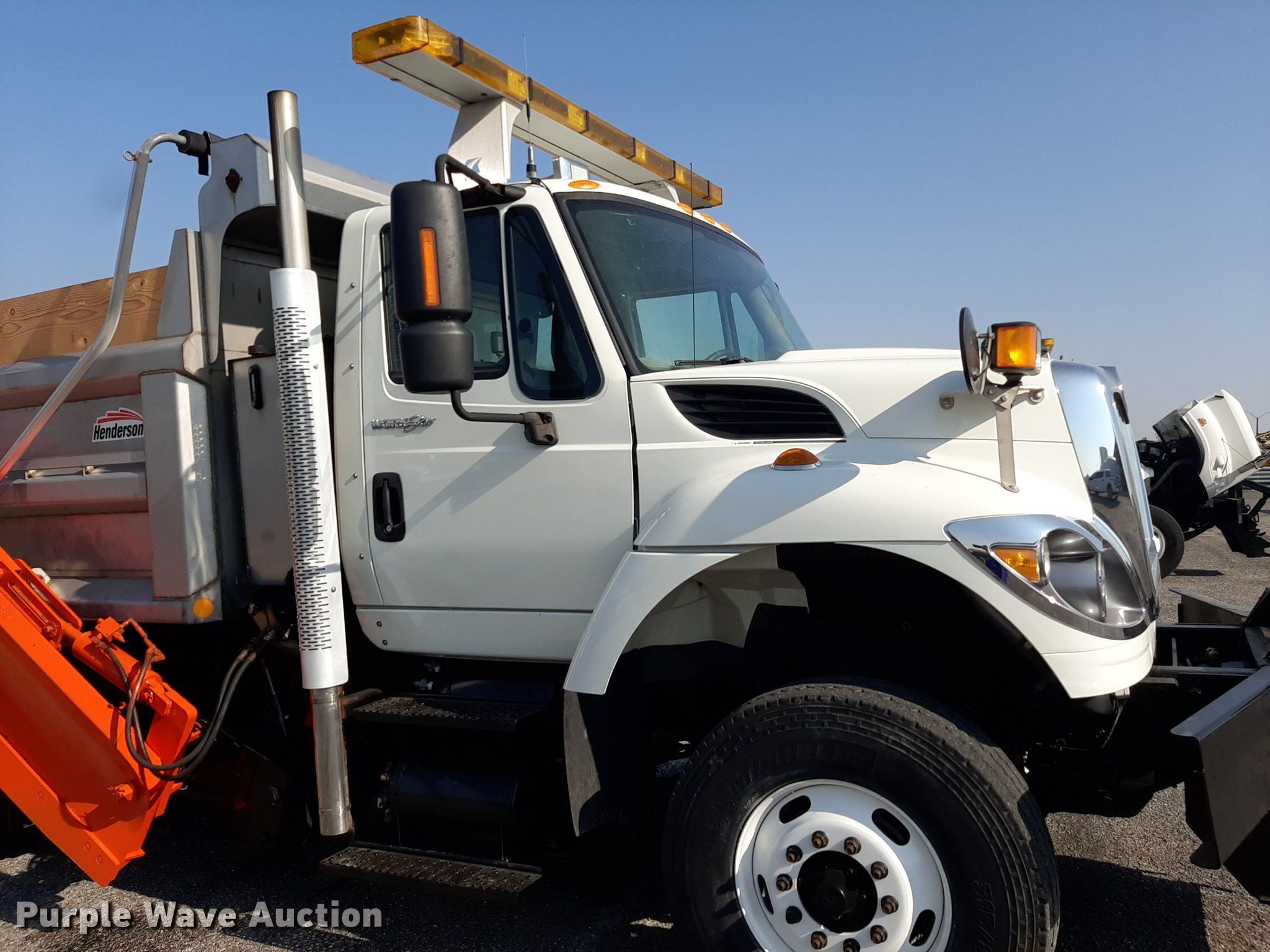 2014 International WorkStar 7500 dump truck. Miles: 85,258 on odometer, Hours: 4,154 on meter, VIN: 1HTWPAZT4EH767628. Engine International Maxxforce A350, Cylinders: 6, Fuel type: Diesel. Transmission Automatic. Chassis Axles: Tandem, Suspension: Spring over walking beam Dump valves, Brakes: Air, PTO, Front mount PTO, GVWR: 56,000 lbs FAWR: 16,000 lbs, IAWR: 20,000 lbs, RAWR: 20,000 lbs. Interior AC, Heat, Heated mirrors, Power windows, Cruise control. Features Dump bed Henderson , 14' L x 96" W, Side height: 42", Side board height: 11", Bed type: Aluminum, Roll tarp, Ram: Single , End gate: Air operated, Wing plow Width: 96". Tires Size: 315/80R22.5. Notes Wing plow hydraulic leak. Kansas title. Kansas Turnpike Authority. 9401 East Kellogg Drive. Wichita, KS 67207