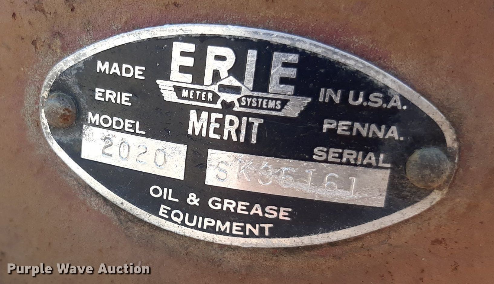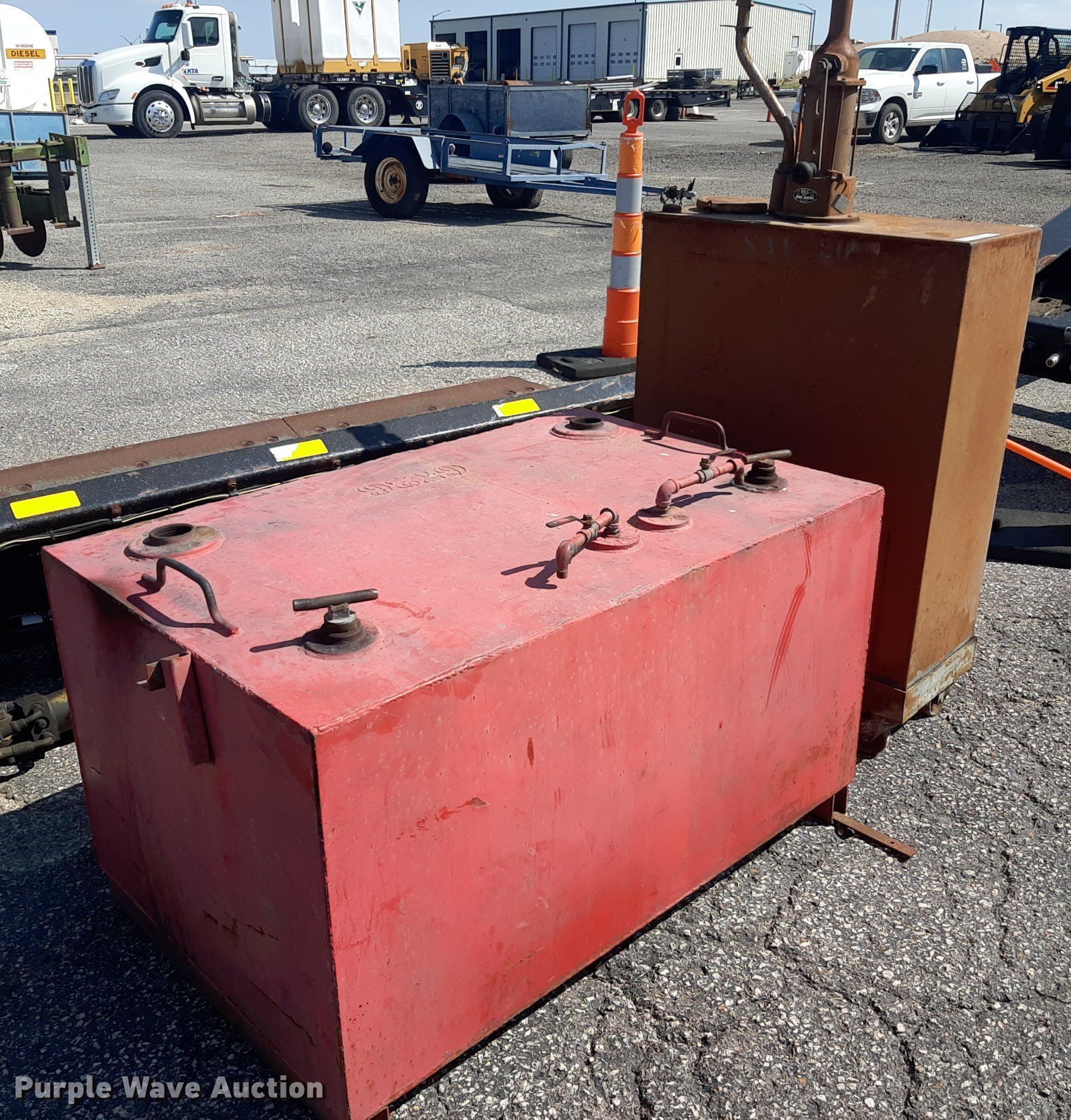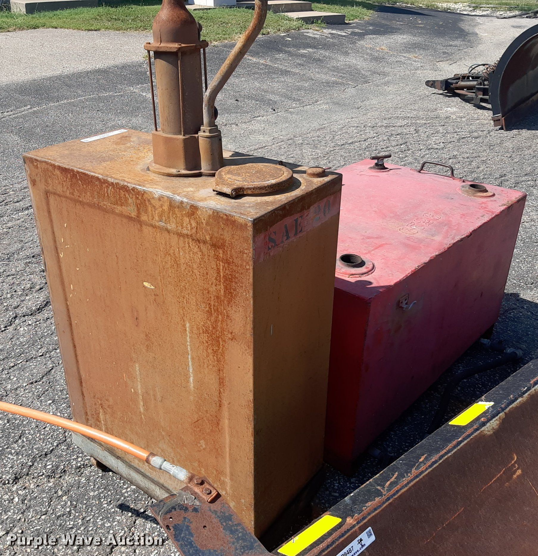 (2) fuel tanks. 48" L x 30" W x 28" H, 29" L x 13 1/2" W x 39" H Erie hand pump , Model: 2020, Serial Number: SK36161. Kansas Turnpike Authority. 9401 East Kellogg Drive. Wichita, KS 67207