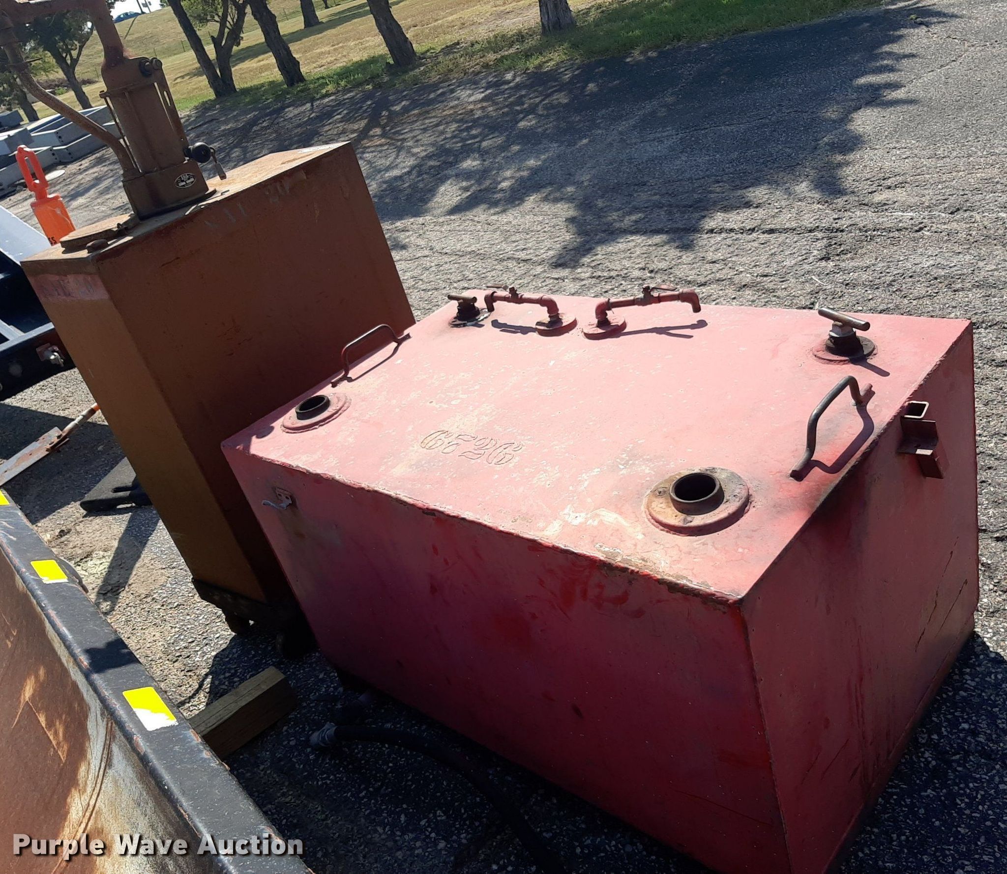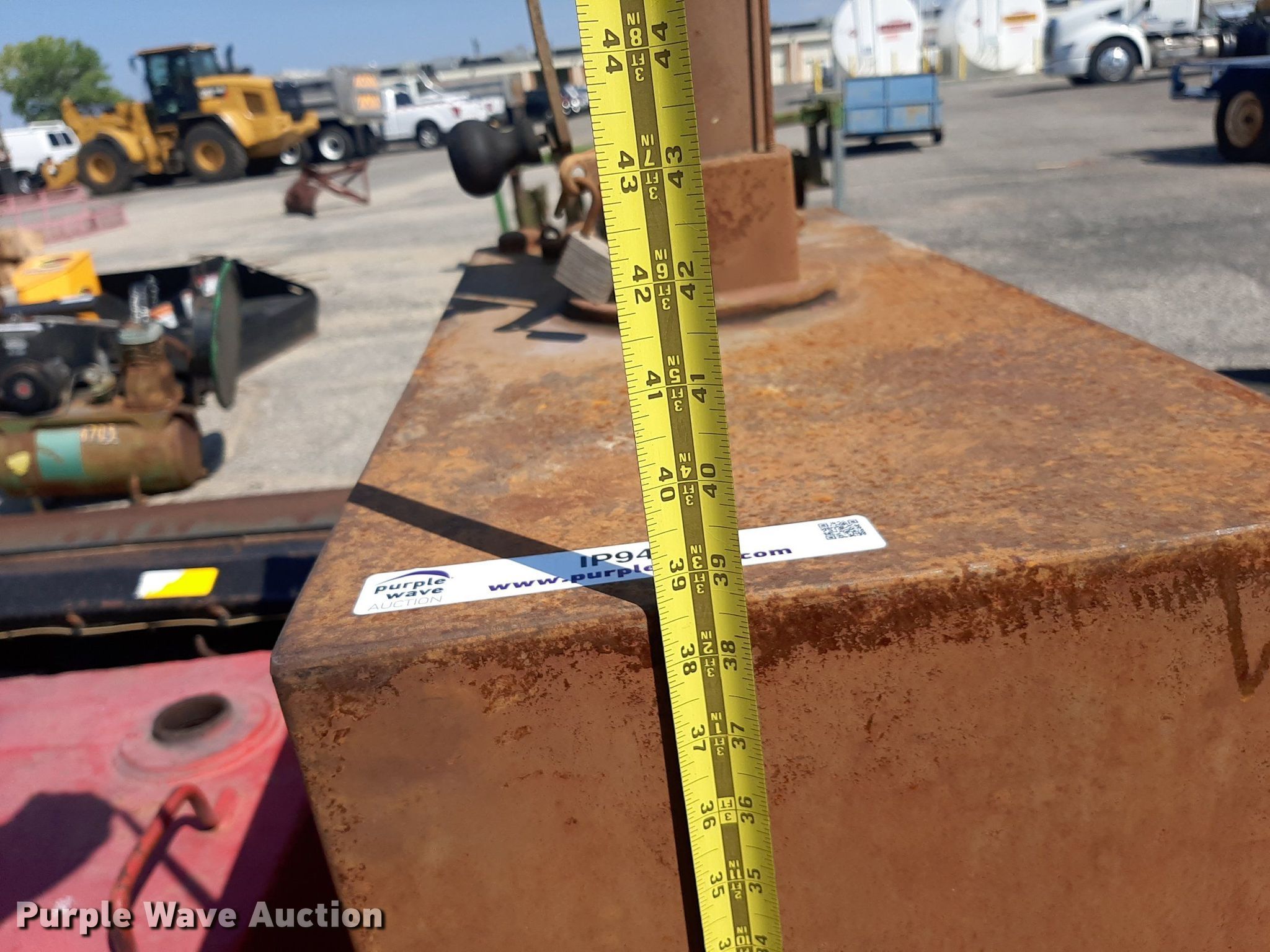 Purple Wave is selling a used Tanks in Kansas. This item is a (2) fuel tanks with the following: 48" L x 30" W x 28" H, 29" L x 13 1/2" W x 39" H, Erie hand pump, Model: 2020, Serial Number: SK36161