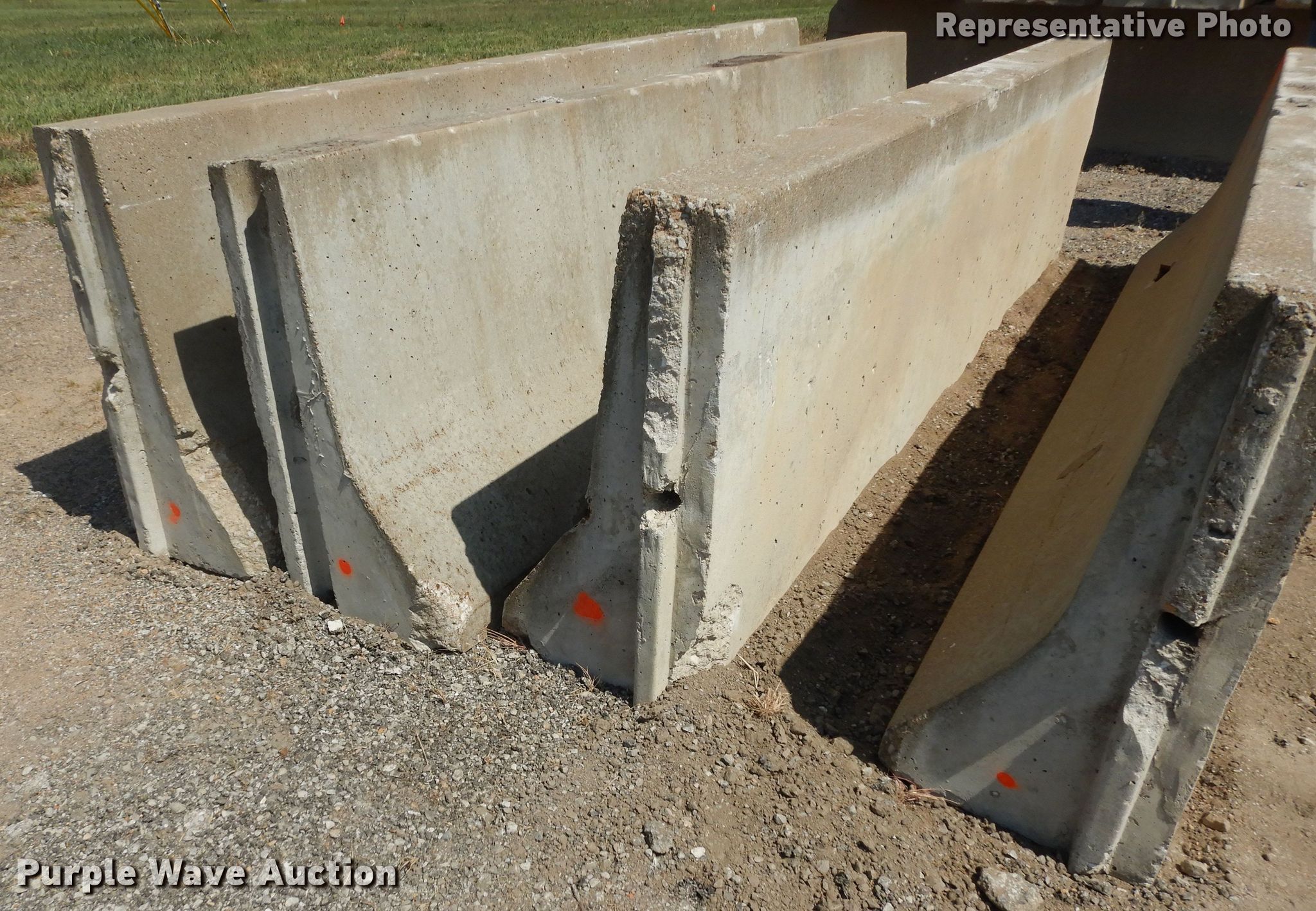 Purple Wave is selling a used Road Safety Equip. in Kansas. This item is a (8) 10' L concrete barriers end caps with the following: (8) 10' L concrete barriers end caps. Representative photo. Kansas Turnpike Authority. Lawrence, KS 66044