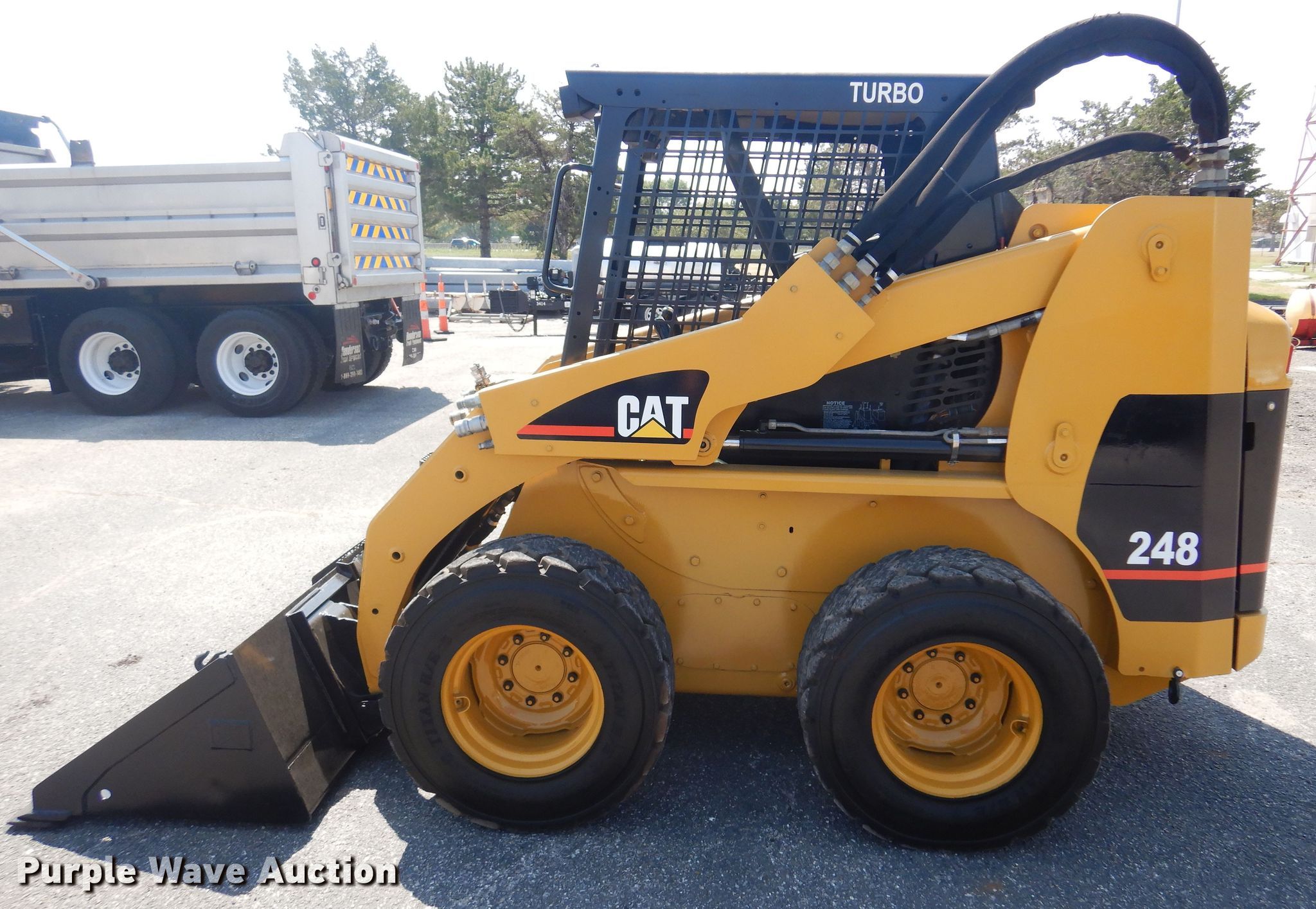 Purple Wave is selling a used Skid Steer Loader in Kansas. This item is a 2002 Caterpillar 248 skid steer loader with the following: Hours: 2,348 on meter, Serial: CAT00248H6LZ01381
