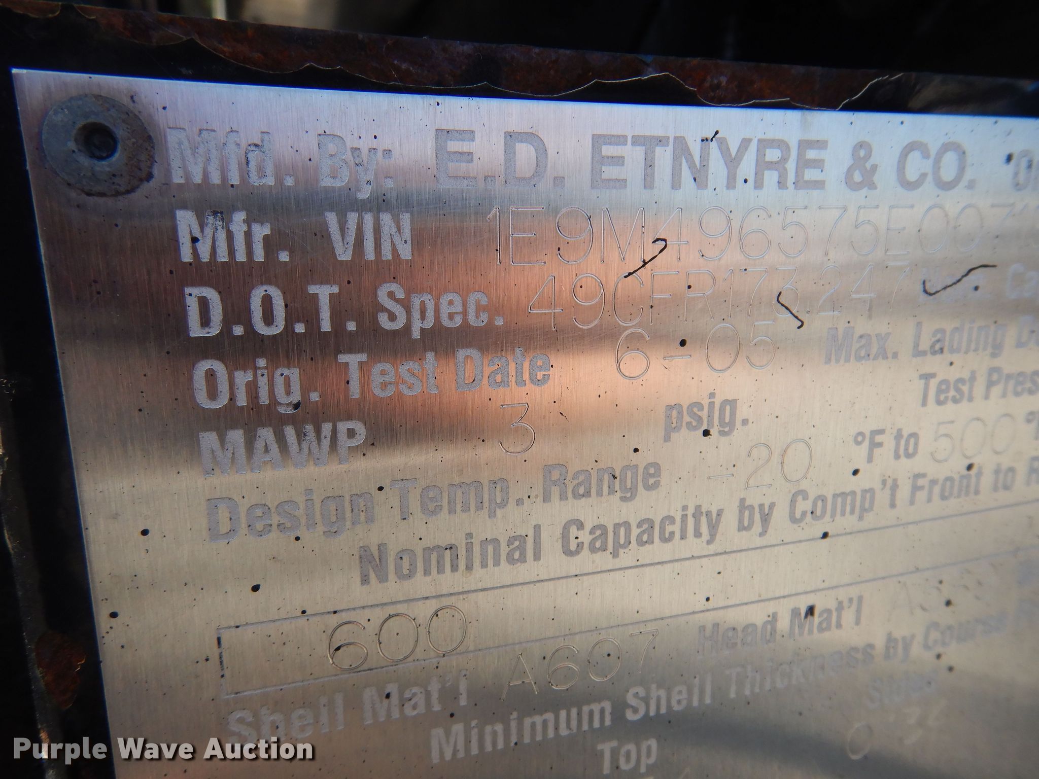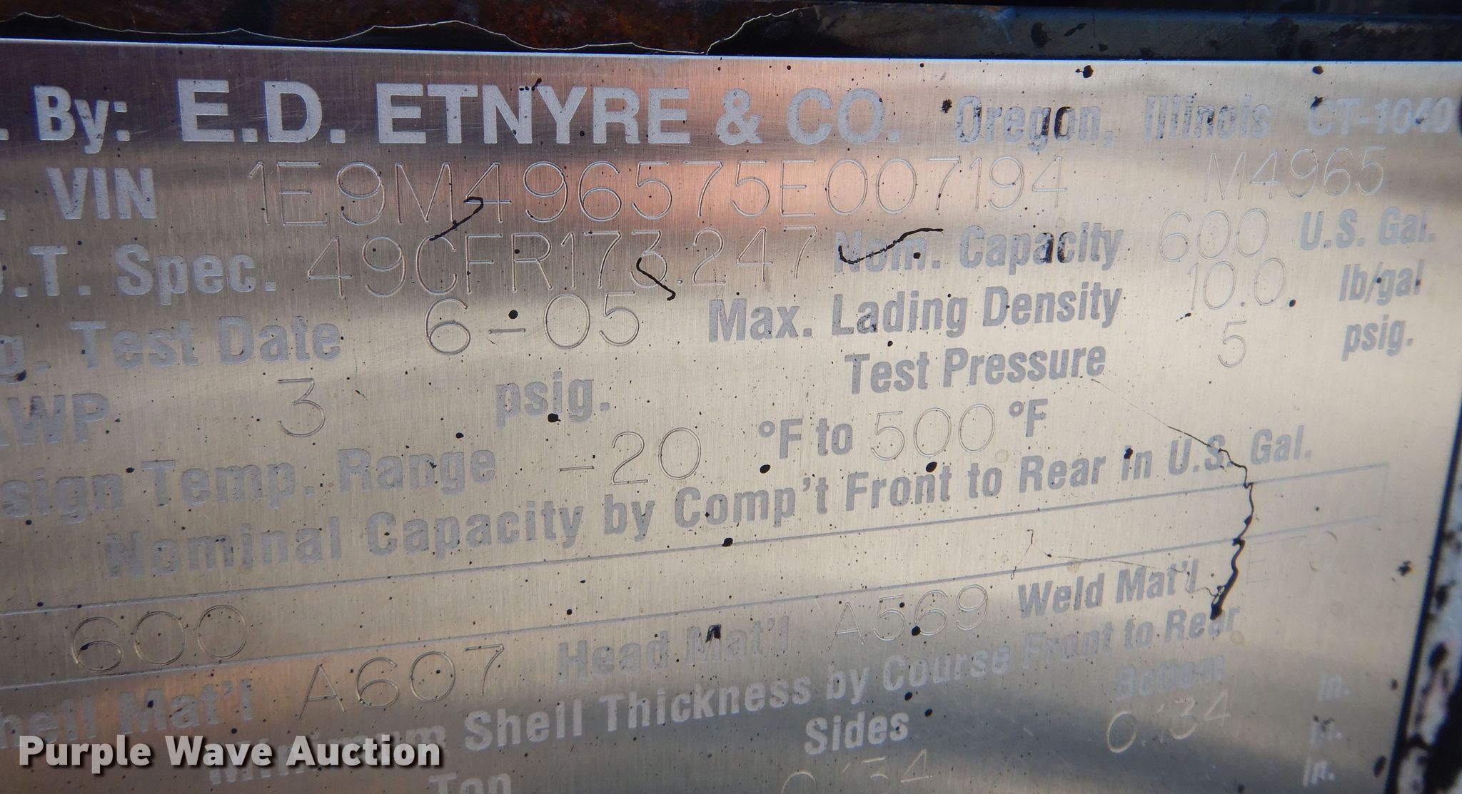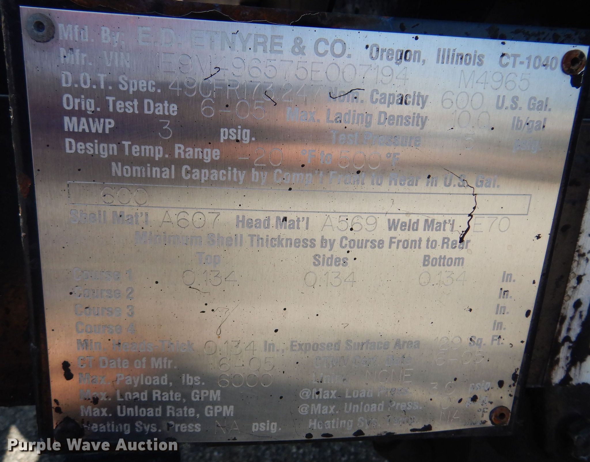 Purple Wave is selling a used Trailer Other in Kansas. This item is a 2005 Etnyre MU-6 oil distributor trailer with the following: VIN: 1E9M496575E007194