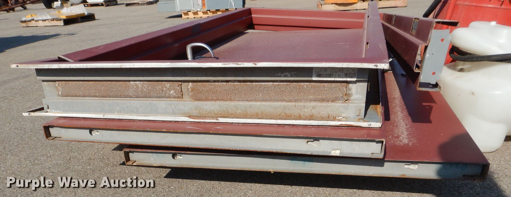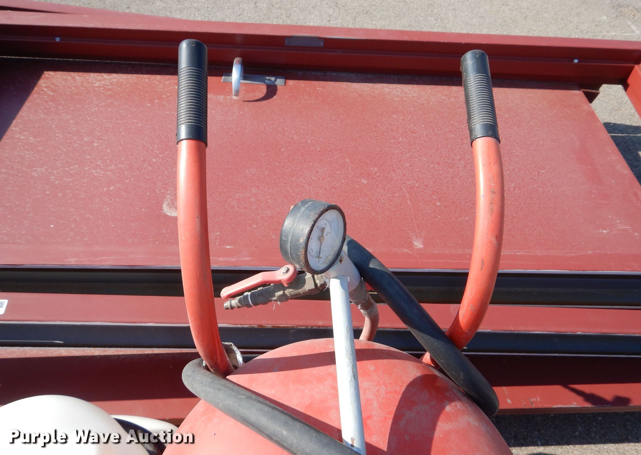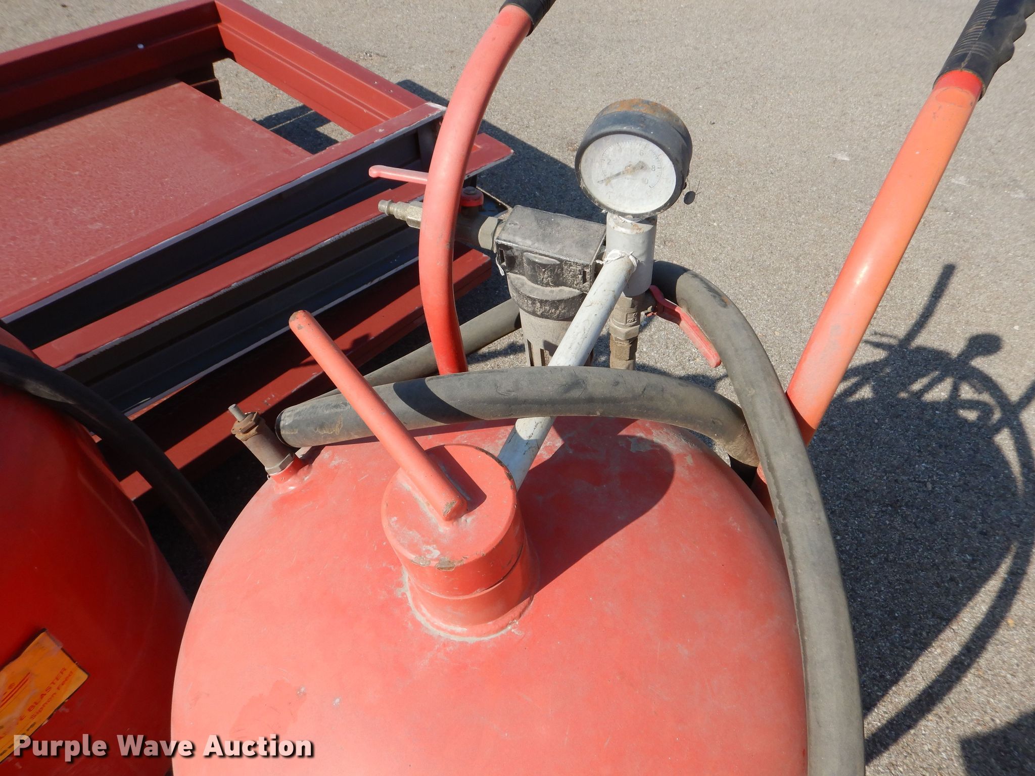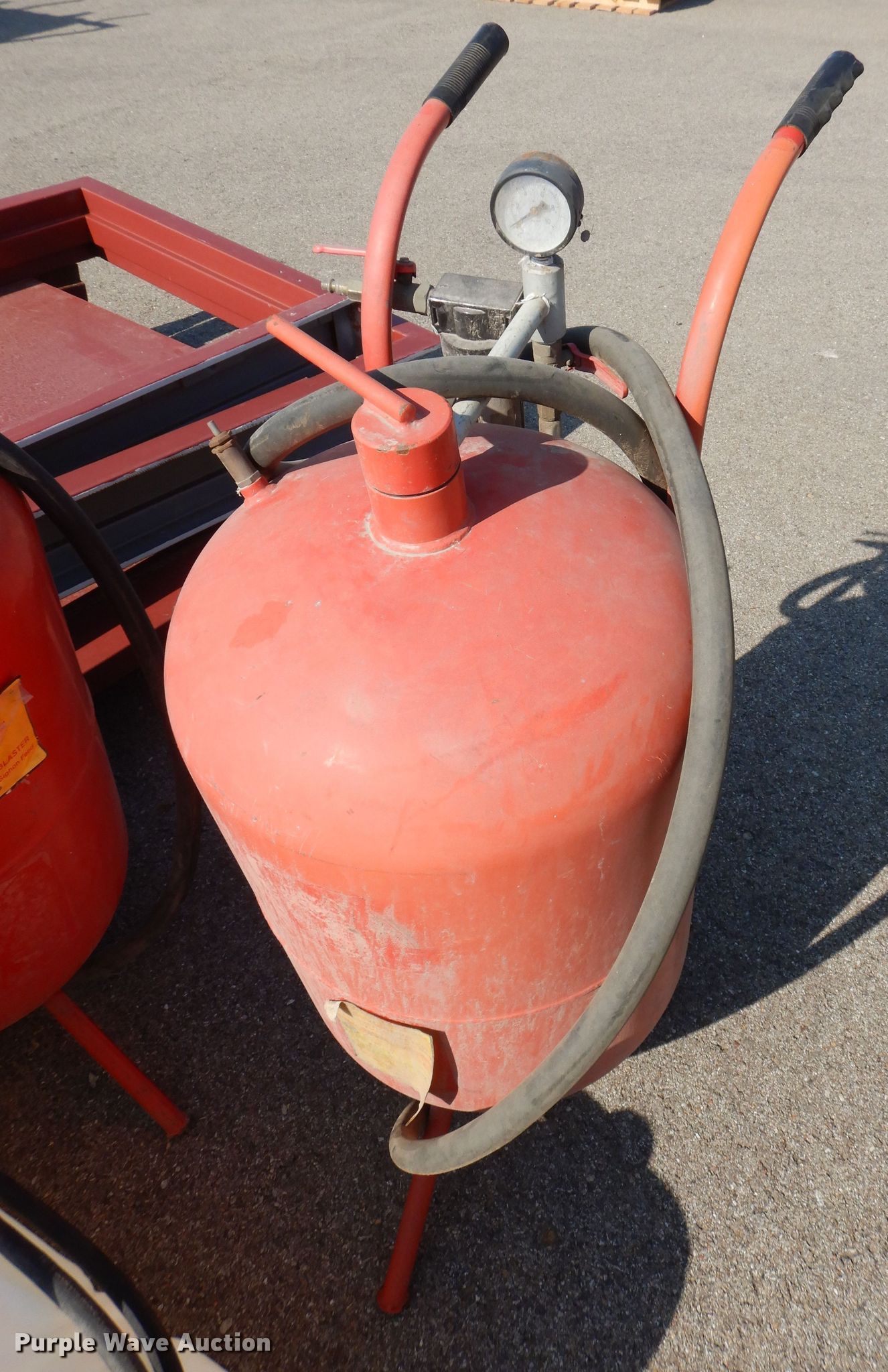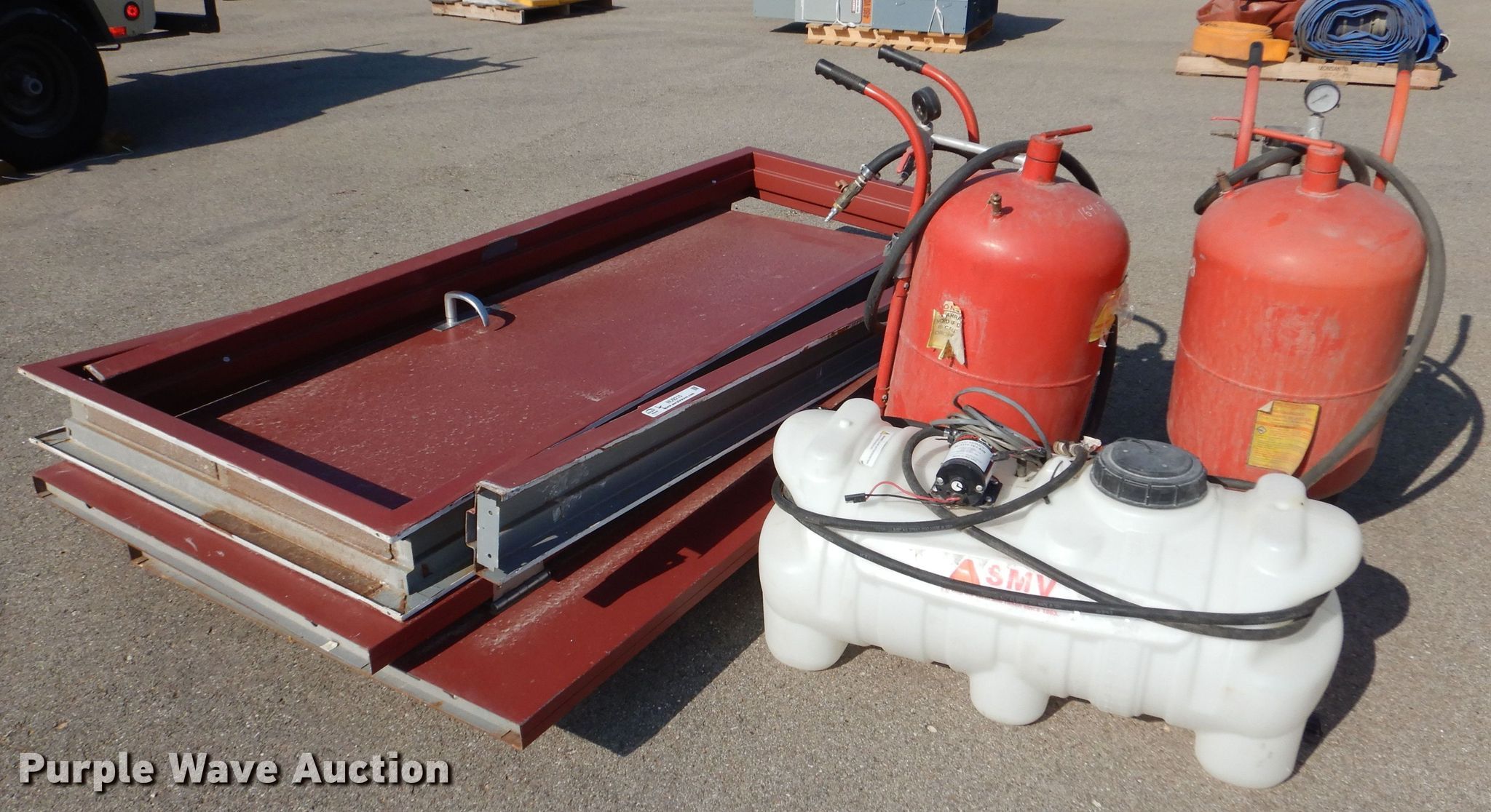 Purple Wave is selling a used Tools in Kansas. This item is a Tools with the following: (2) Central Pneumatic pressurized abrasive blasters, Capacity: 110 lbs, SMV Industries poly tank, Capacity: 25 gallons, Remco 3300 Series pump, GPM: 2.2, PSI: 60, Volts: 12, Hose, (2) steel doors with frames, Frame: 40" x 86" x 6"