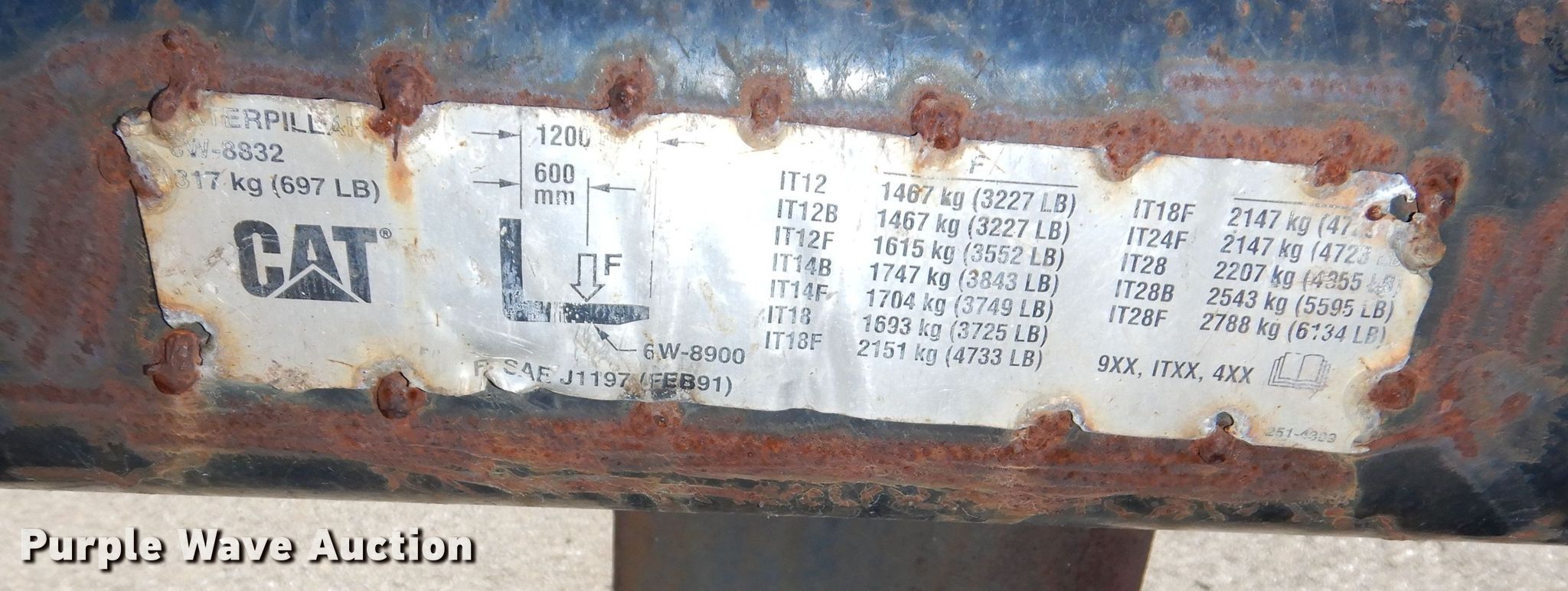 Purple Wave is selling a used Wheel Loader Attach. in Kansas. This item is a Caterpillar 60"L forks with the following: Capacity: 1,200 lbs