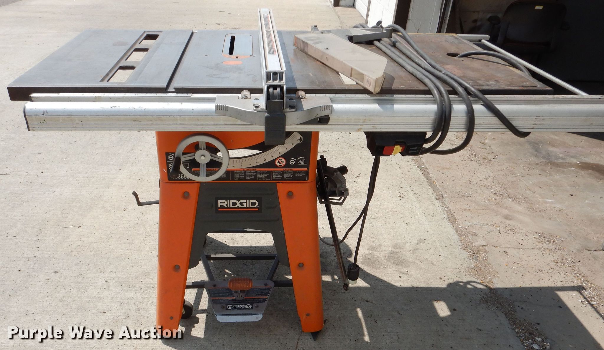 Purple Wave is selling a used Tools in Kansas. This item is a Ridgid TS360 table saw with the following: Single phase, 10" blade capacity, Guide, Guard, Serial: P03472164