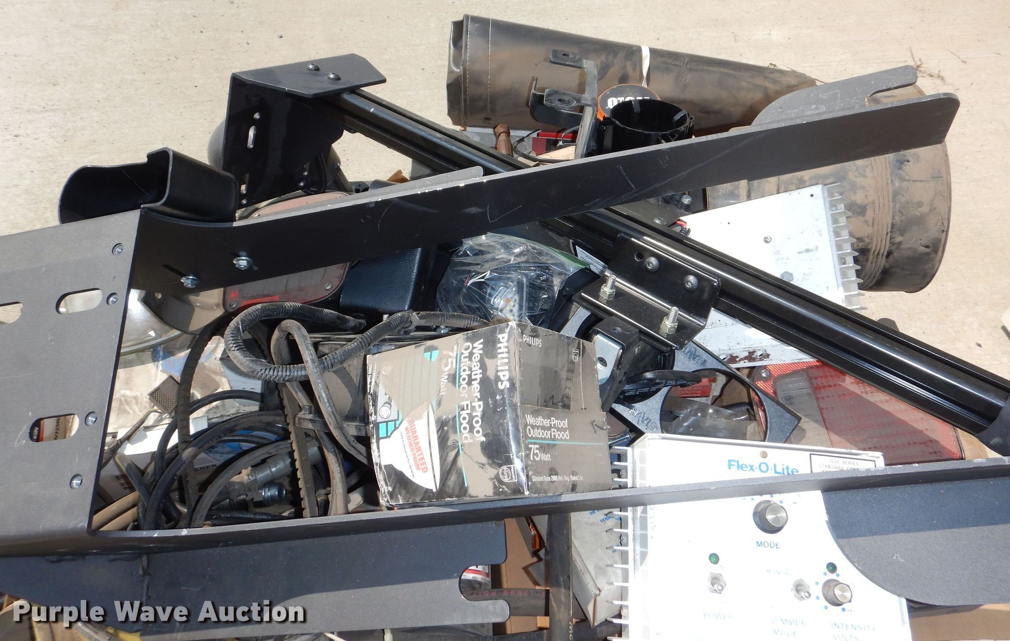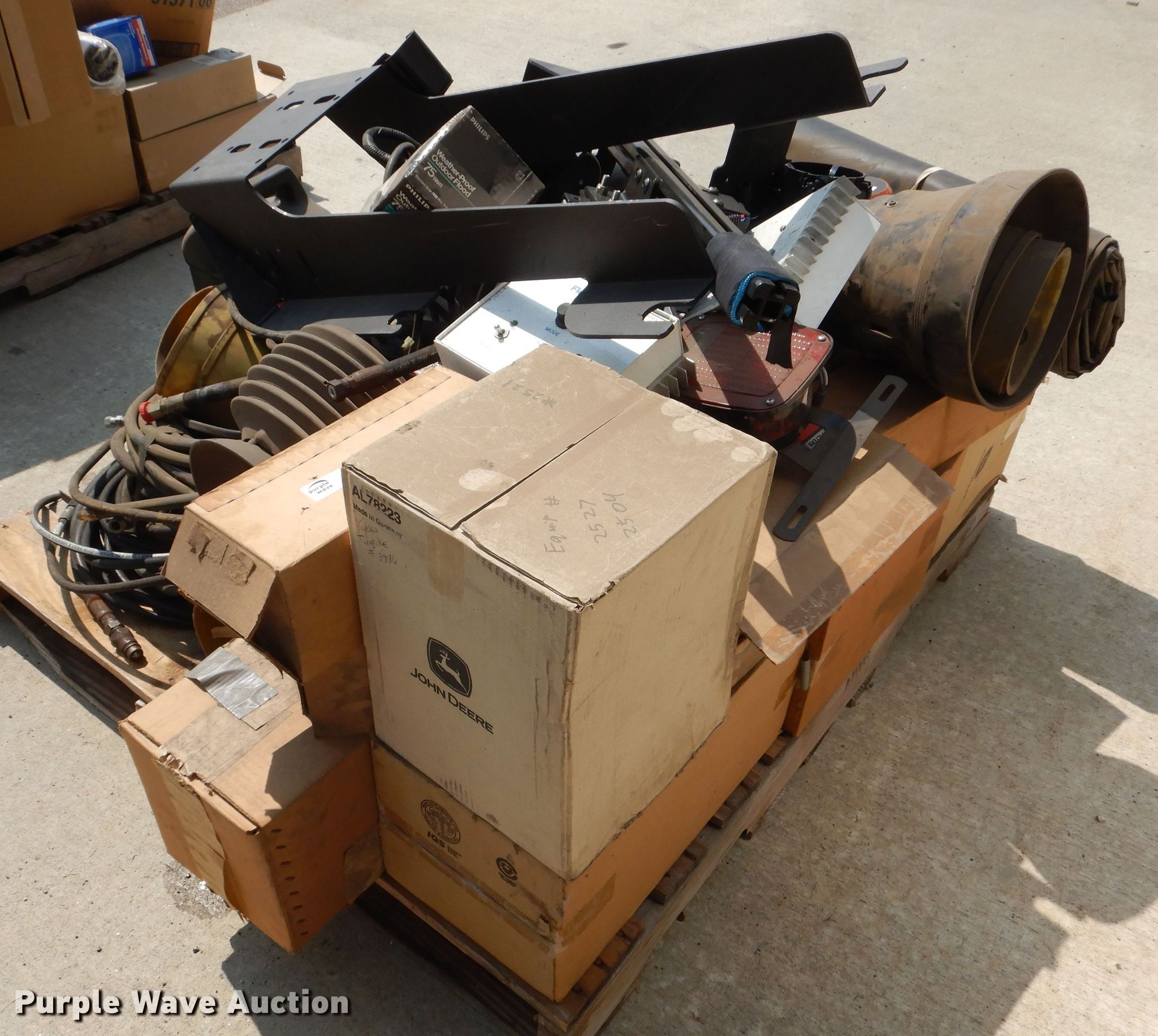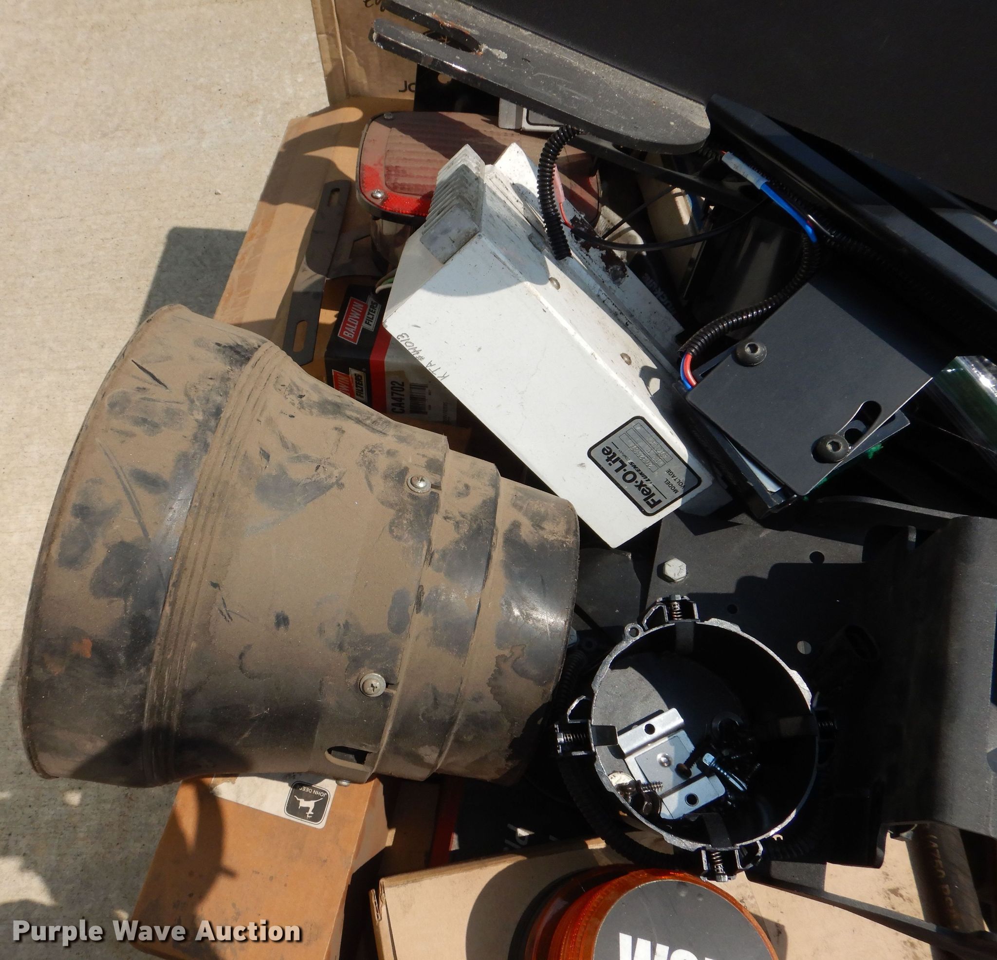 Purple Wave is selling a used Tools in Kansas. This item is a Tools with the following: Hoses, Air filter, Light controller, Gun rack, Siren, Four-ways, Tractor parts, Oil filters and more
