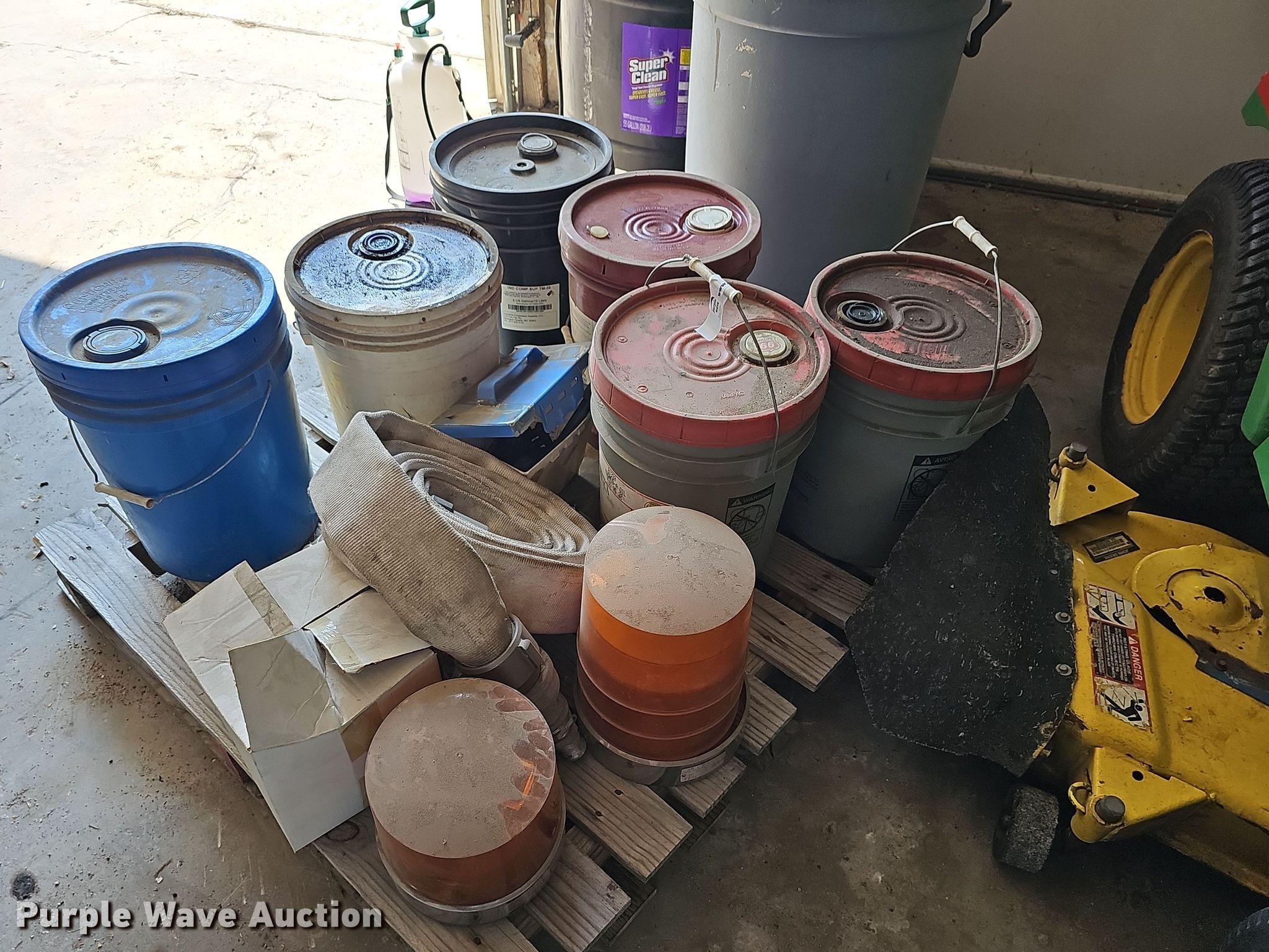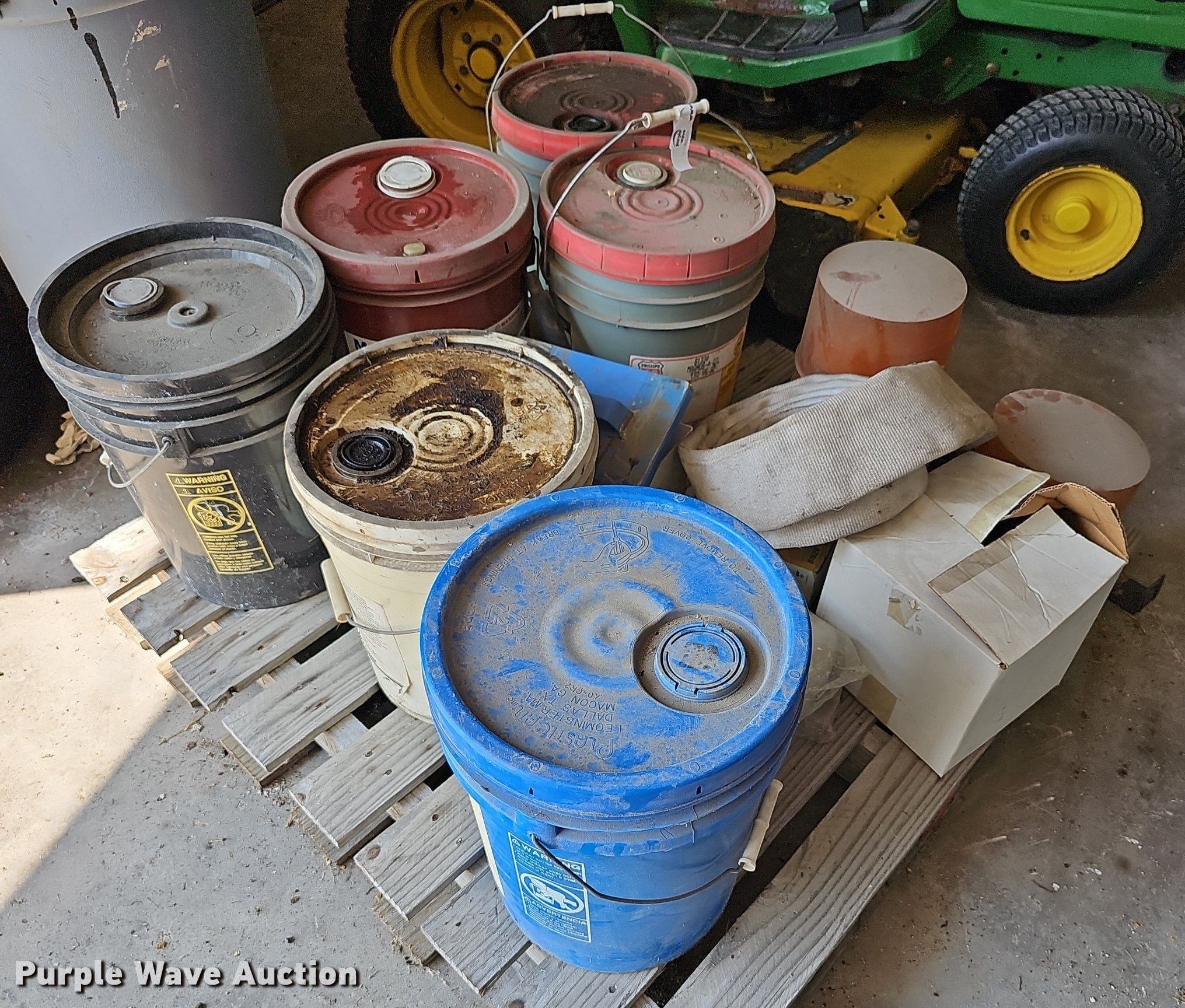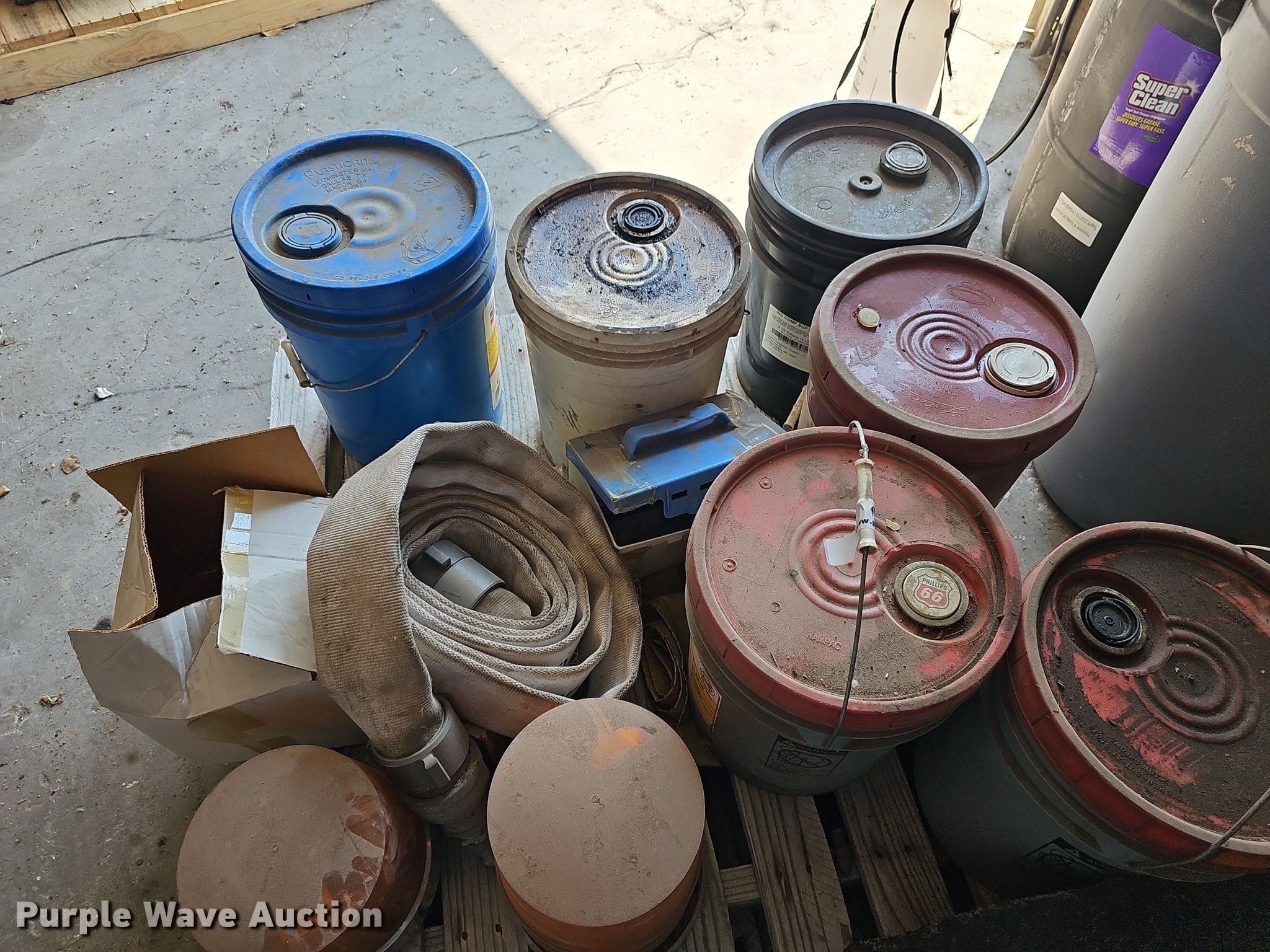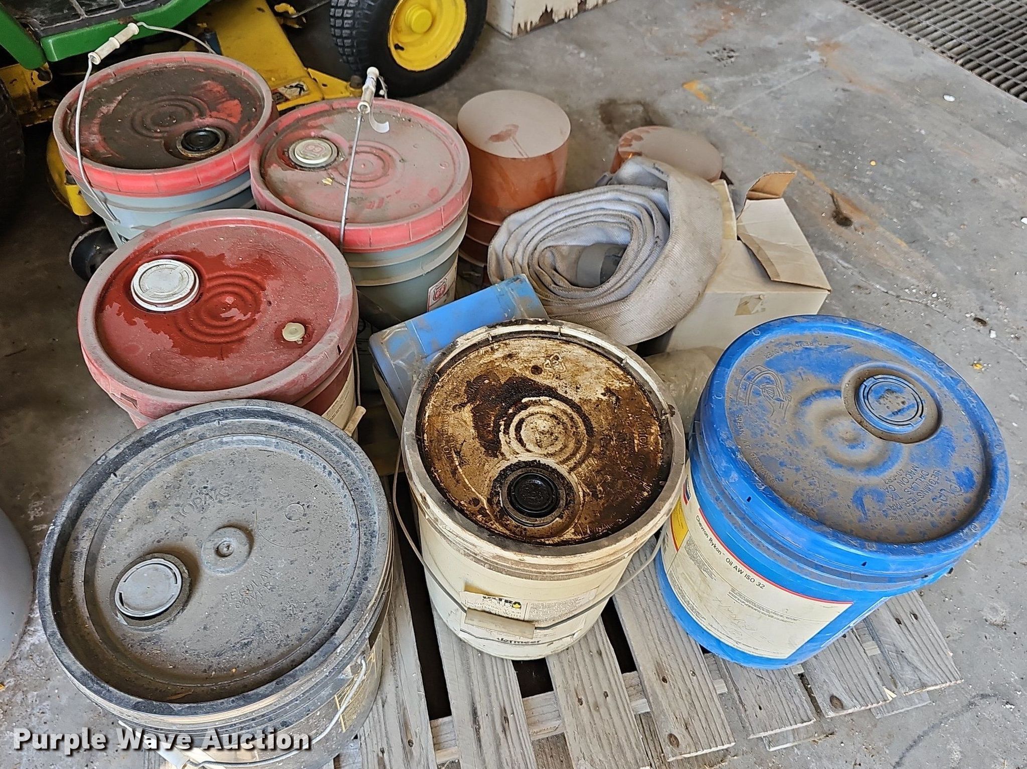 Purple Wave is selling a used Tools in Kansas. This item is a Tools with the following: (6) five gallon buckets of oils, Hose, Strobe lenses