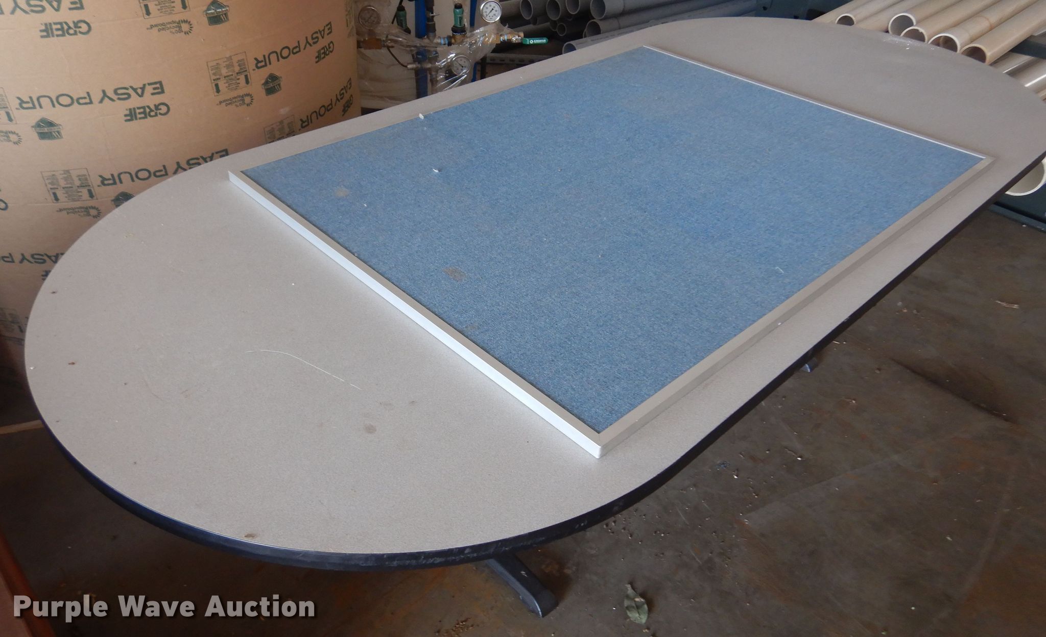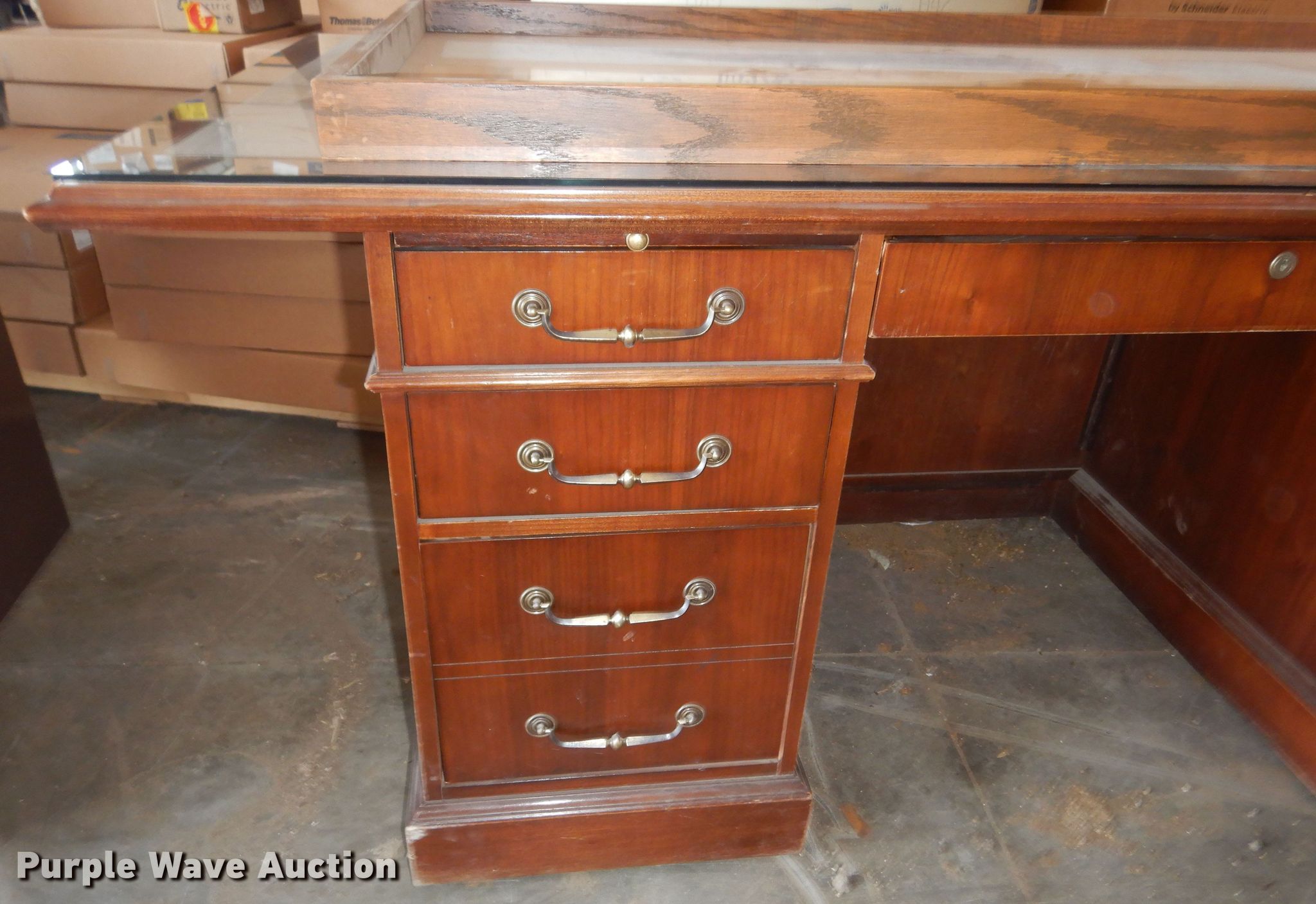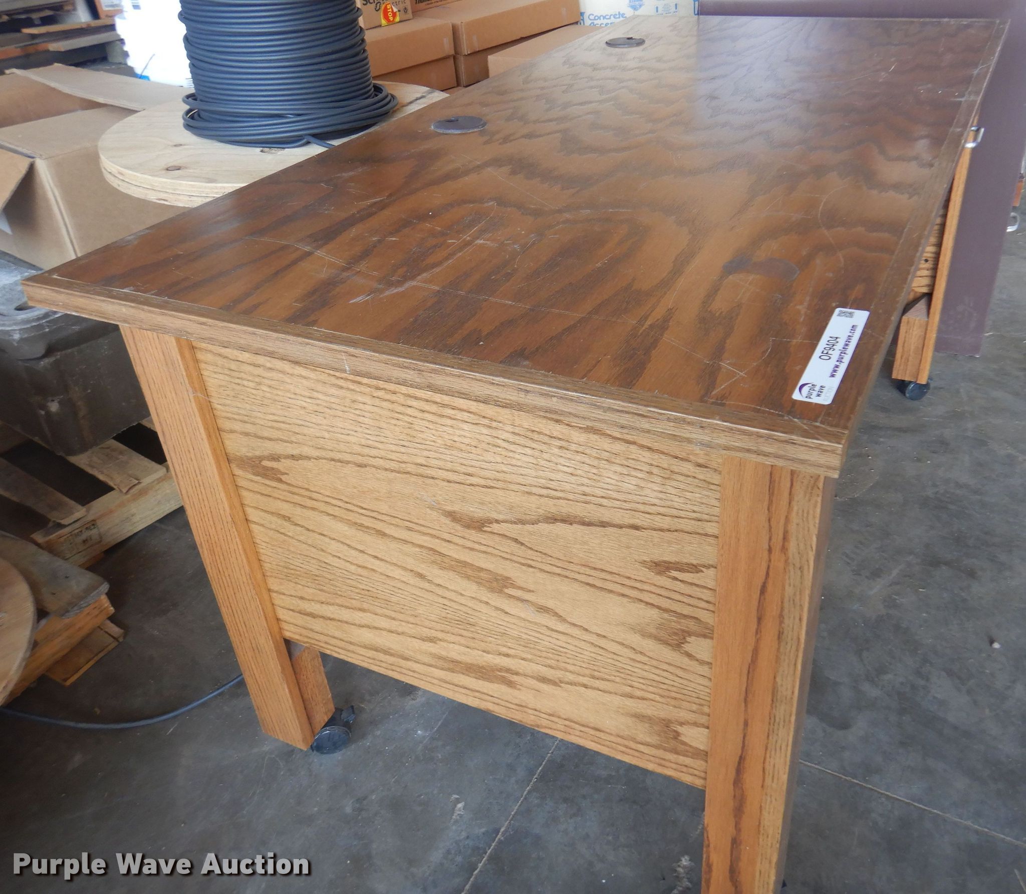Purple Wave is selling a used Furniture in Kansas. This item is a Furniture with the following: (2) desks, File cabinet, Table, Bulletin board