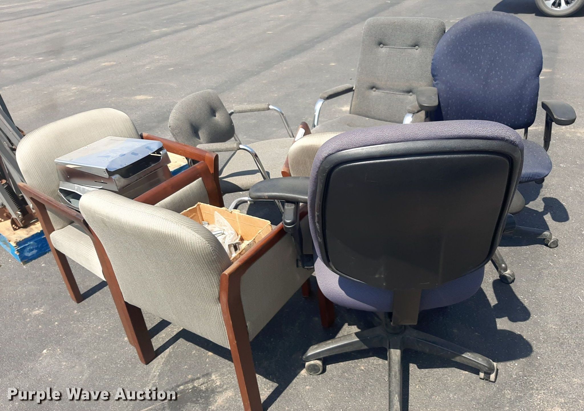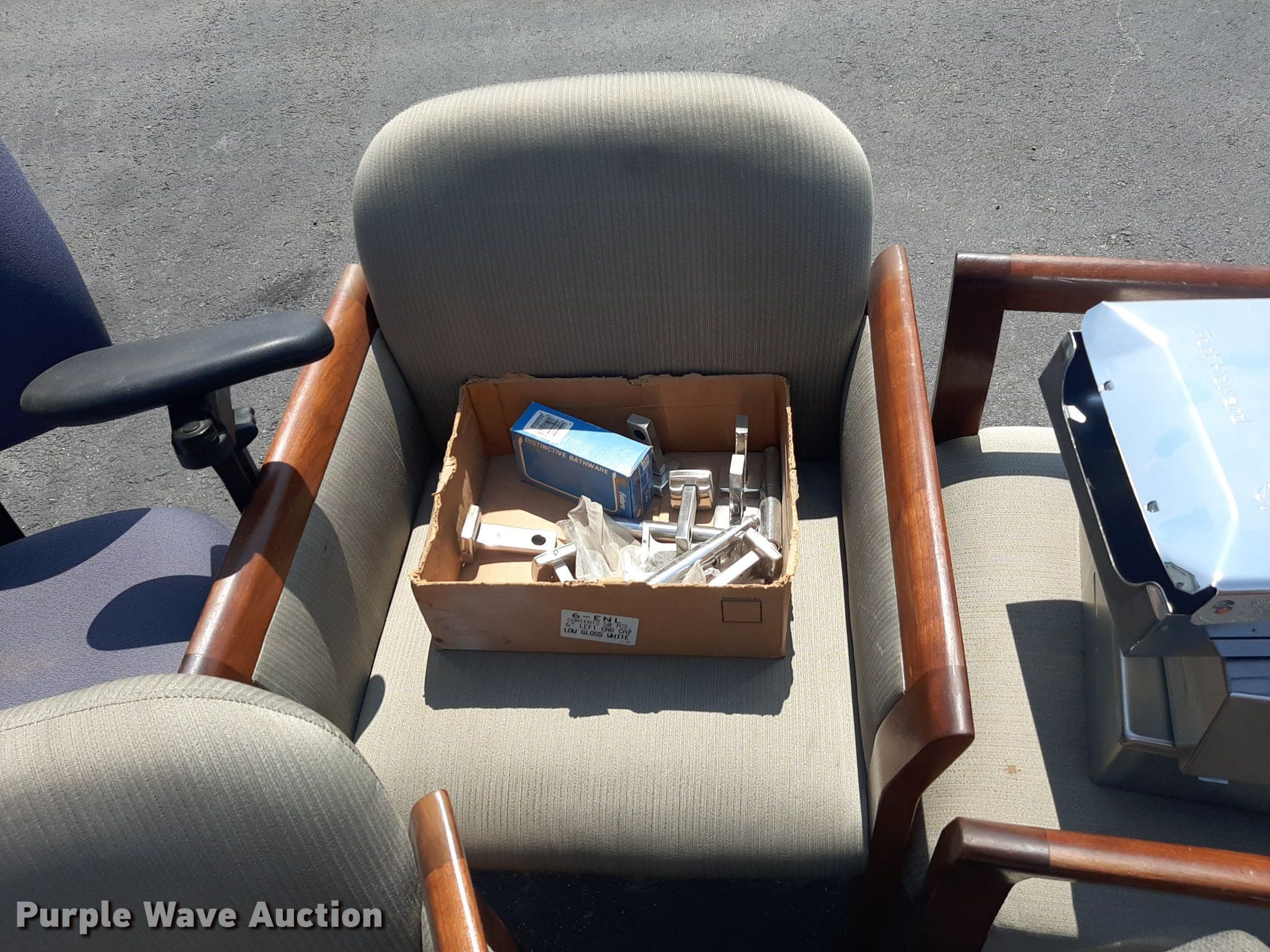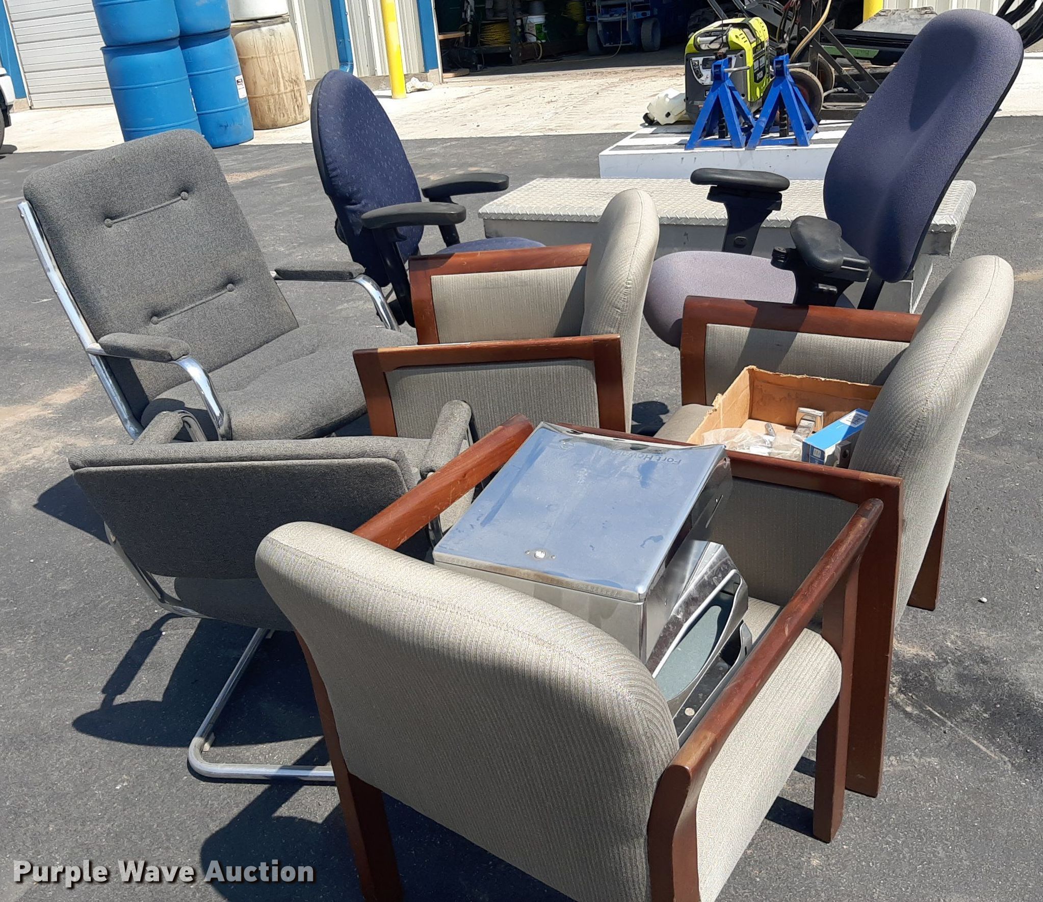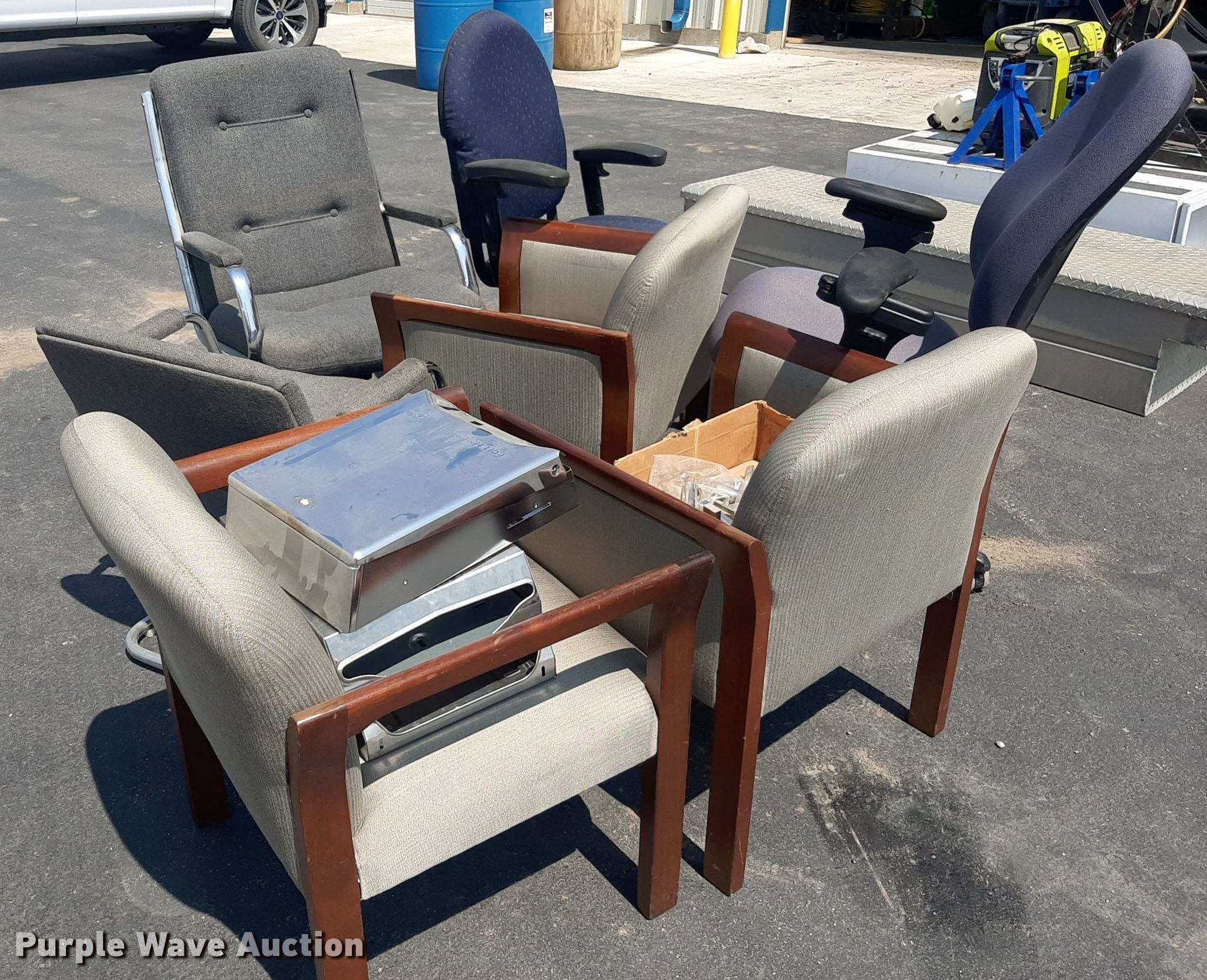 Purple Wave is selling a used Office Supplies and Equip. in Kansas. This item is a Office supplies and equipment with the following: (7) chairs, (3) paper towel dispensers, Toilet paper holders