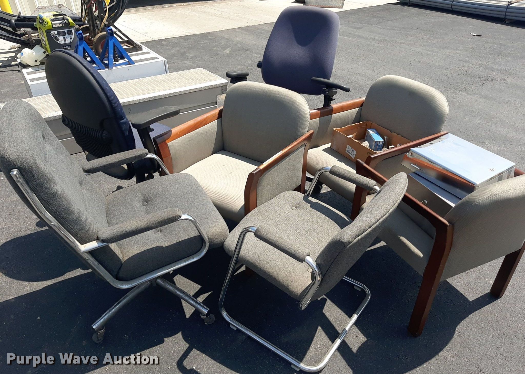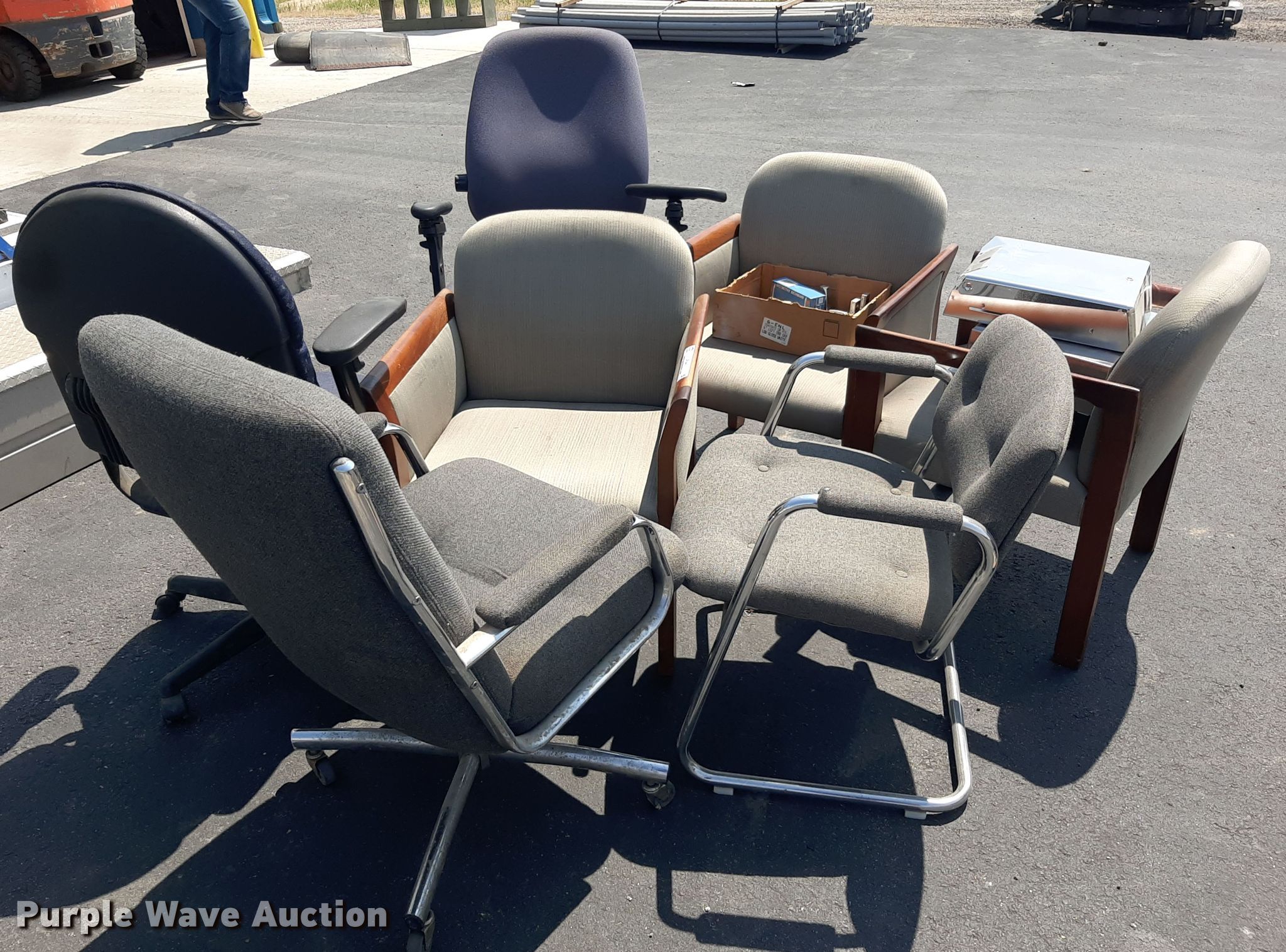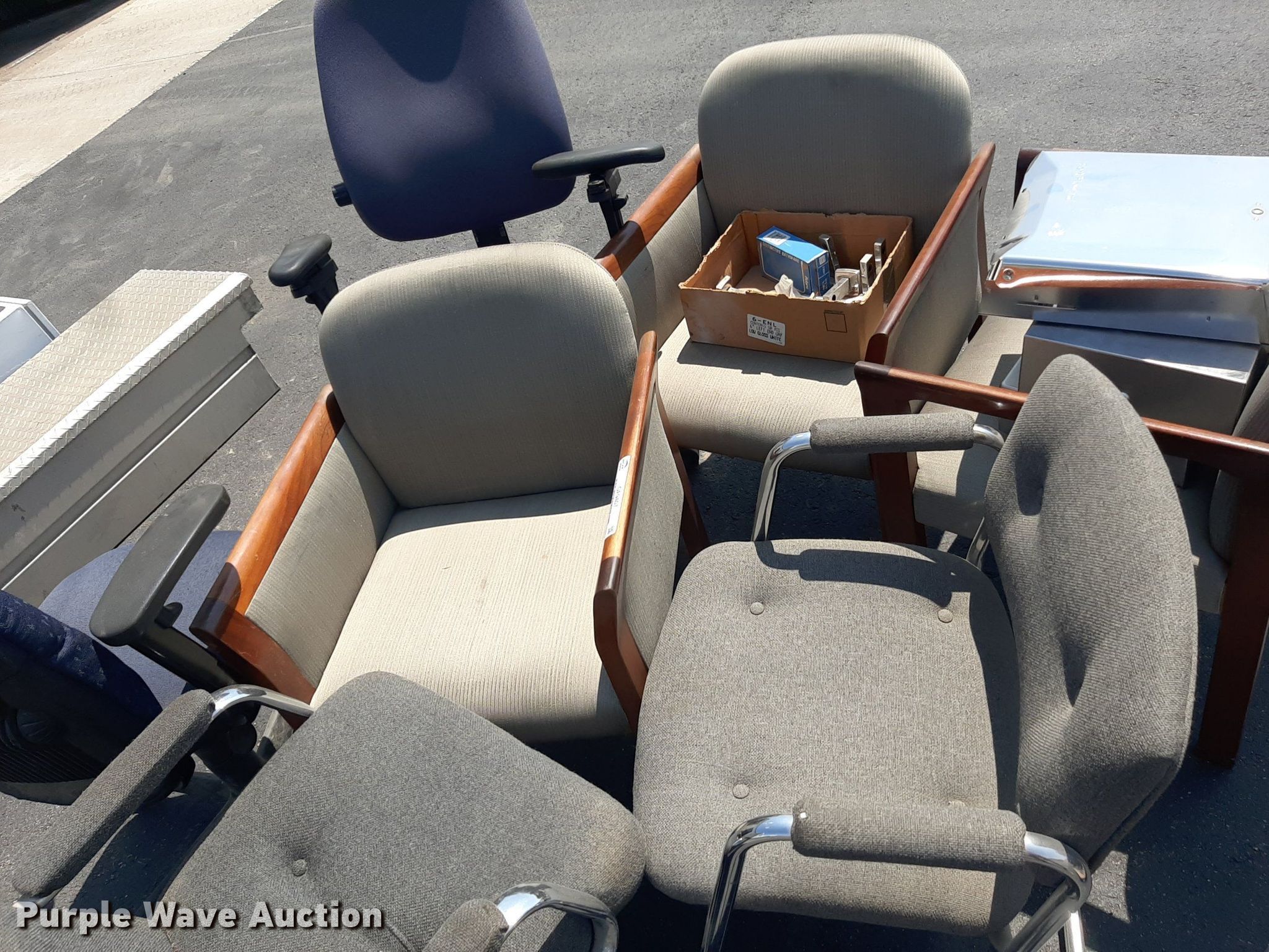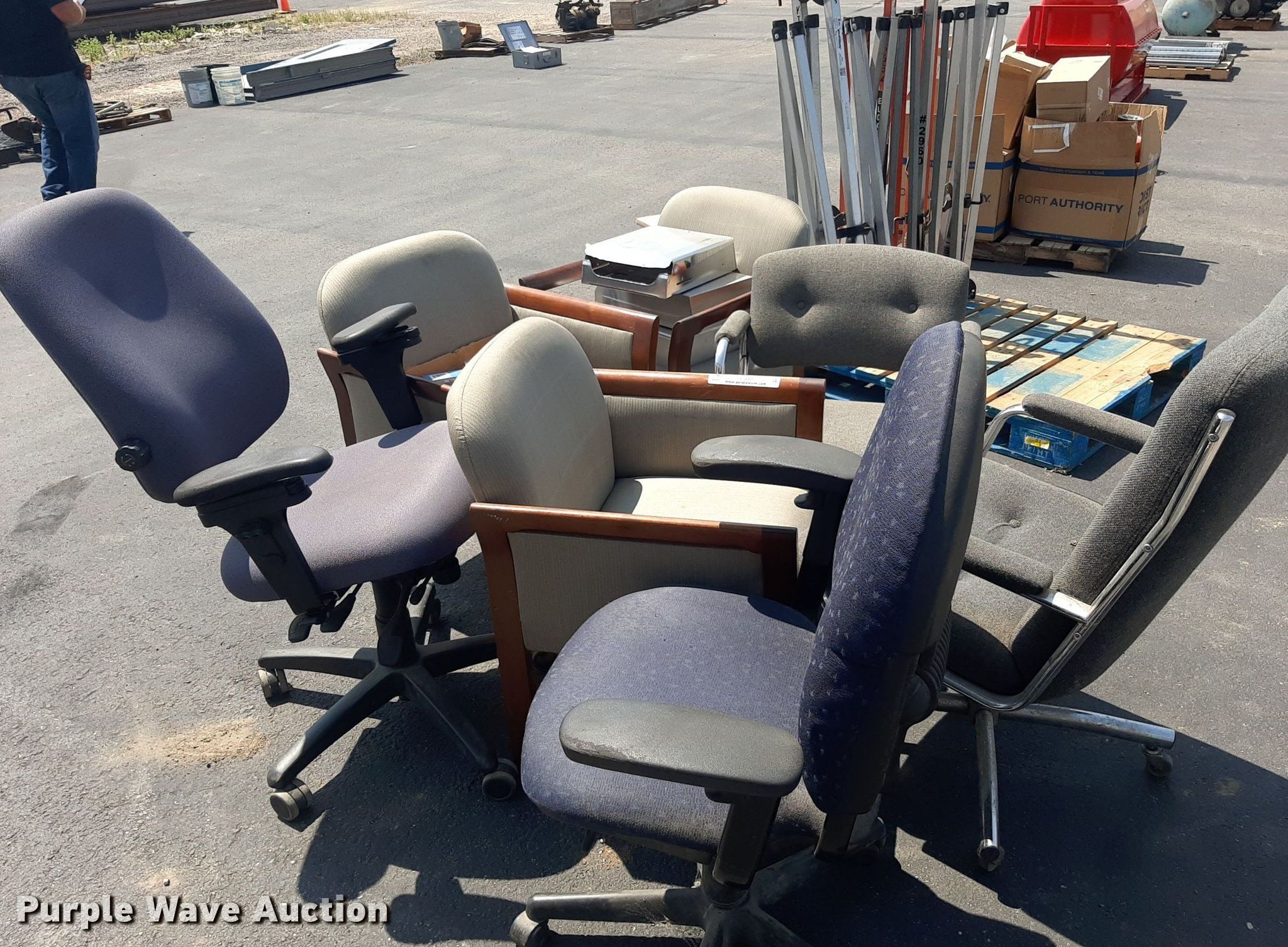 Purple Wave is selling a used Office Supplies and Equip. in Kansas. This item is a Office supplies and equipment with the following: (7) chairs, (3) paper towel dispensers, Toilet paper holders