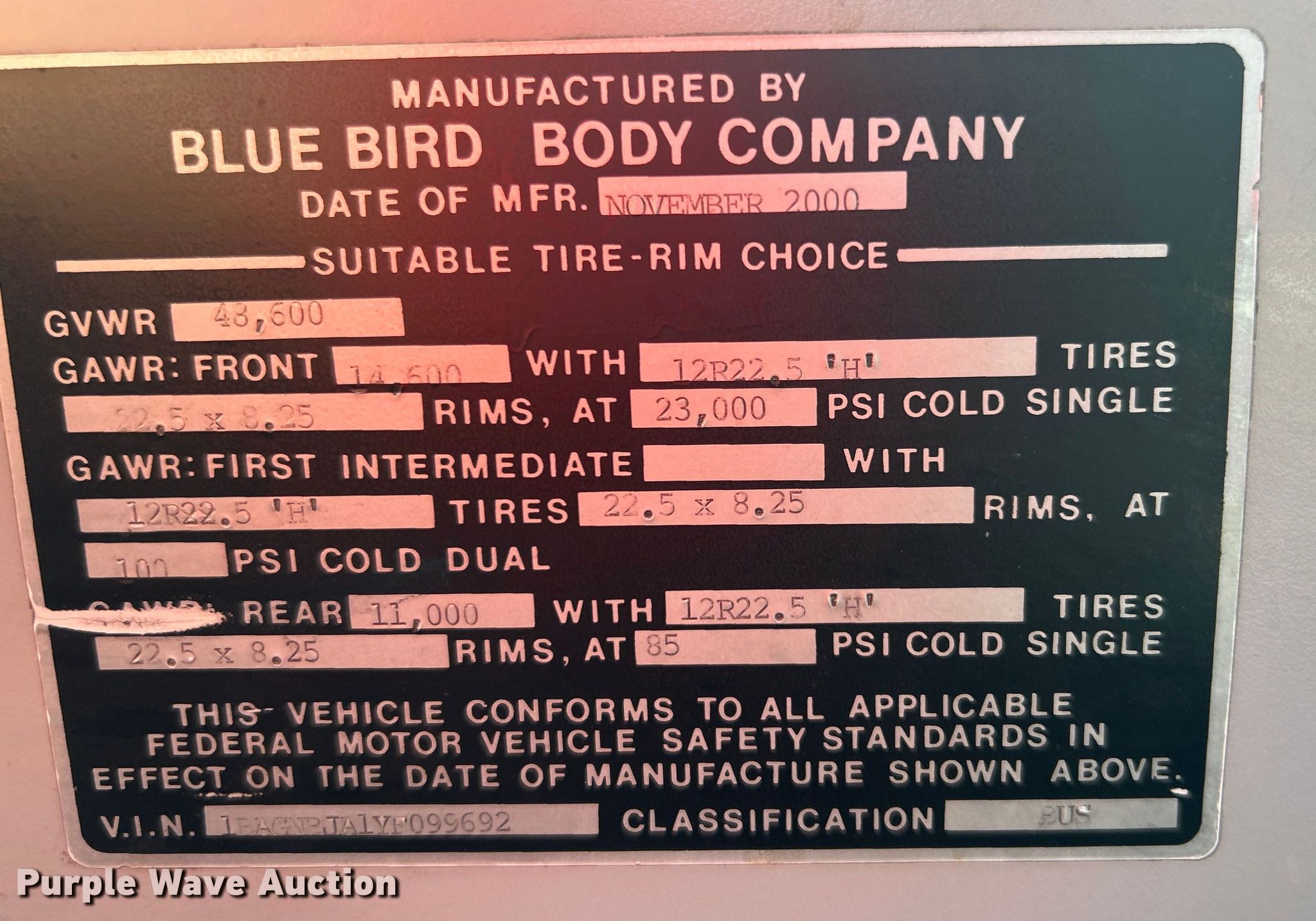- VIN: 1BAGNBJA1YF099692