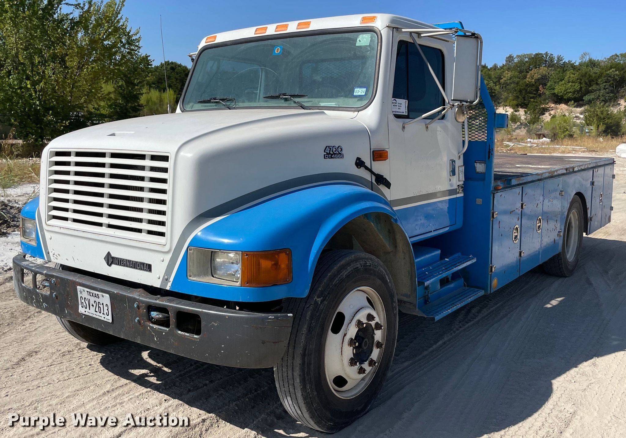 2001 International 4700 flatbed truck. Miles: 546,758 on odometer, VIN: 1HTSCAAM31H342796. Engine International DT466E, Displacement: 7.6L, Cylinders: 6, Fuel type: Diesel. Transmission International 6 Plus, Manual, Speed: 7. Chassis Axles: Single, Suspension: Spring, Brakes: Hydraulic. Interior AC, Heat, Cruise control, Brake controller. Features Flatbed 15' x 8' W. Tires Front: 9R22.5, Rear: 255/70R22.5. Texas title. Title distribution may be delayed up to 30 days from verification of funds. Wilbert Funeral Services. 611 Jealouse Way. Cedar Hill, TX 75104