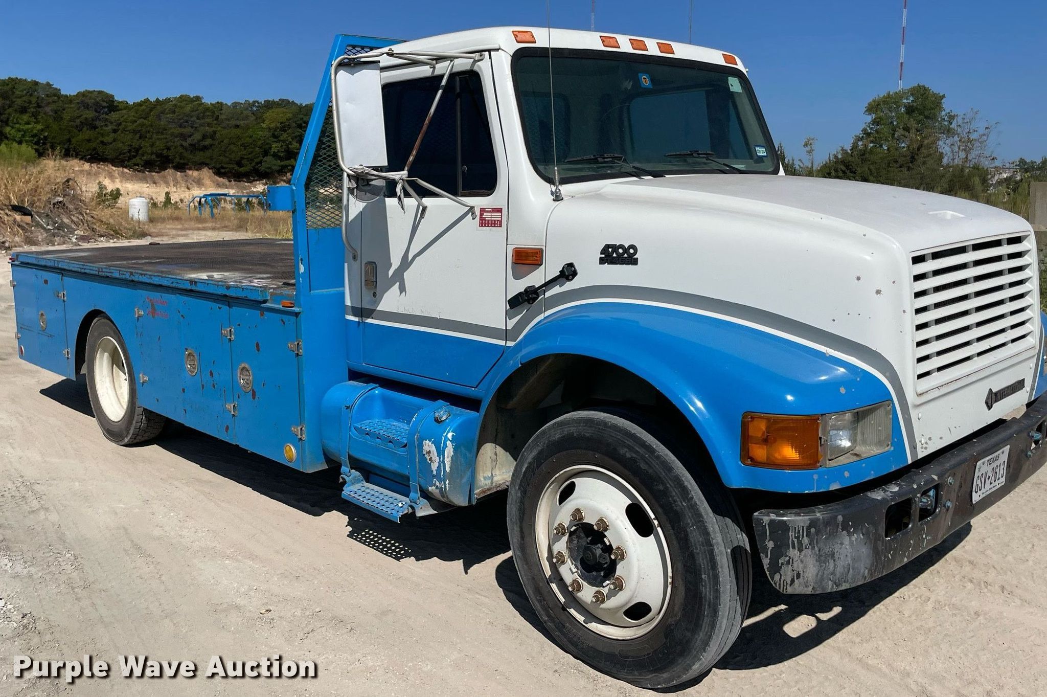 Purple Wave is selling a used Flat Bed Truck in Texas. This item is a 2001 International 4700 flatbed truck with the following: Miles: 546,758 on odometer, VIN: 1HTSCAAM31H342796