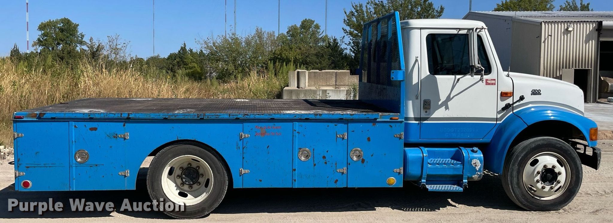 This 2001 International 4700 flatbed truck will sell to the highest bidder regardless of price.