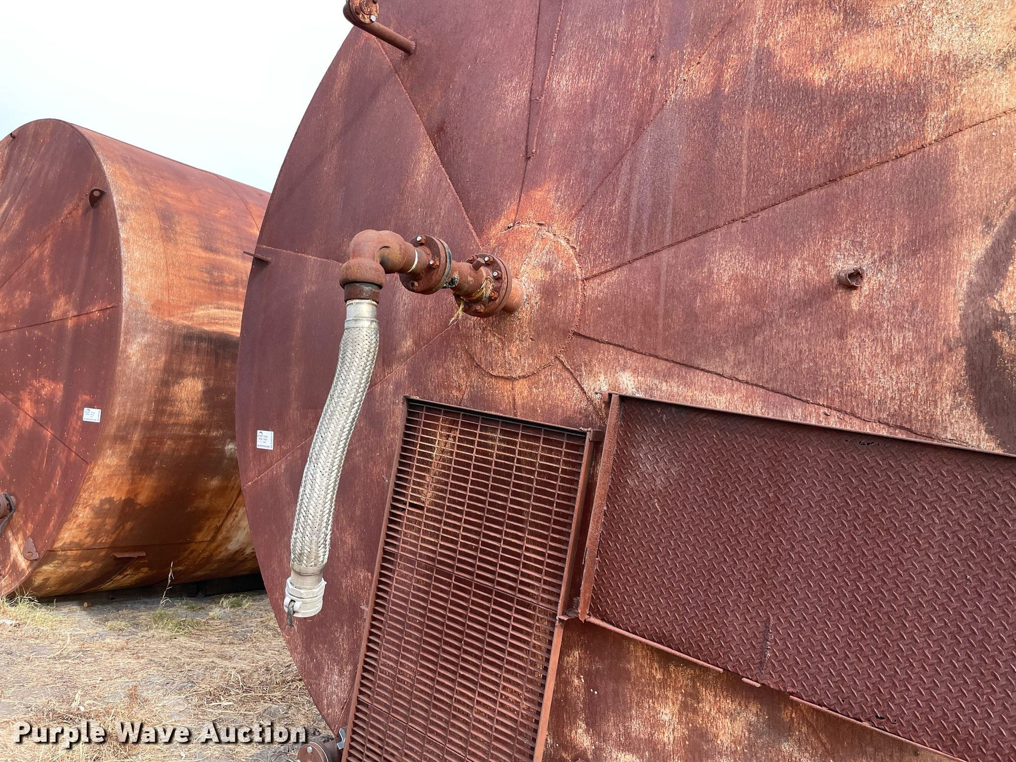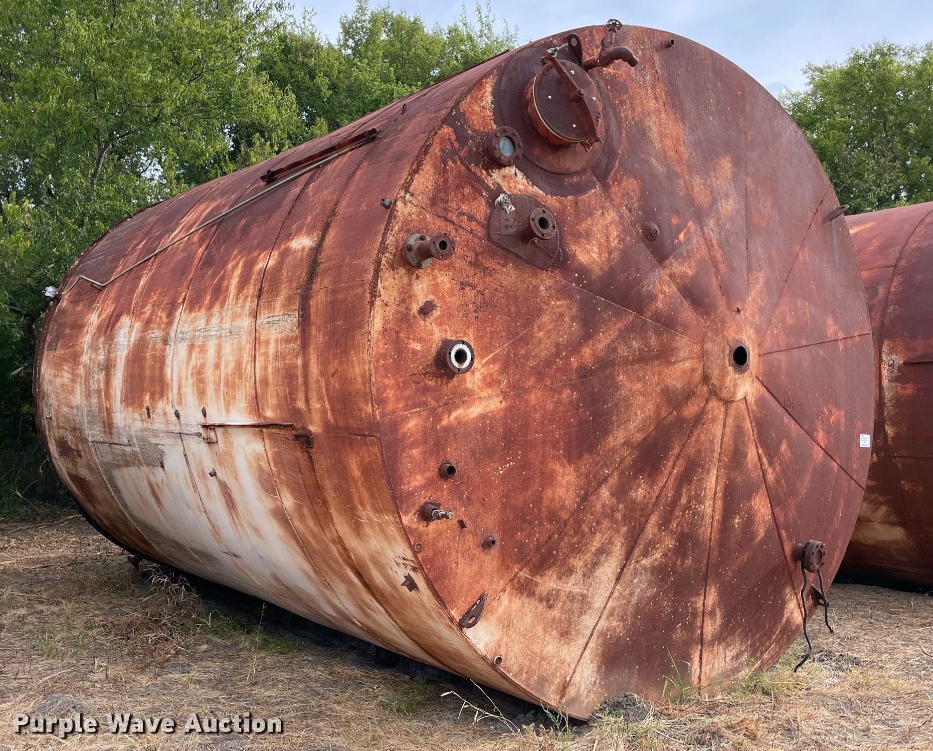 Purple Wave is selling a used Tanks in Texas. This item is a (3) carbon steel tanks with the following: (2) 24'6"H x 16' diameter, Approx. 36,000 gallon capacity, 192"H x 172" diameter, Approx. 20,000 gallon capacity, Heating coils