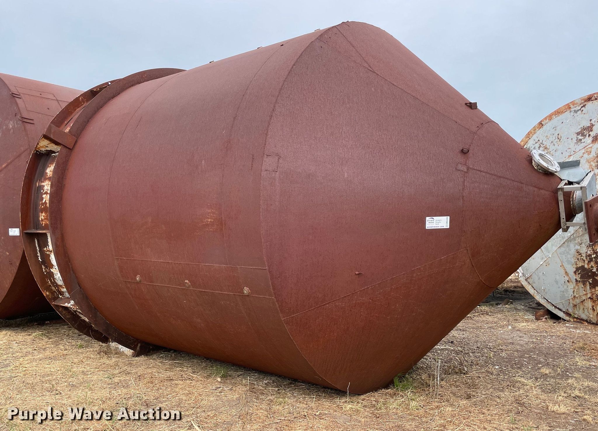 Purple Wave is selling a used Tanks in Texas. This item is a (3) stainless steel lined tanks with the following: 160'L x 160" diameter, Cone: 6', Approx. 15,000 gallon capacity, 192"L x 172" diameter, Approx. 20,000 gallon capacity, Mixer, 192"L x 172" diameter, Approx. 20,000 gallon capacity