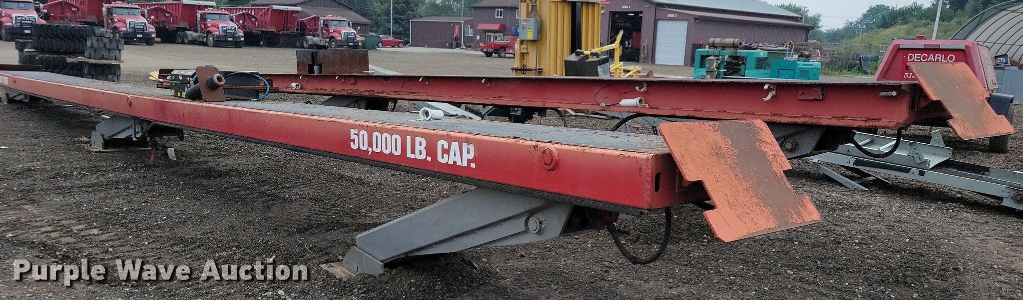 Rotary truck lift. 48'L, Capacity: 50,000 lbs, Controller. DeCarlo Corporation. 260 Northeast 44th Avenue. Des Moines, IA 50313