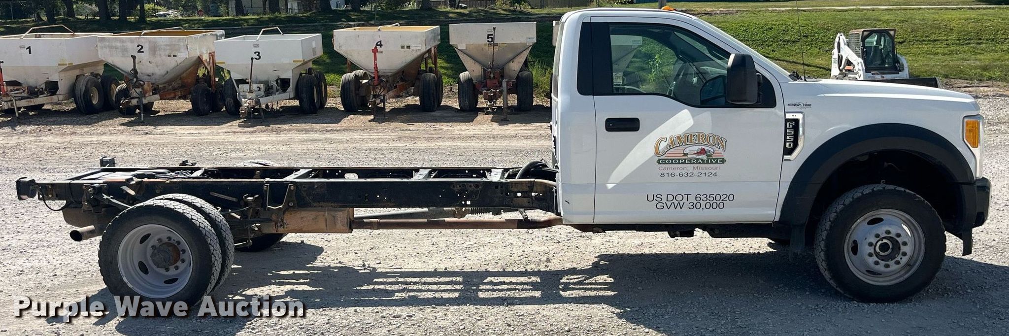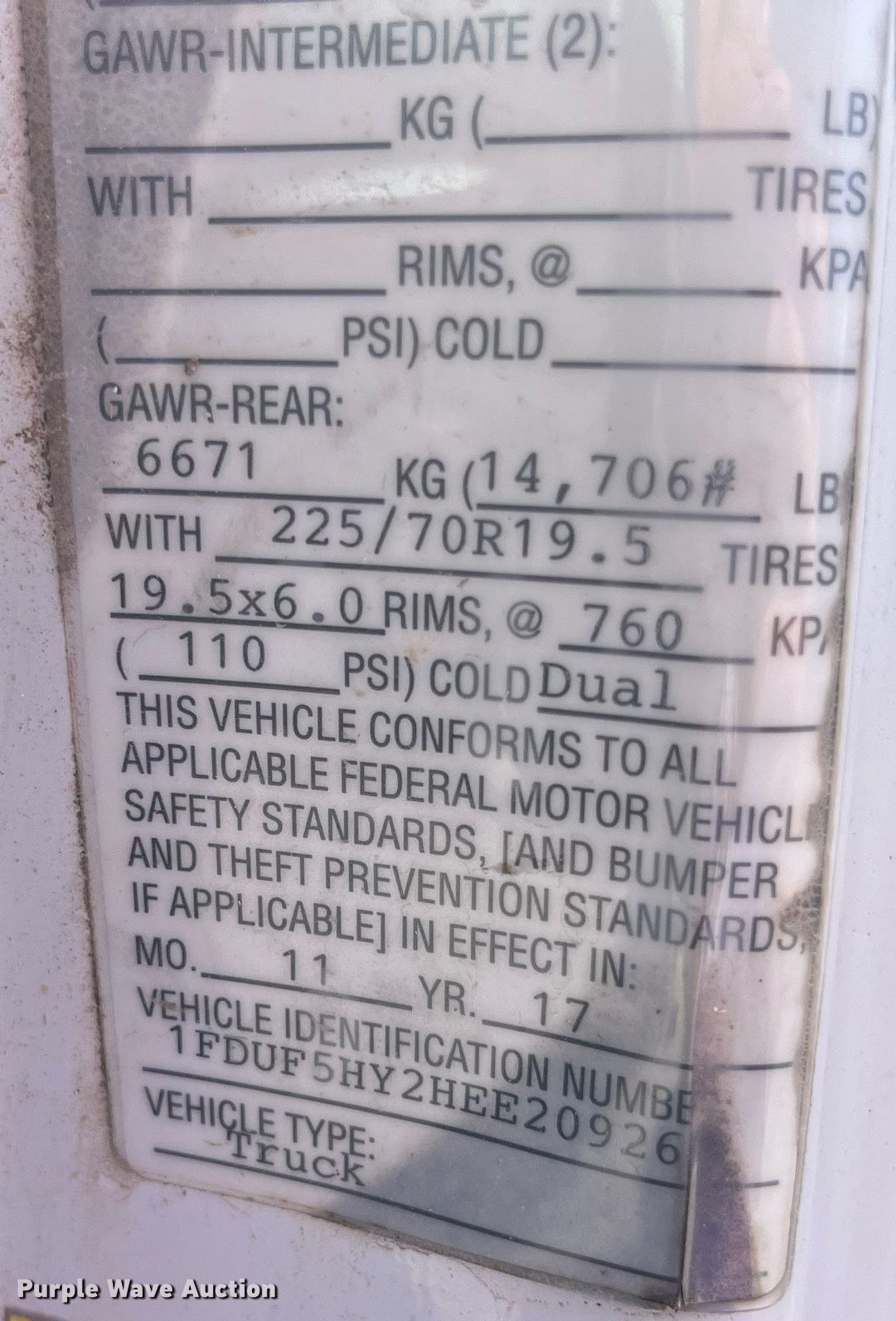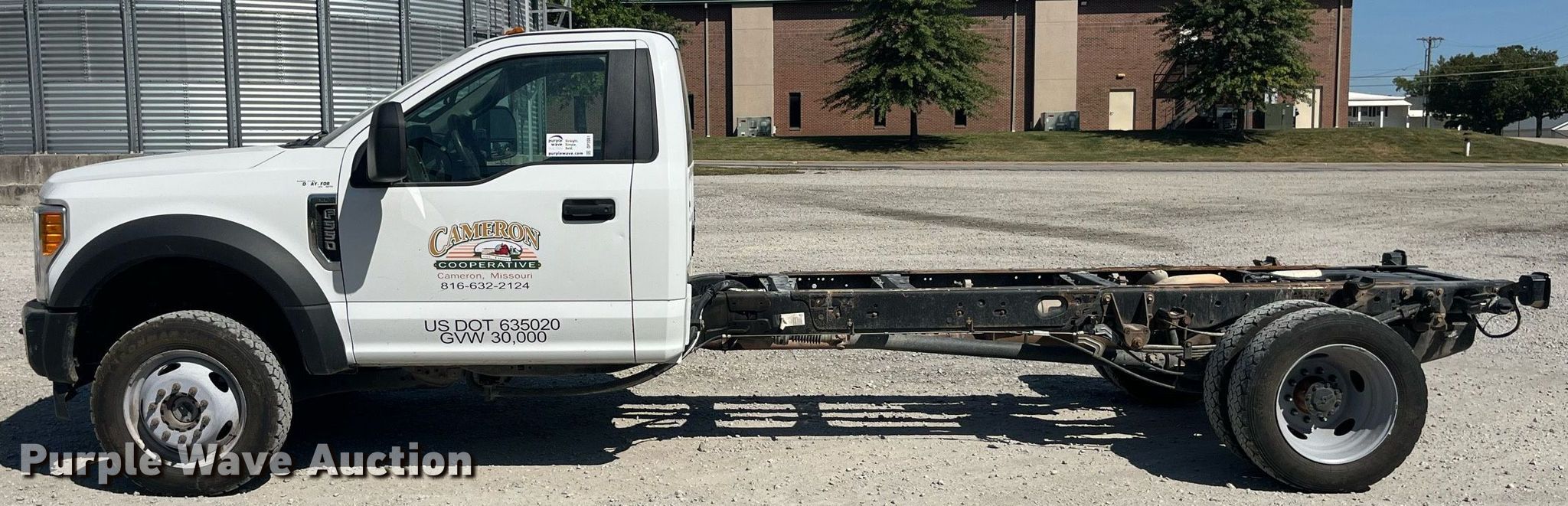 2017 Ford F550 Super Duty XL truck cab and chassis. Miles: 183,640 on odometer, VIN: 1FDUF5HY2HEE20926. Engine Displacement: 6.8L, Cylinders: 10, Fuel type: Gas. Transmission Automatic. Chassis Four wheel drive, Axles: Single, Suspension: Spring, Brakes: Hydraulic, Truck chassis: 13'. Interior AC, Heat. Tires Size: 225/70R19.5. Notes Dash warning indicator: Check engine, Airbag. Missouri title. Title distribution may be delayed up to 14 days from verification of funds. Cameron Cooperative Elevator. 102 S Walnut St. Cameron, MO 64429