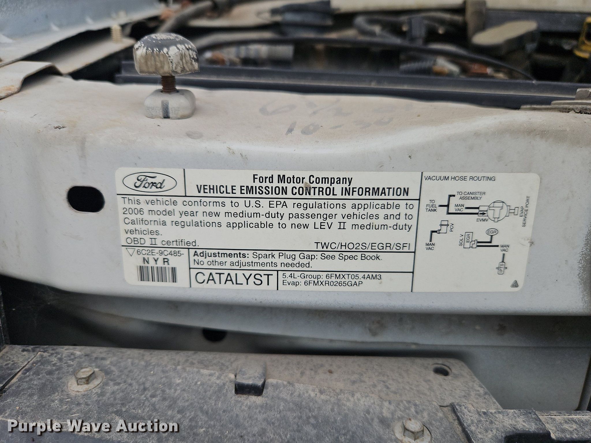 2006 Ford E250 van. Miles: 251,738 on odometer, VIN: 1FTNE24L96HB40145, Unit #: 252. Engine Displacement: 5.4L V8 SOHC , Cylinders: 8, Fuel type: Gas. Transmission Automatic. Interior AC, Heat. Tires Size: 245/75R16. Notes Dash warning indicator: Check engine, ABS, Airbag. Kansas title. Title distribution may be delayed up to 14 days from verification of funds. BCI Mechanical Inc. Ottawa, KS 66067