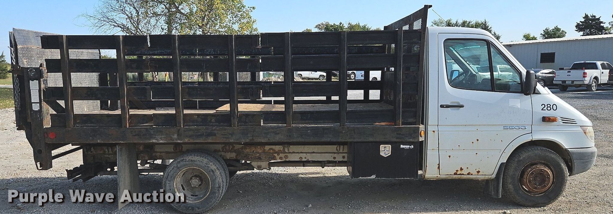 2006 Dodge Sprinter 3500 flatbed van. Miles: 236,698 on odometer, VIN: WDXPD944265944018, Unit #: 280. Engine Displacement: 2.7L L5 DOHC, Cylinders: 5, Fuel type: Diesel. Transmission Automatic. Interior AC, Heat, Power windows, Power locks. Features Flatbed 14' x 8' W, End gate lift Maxon. Tires Size: 225/75R16, Dash warning indicator: Check engine. Kansas title. Title distribution may be delayed up to 14 days from verification of funds. BCI Mechanical Inc. Ottawa, KS 66067