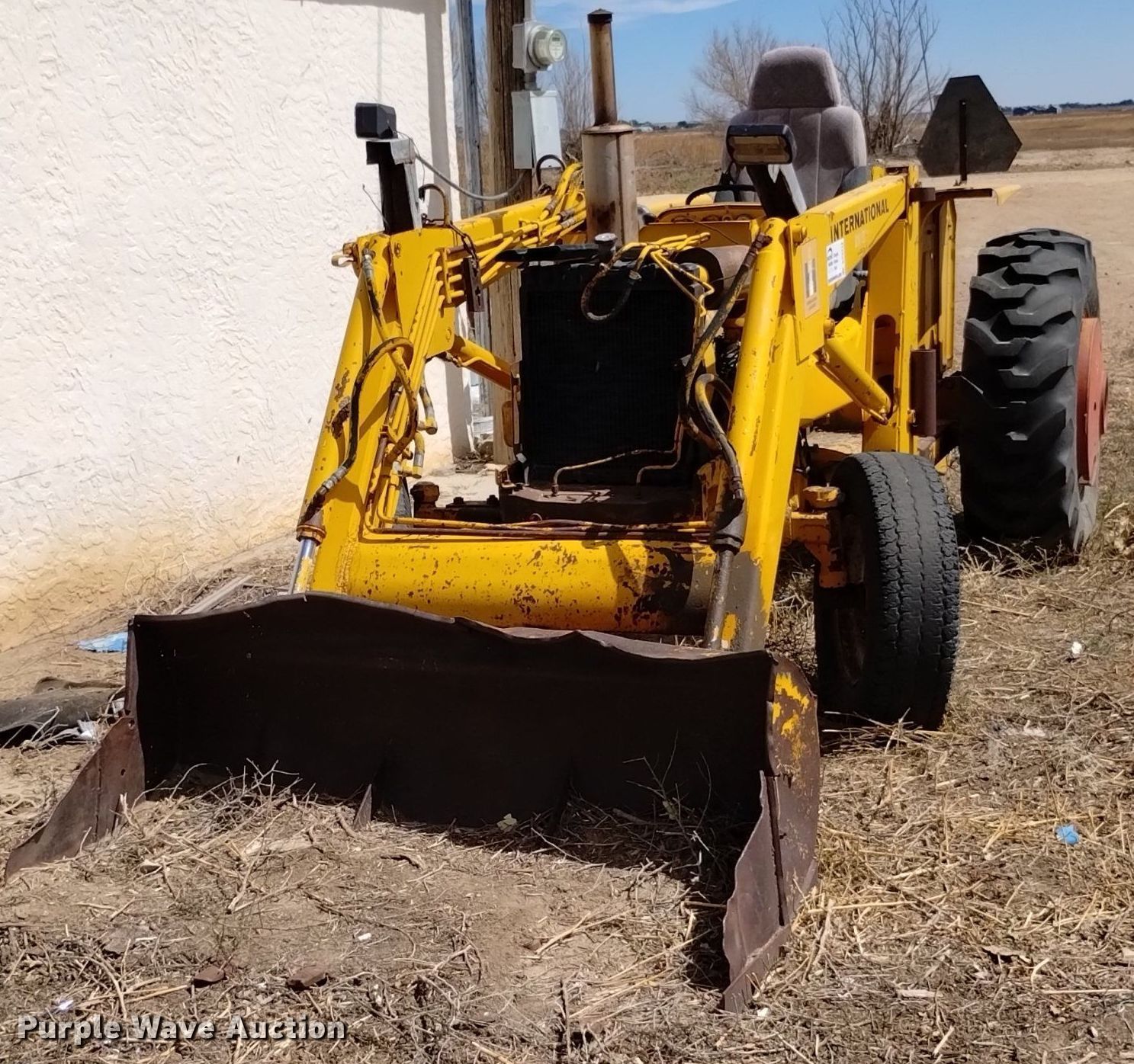 International 2500B tractor. Hours: 2,739 on meter, Serial: 024578BSZ. Engine International, Cylinders: 4, Fuel type: Gas. Transmission Powershift, 8F - 4R. Features PTO: 540, 1000, Three point, Loader International 2050 Serries A, Controls: Two-lever, Bucket Width: 58".. Tires Front: 215/85R16, Rear: 14.9-24, Wheel weights: 2. Notes No battery, Non-operational unit. 8515 County Ln 18.5. Ordway, CO 81063