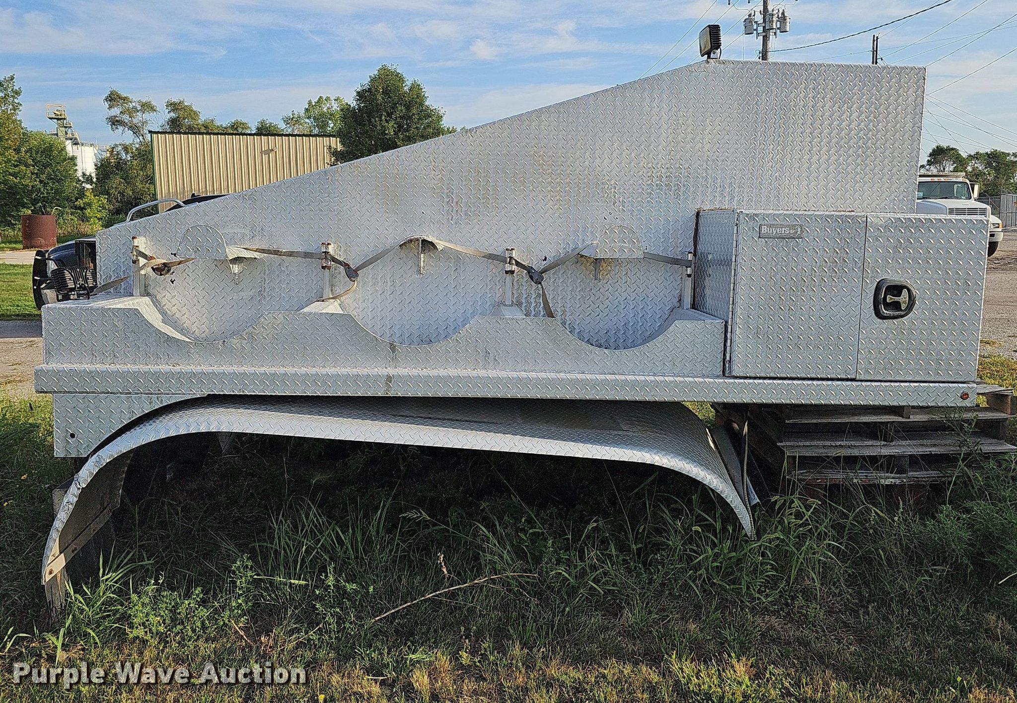 2014 JD Welding & Sandblasting LLC mobile home toter bed. Serial: JDW00001029. Features 11' x 88" W, Bed type: Aluminum, Hydraulic four way hitch, Pintle hitch receiver, 2 5/16" receiver. 3229 North C Street. Fremont, NE 68025