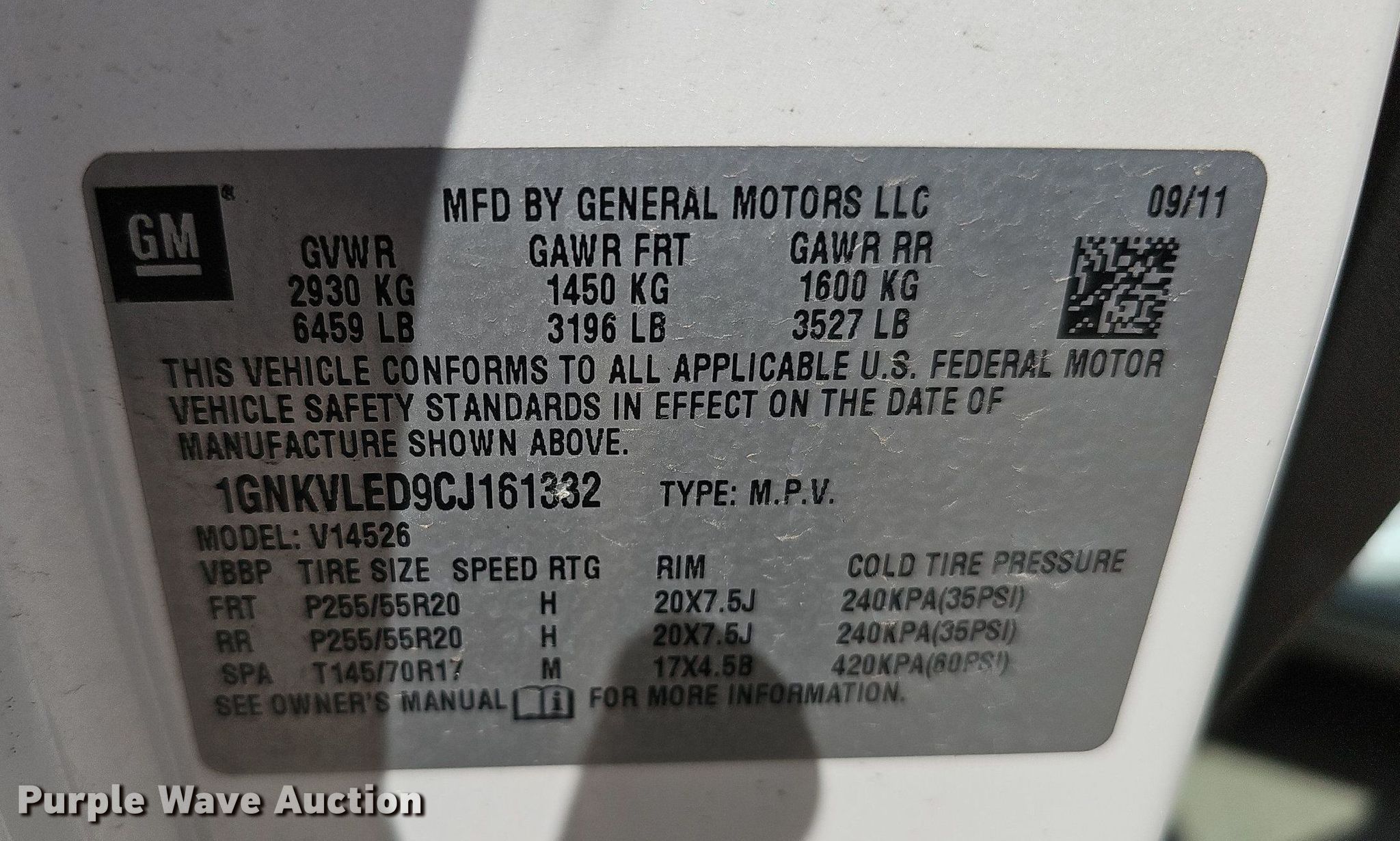 Purple Wave is selling a used Passenger Vehicle in Nebraska. This item is a 2012 Chevrolet Traverse LTZ SUV with the following: Miles: 185,778 on odometer, VIN: 1GNKVLED9CJ161332