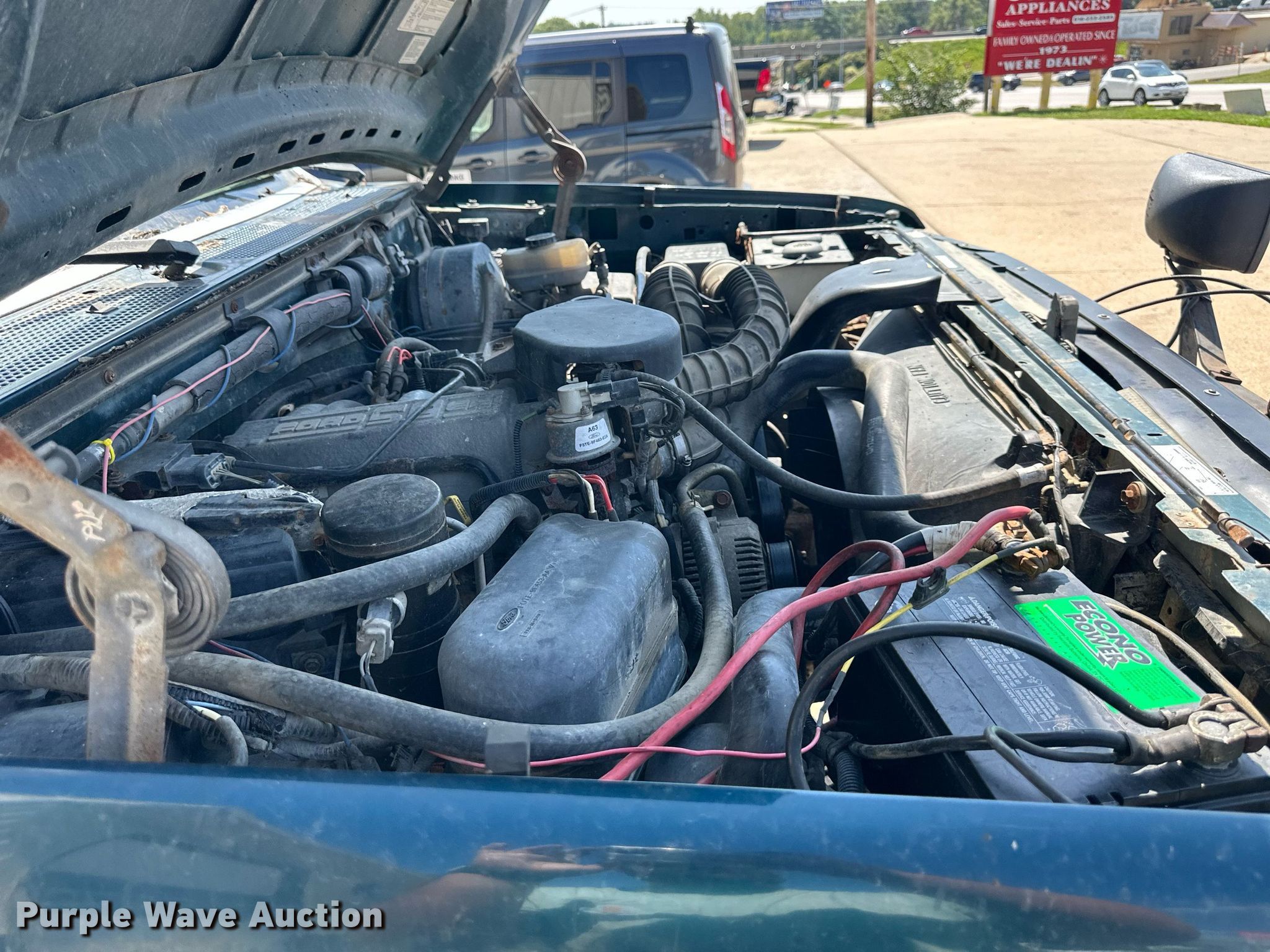 This 1997 Ford F250 utility bed pickup truck will sell to the highest bidder regardless of price.