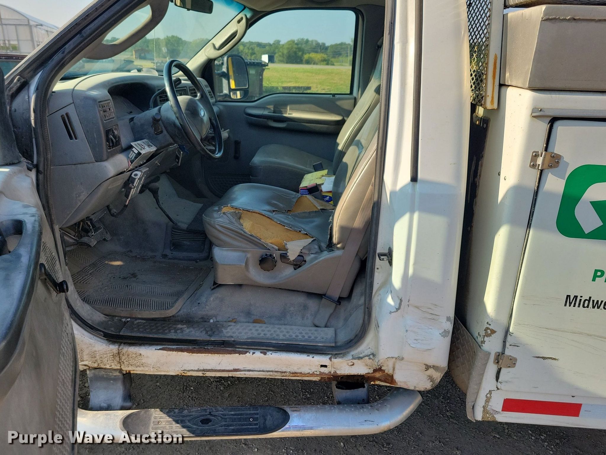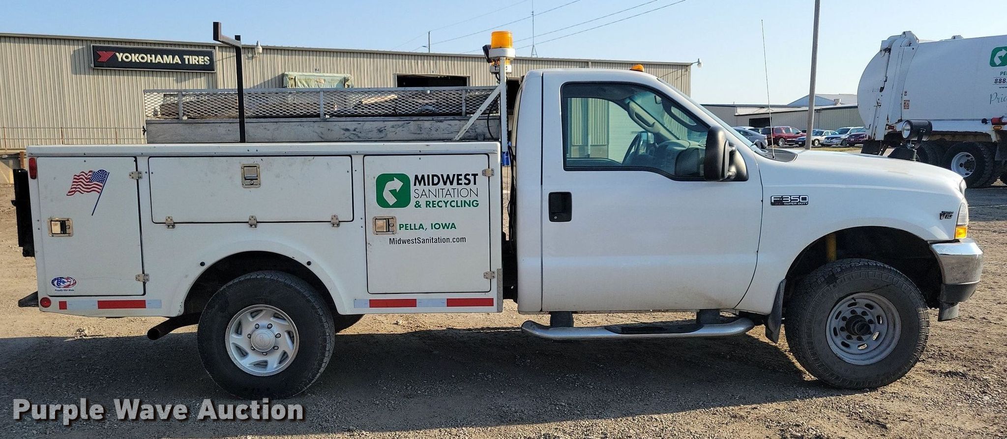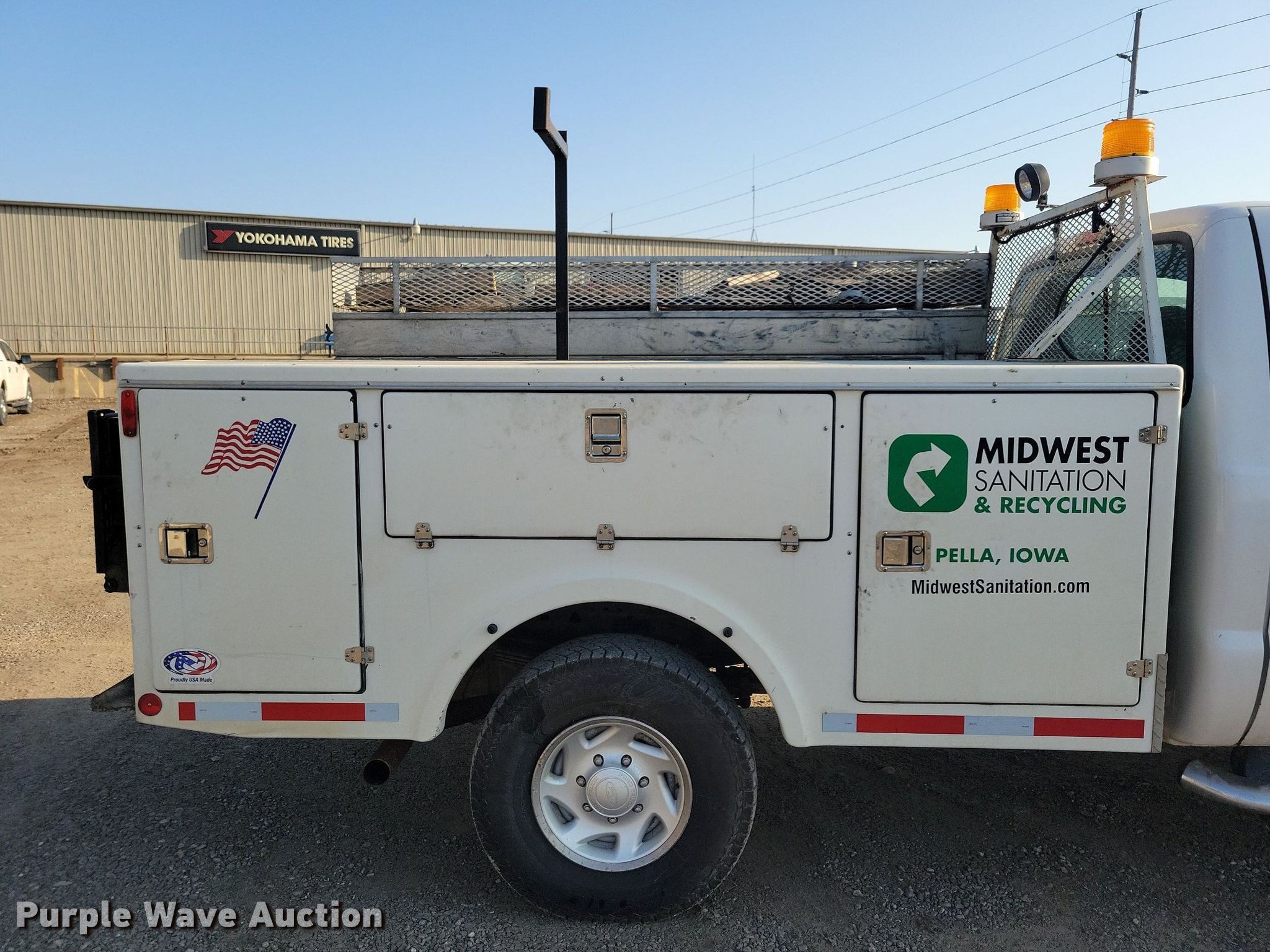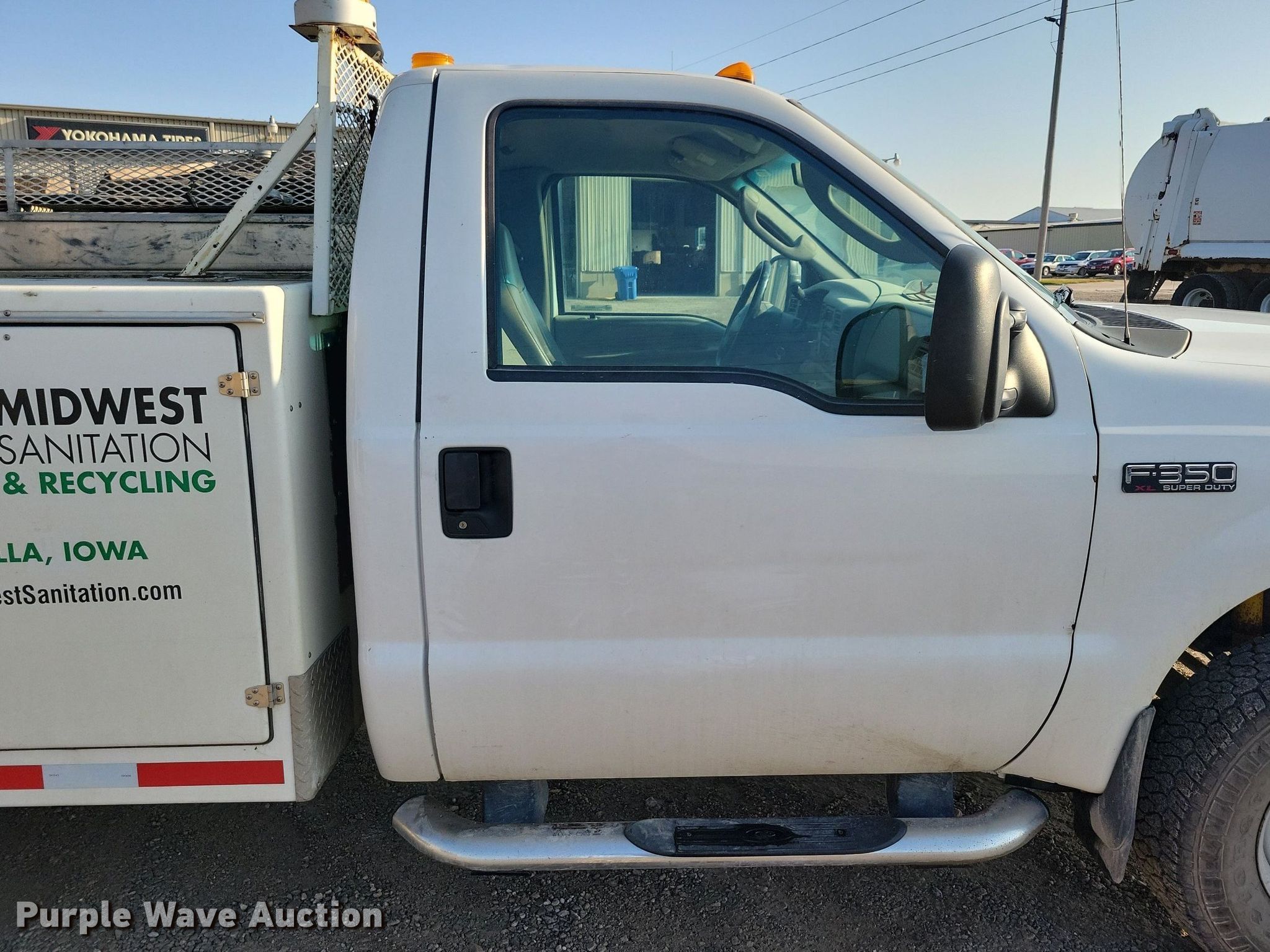 2004 Ford F350 Super Duty XL utility bed pickup truck. Miles: 162,322 on odometer, Miles or hours may vary, unit still in use, VIN: 1FDSF35S94EC20390. Engine Displacement: 6.8L V10 SOHC, Cylinders: 10, Fuel type: Gas. Transmission Automatic, Four wheel drive. Interior AC, Heat, Heated mirrors. Features Utility bed Vander Beek, 9' L x 81" W, End gate lift Tommy Gate, Capacity: 1,000 lbs. Tires Size: LT265/75R16. Notes Contents not included, Air compressor not included. Iowa title. Title distribution may be delayed up to 14 days from verification of funds. Midwest Sanitation & Recycling. 815 W 10th St. Pella, IA 50219
