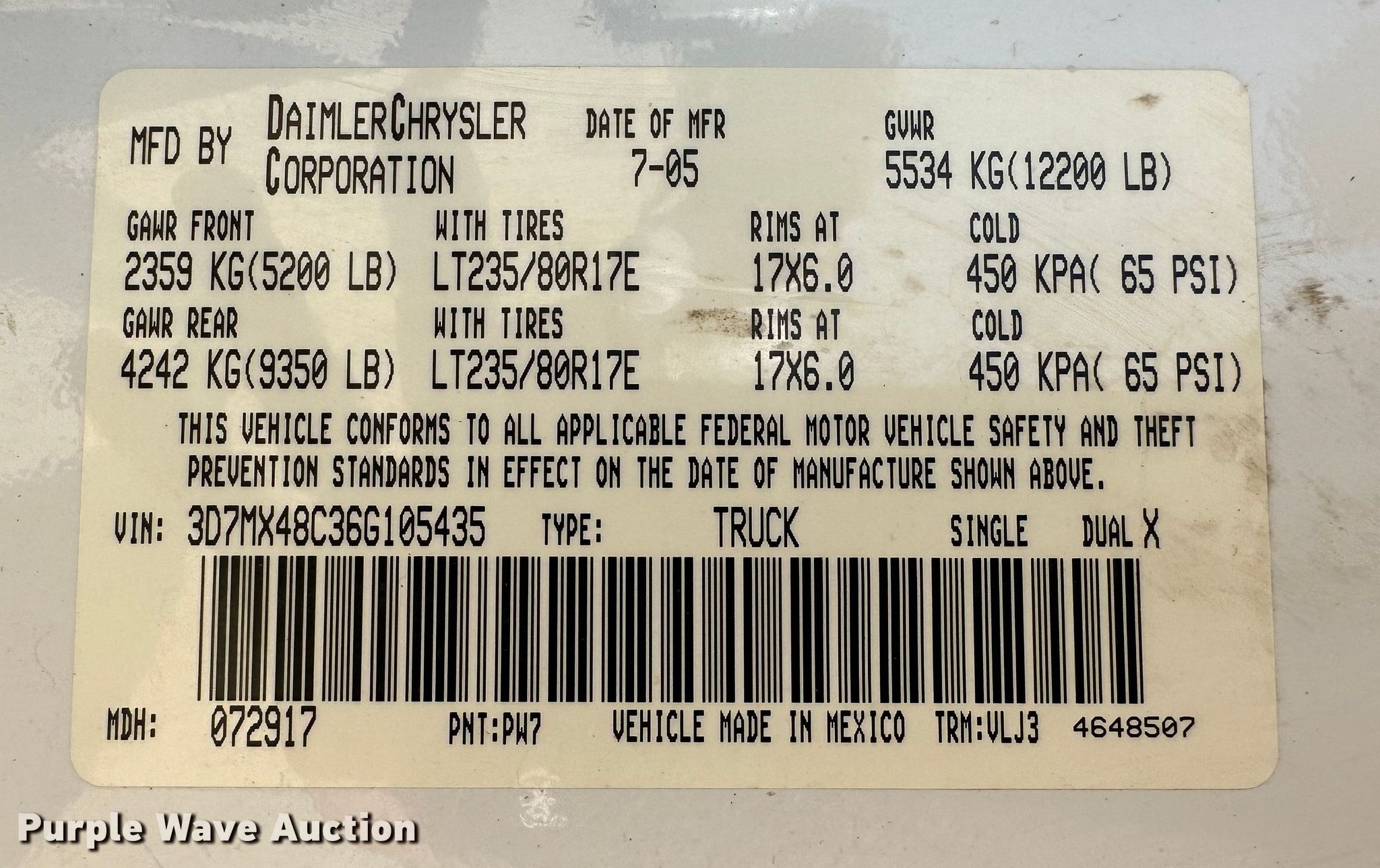 Purple Wave is selling a used 3/4 or 1 Ton Pickup or Van in Missouri. This item is a 2006 Dodge Ram 3500 Quad Cab pickup truck with the following: Miles: 241,194 on odometer, VIN: 3D7MX48C36G105435