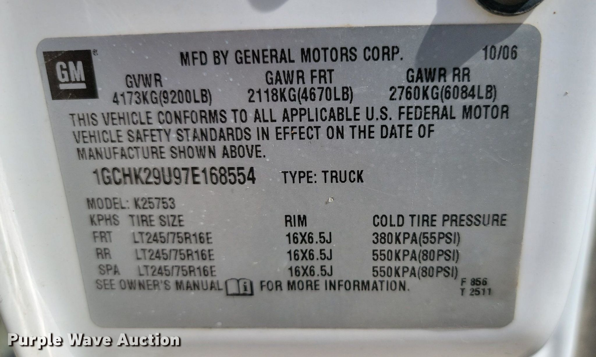 2007 Chevrolet Silverado 2500HD Ext. Cab pickup truck. Miles: 254,770 on odometer, VIN: 1GCHK29U97E168554. Engine Displacement: 6.0L V8 OHV, Cylinders: 8, Fuel type: Gas. Transmission Automatic, Four wheel drive. Interior AC, Heat, Power windows, Power locks, Cruise control. Features 80" L x 61" W. Tires Size: 265/70R17. Notes Dash warning indicator: Check engine, ABS, Airbag. Kansas title. Title distribution may be delayed up to 14 days from verification of funds. Fulton, KS 66738
