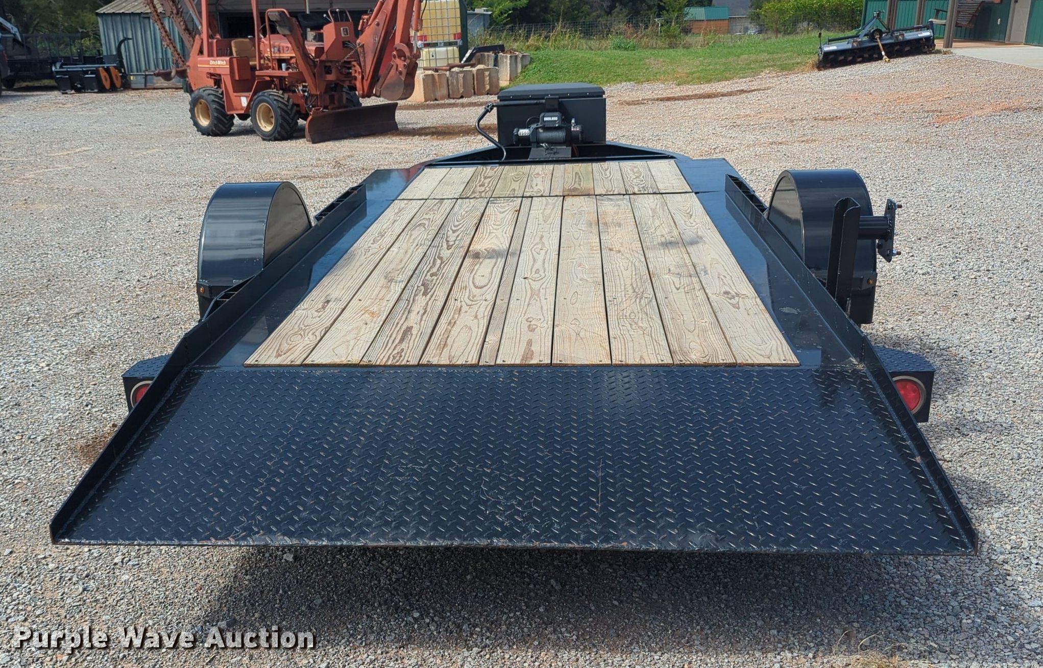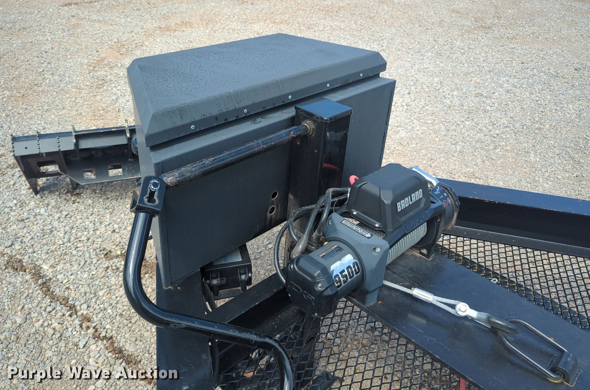 2022 Belshe tilt deck utility trailer. VIN: 16JF01720N1051254. Dimensions Overall: 20' L x 102" W, Deck: 17' L x 96" W. Features Deck type: Wood, Winch Badland ZXR 9500. Chassis Ball hitch: 2 5/16", Landing gear: Single, Brakes: Electric, GVWR: 14,000 lbs. Tires Size: 235/85R16. Transfer of ownership documentation will be a bill of sale. 17100 S Air Depot Blvd. Norman, OK 73026