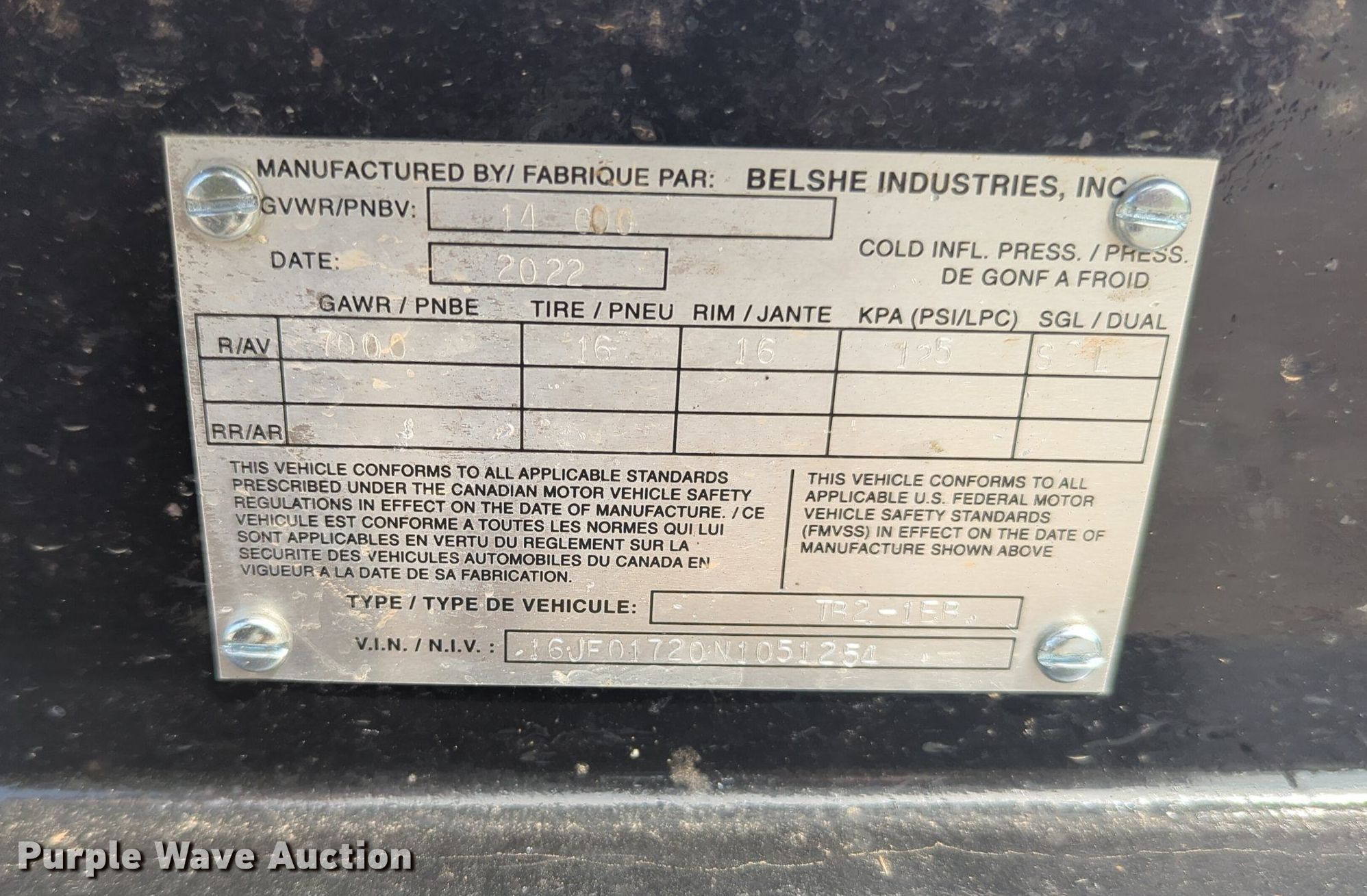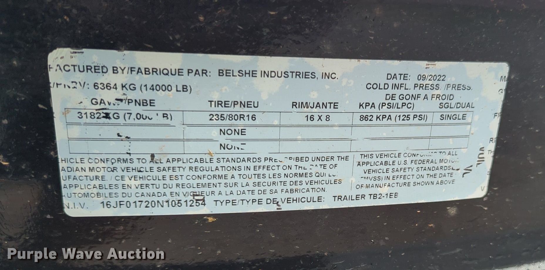 Purple Wave is selling a used Car or Utility Trailer in Oklahoma. This item is a 2022 Belshe tilt deck utility trailer with the following: VIN: 16JF01720N1051254