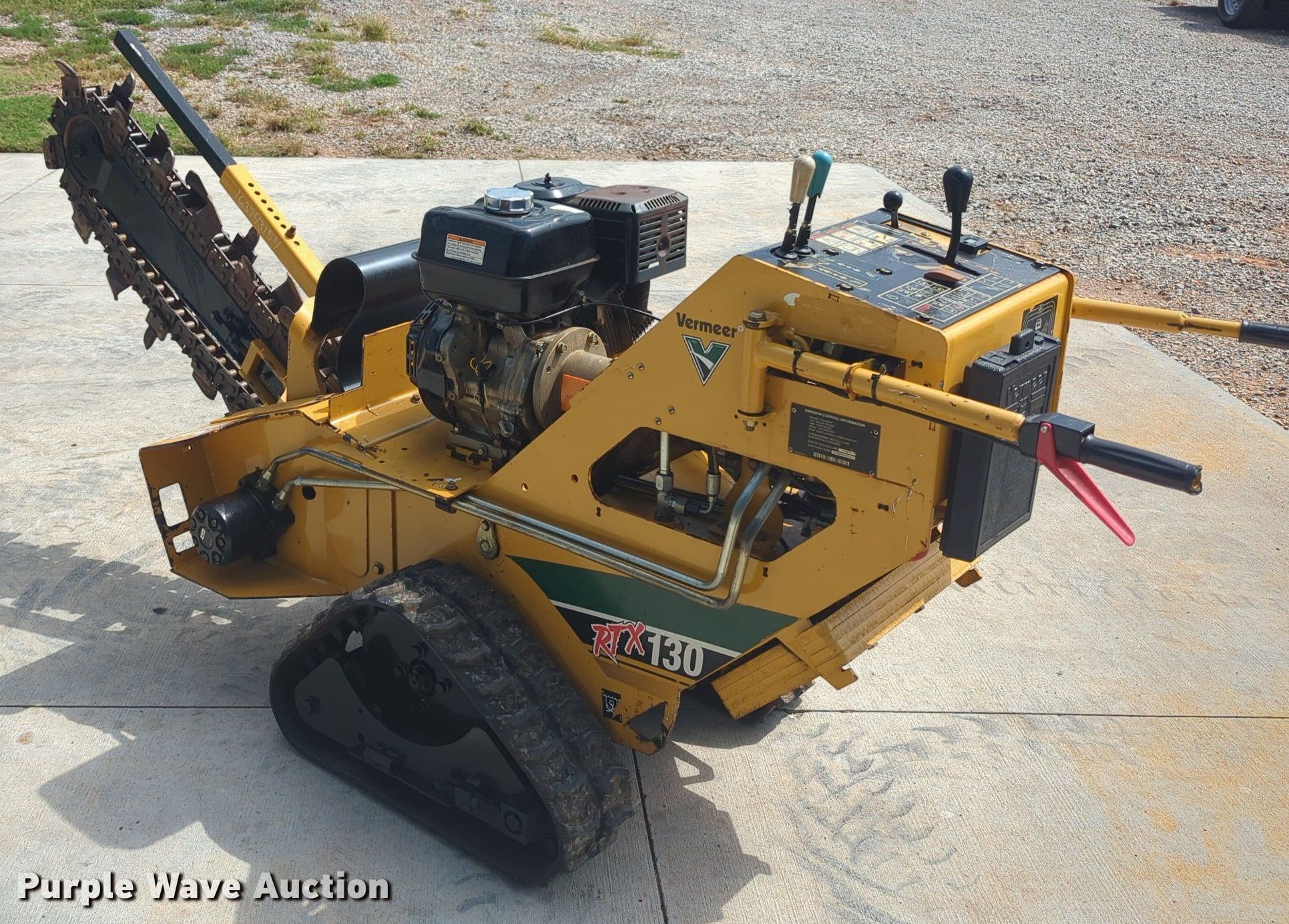 Purple Wave is selling a used Trencher or Rock Saw in Oklahoma. This item is a 2016 Vermeer RTX130 trencher with the following: Hours: 439 on meter, Serial: 1VR5071PXG1000103